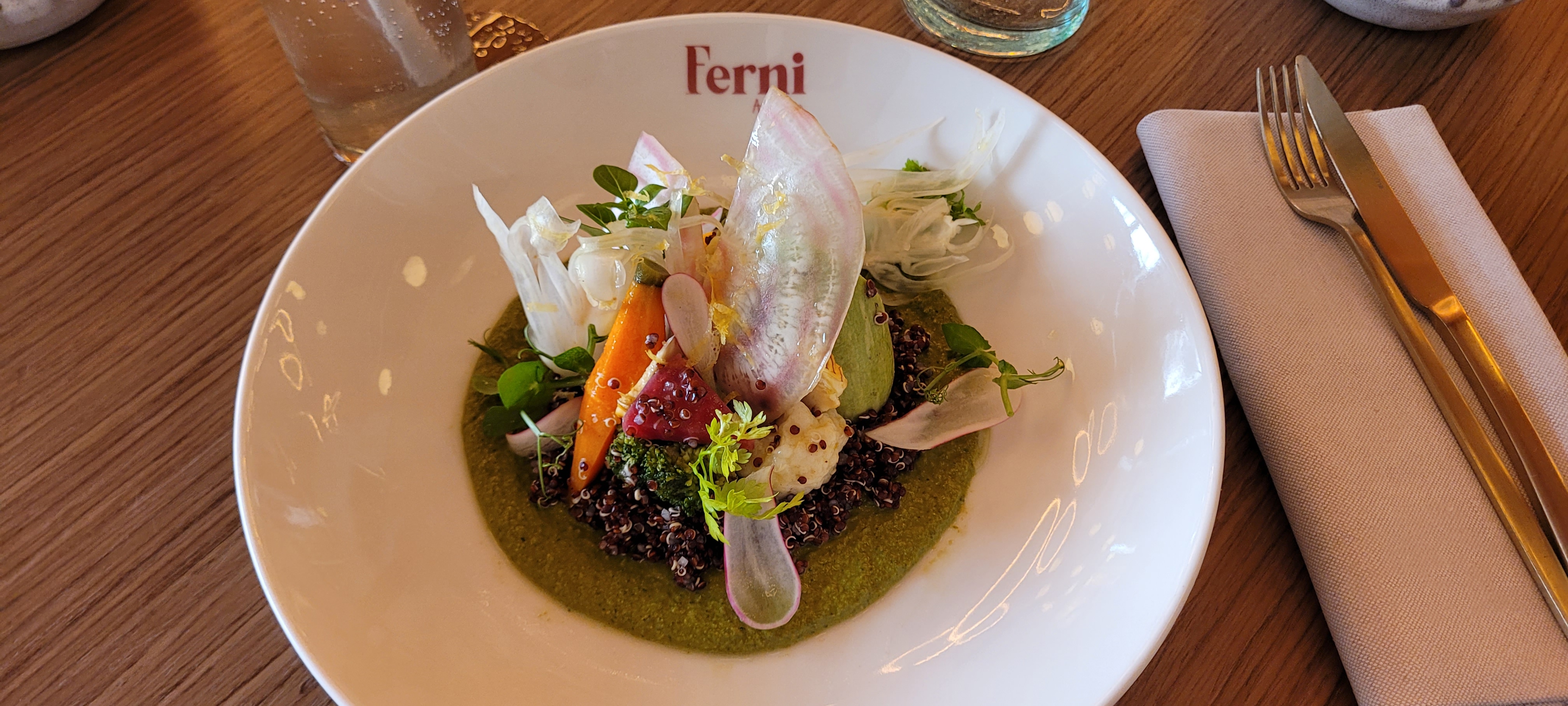 Nous avons choisi le Ferni à l'occasion de l'anniversaire d'une de nos amies. Assiettes copieuses, cuisine raffinée et recherchée, belle attention lors de l'arrivée des desserts ! Serveur très agréable, à l'écoute et réactif. Je recommande fortement !