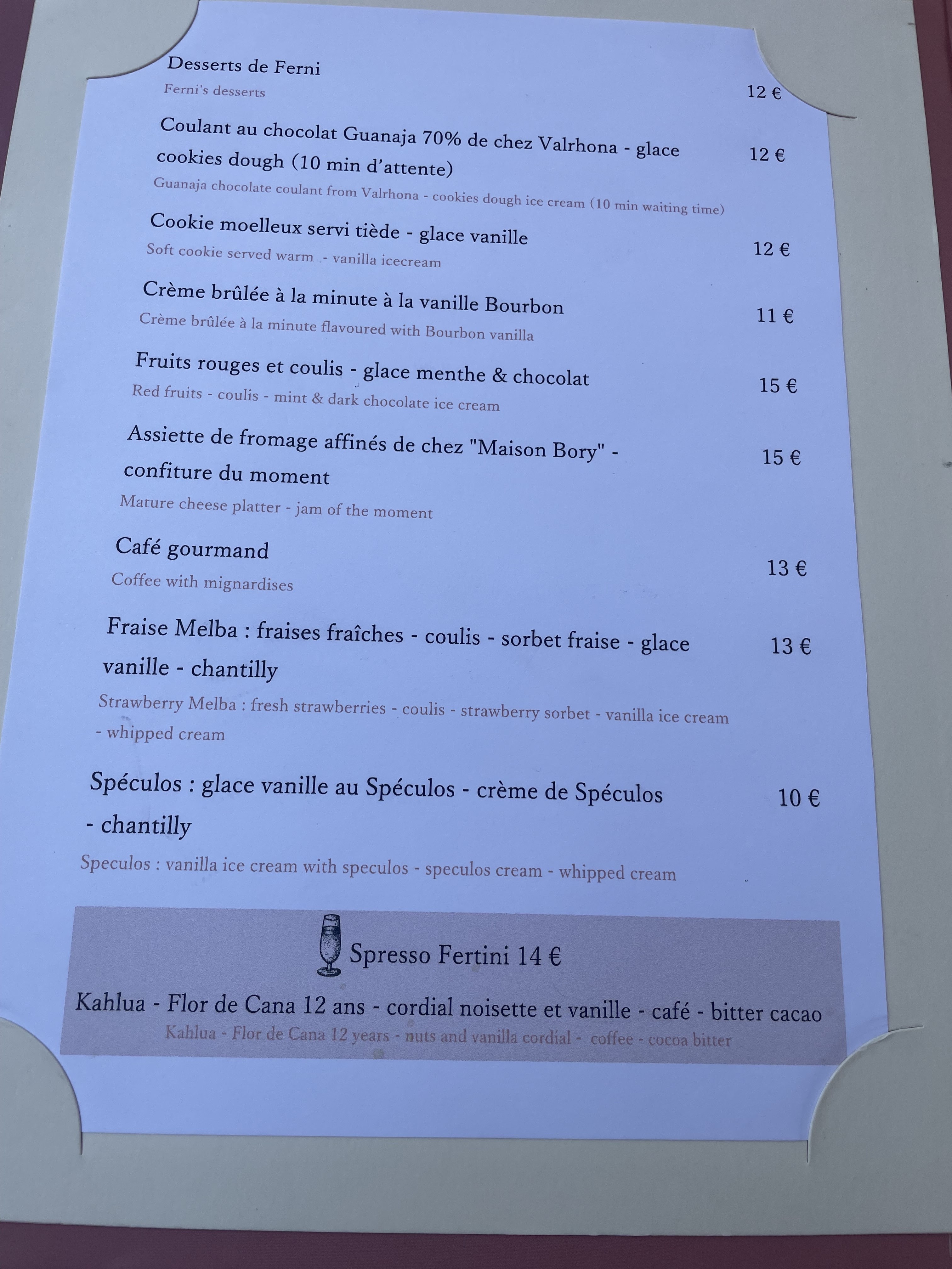 Ferni, une carte très complète pour tous les budgets. Les plats sont préparés avec soins et suffisamment copieux. Service soigné avec le sourir. La décoration intérieure du restaurant est magnifique, surtout les toilettes. A tester la banana split tout simplement extra.