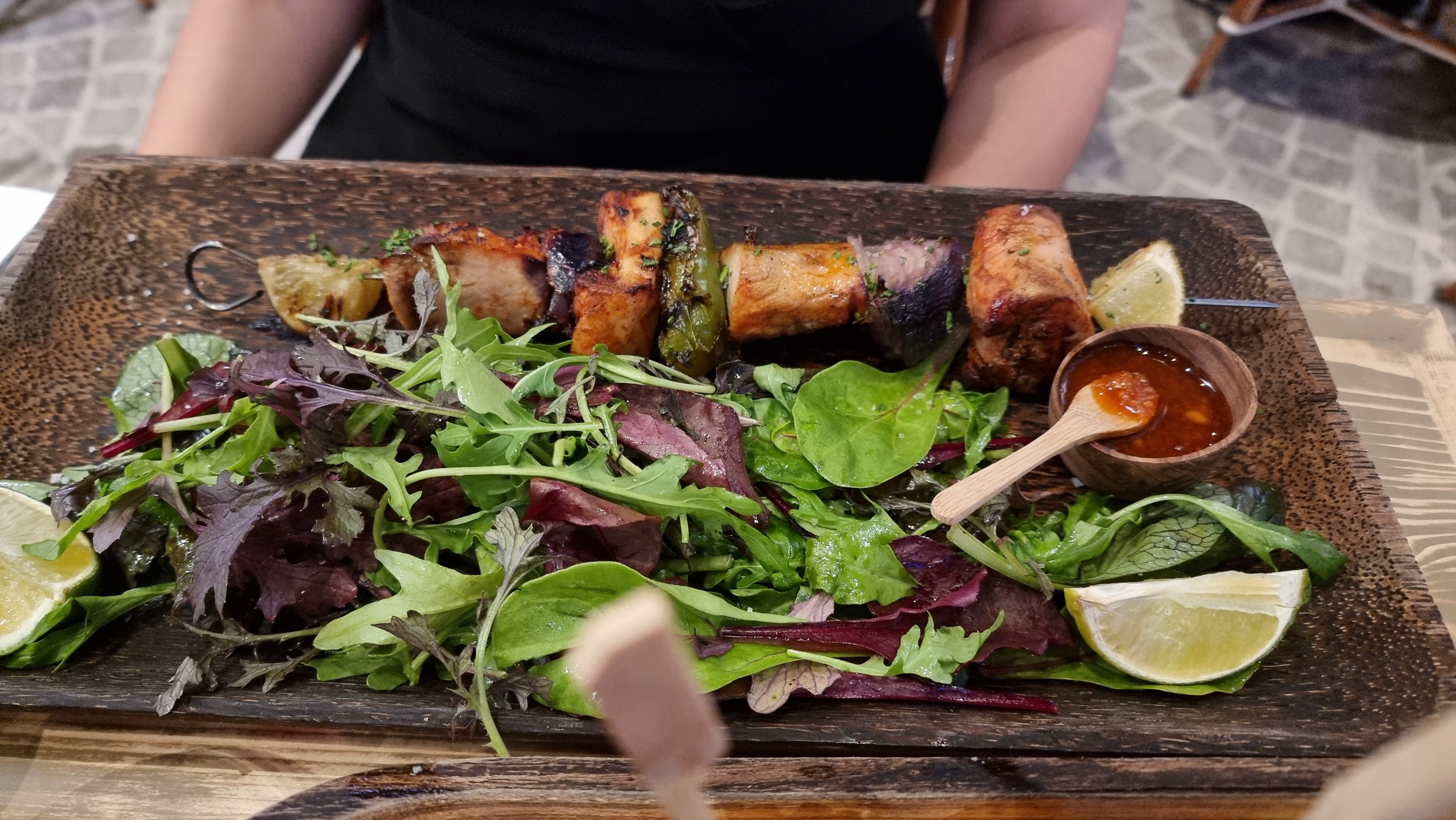 Très sympathique. Un peu trop bruyant pour nous, le son de la musique est trop élevé avec de la publicité. Les brochettes de bœuf juste parfaites. Attention au tarif du vin. Le premier prix est de 38 euros :( dommage. Du coup tu prends juste un verre....et une carafe d'eau