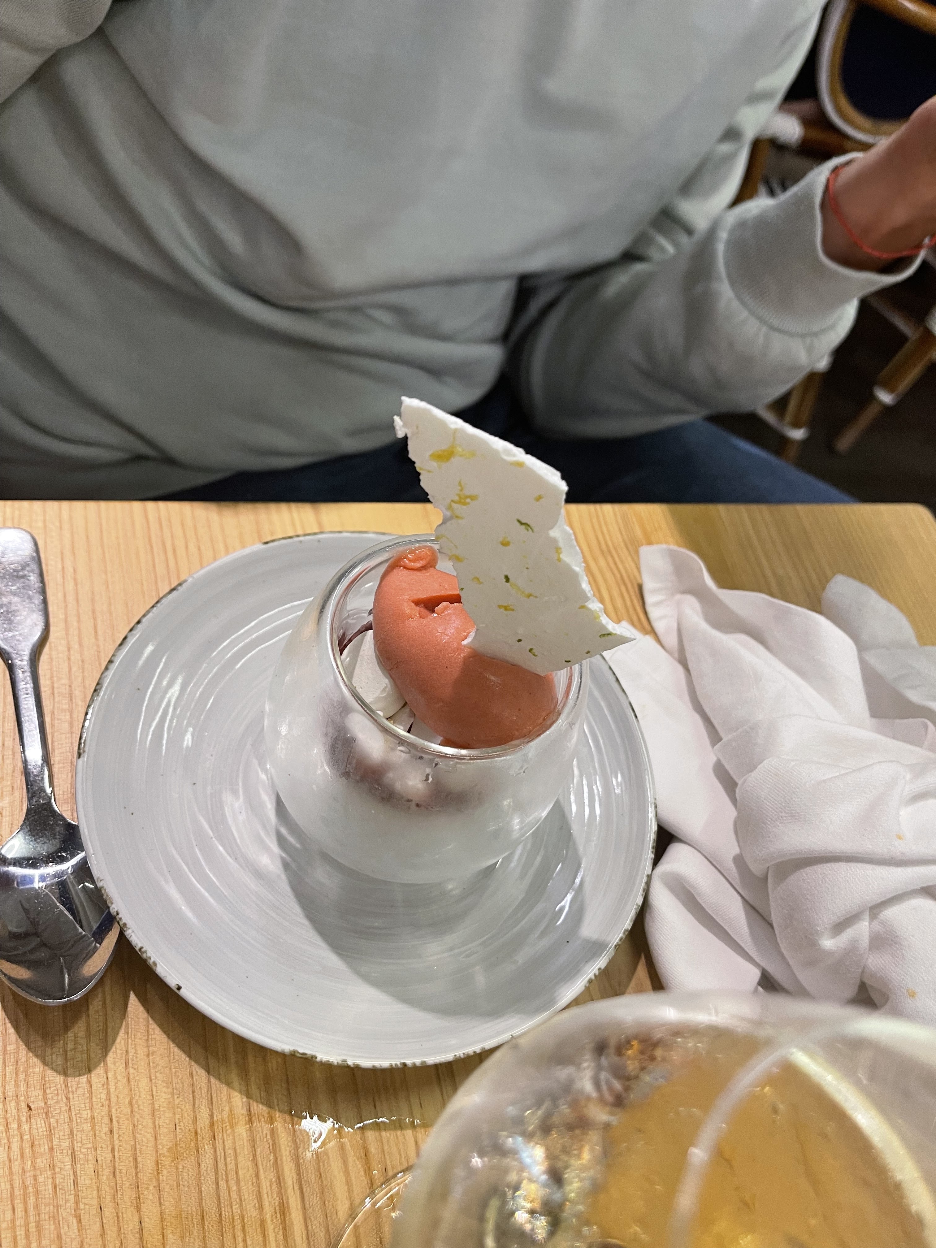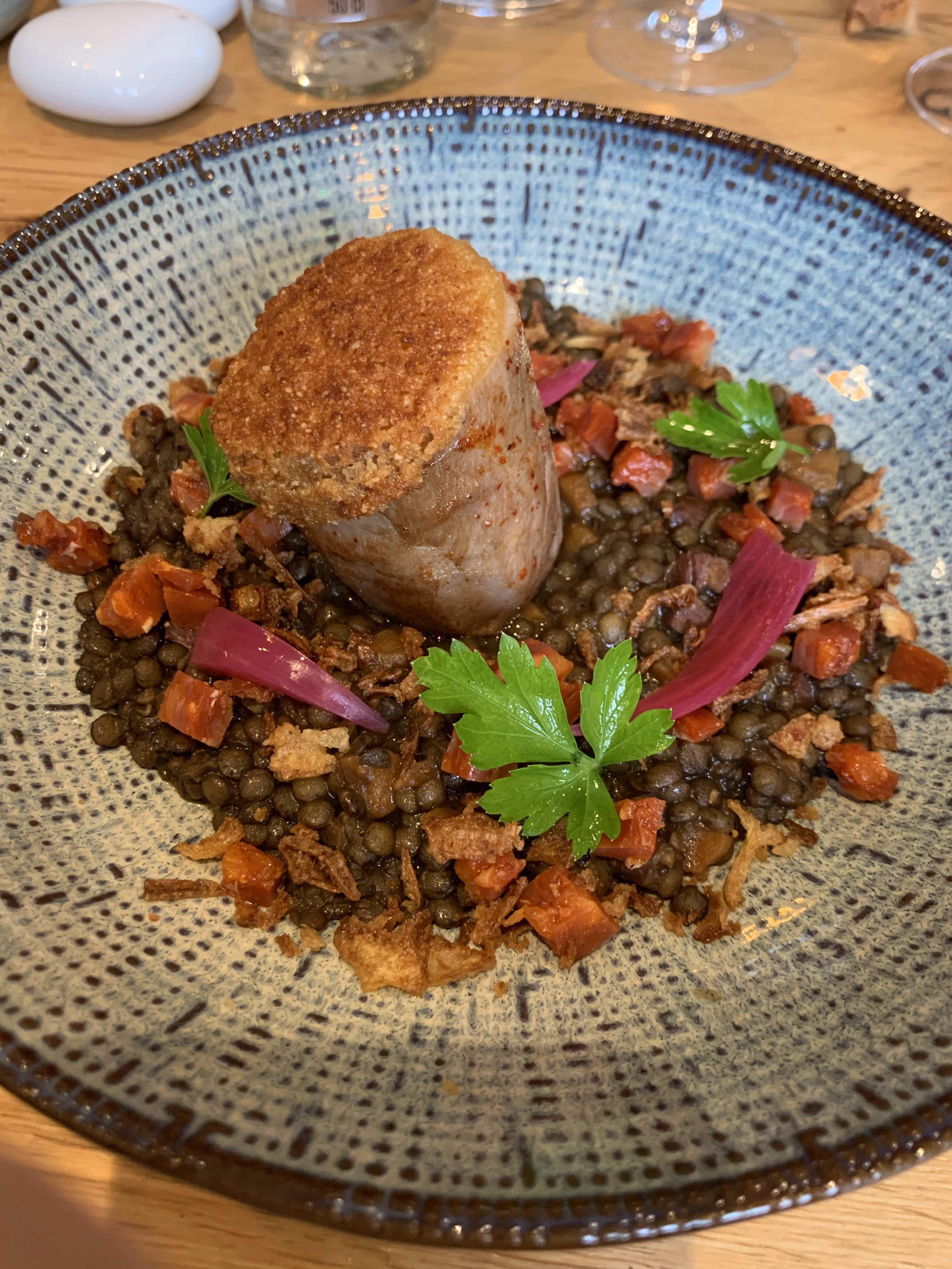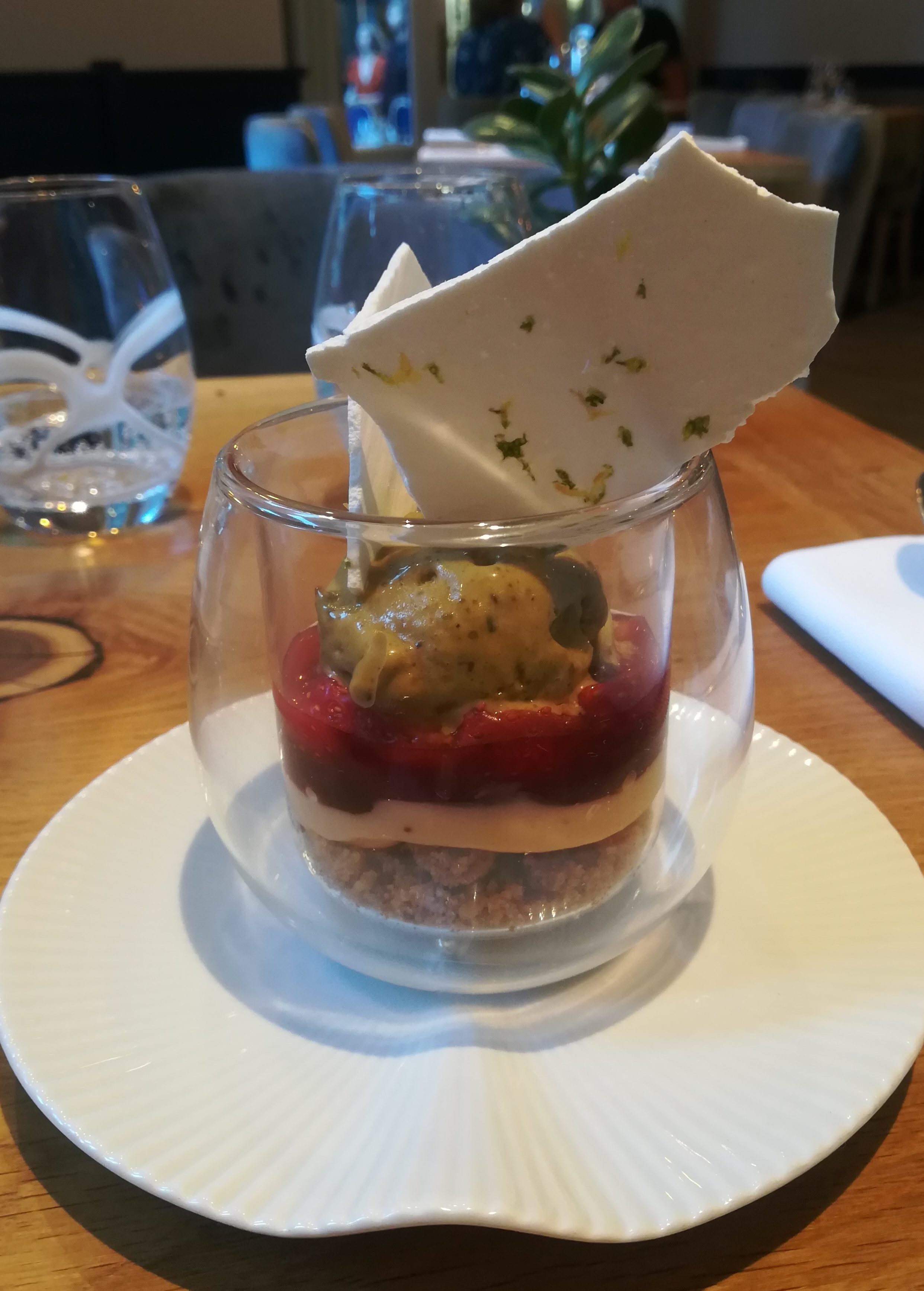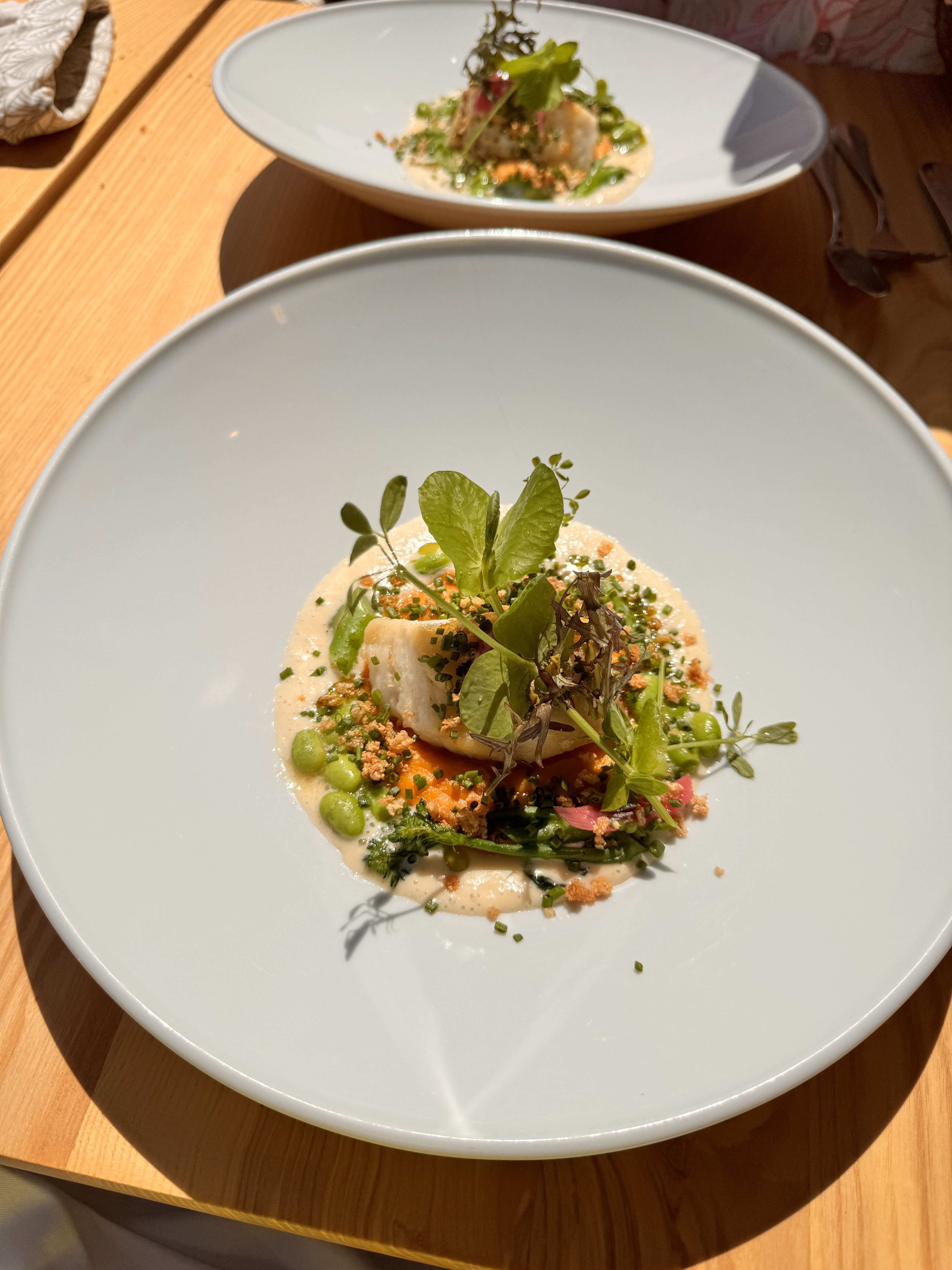 DÉLICIEUX !! Super expérience avec une équipe cool, aux petits soins ! Le menu à 32e propose des plats de qualité, vraiment copieux, et super bons ! J'ai pris le tacos du moment, la volaille pois chiche et la pavlova fraise (incroyable) et je me suis régalé comme en témoigne mon assiette vide Pour sortir du menu et passer sur la carte, il faut cependant avoir les moyens ! Si nous étions du coin nous reviendrions sans hésiter !