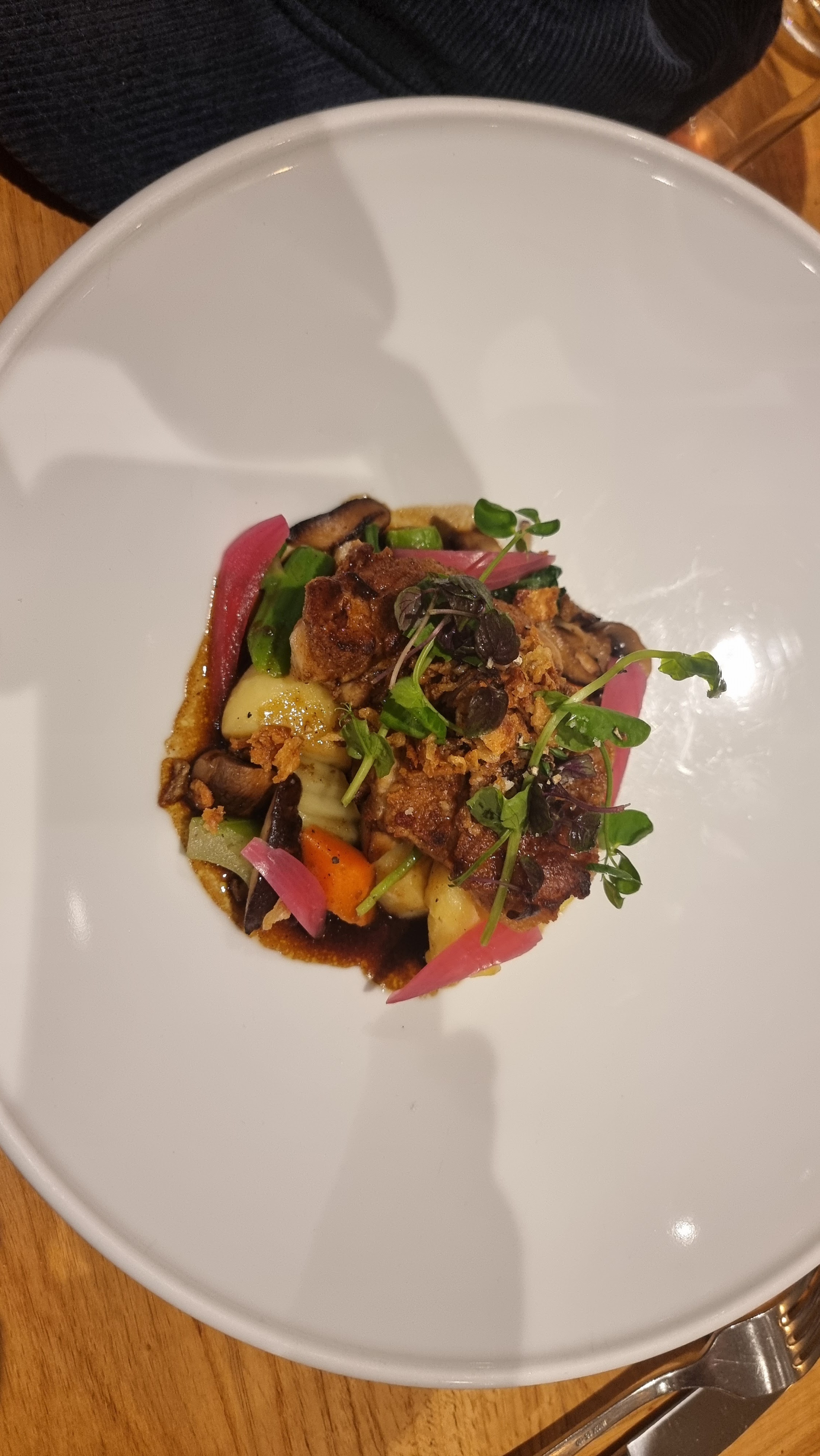 Ambiance agréable et design intérieur moderne. La nourriture était bien arrangée. Cependant, le plat principal était une très petite portion. Quand c'est devenu plus occupé, à la fin, c'était le bordel en termes de gestion. Il a fallu plus de 30 minutes pour servir nos desserts et encore 20 minutes pour livrer l'addition. Je ne me sentais pas bien après notre départ. Je suppose qu'il y avait quelque chose avec le dessert. Parfait pour une expérience unique. Mais certainement pas deux fois.
