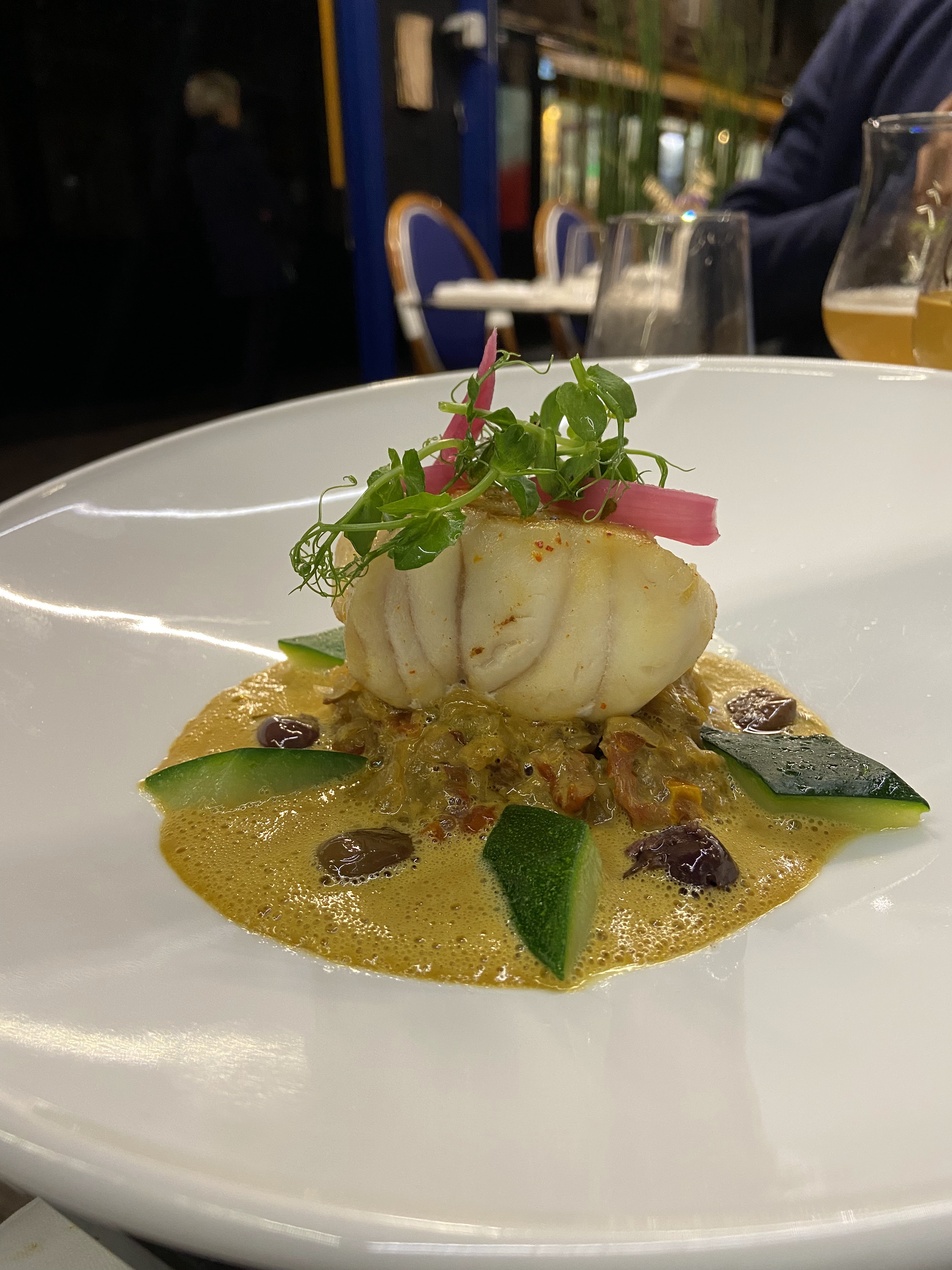 Nous avons passé un bon moment. Super accueil avec un jeune homme sympa et plein d'humour. La cuisine est raffinées. C'est absolument délicieux. J'ai pris le menu tout simplement . Et les.prix corrects . Je vous conseille vraiment ce resto !! (L'homme au téléphone a table 😉)