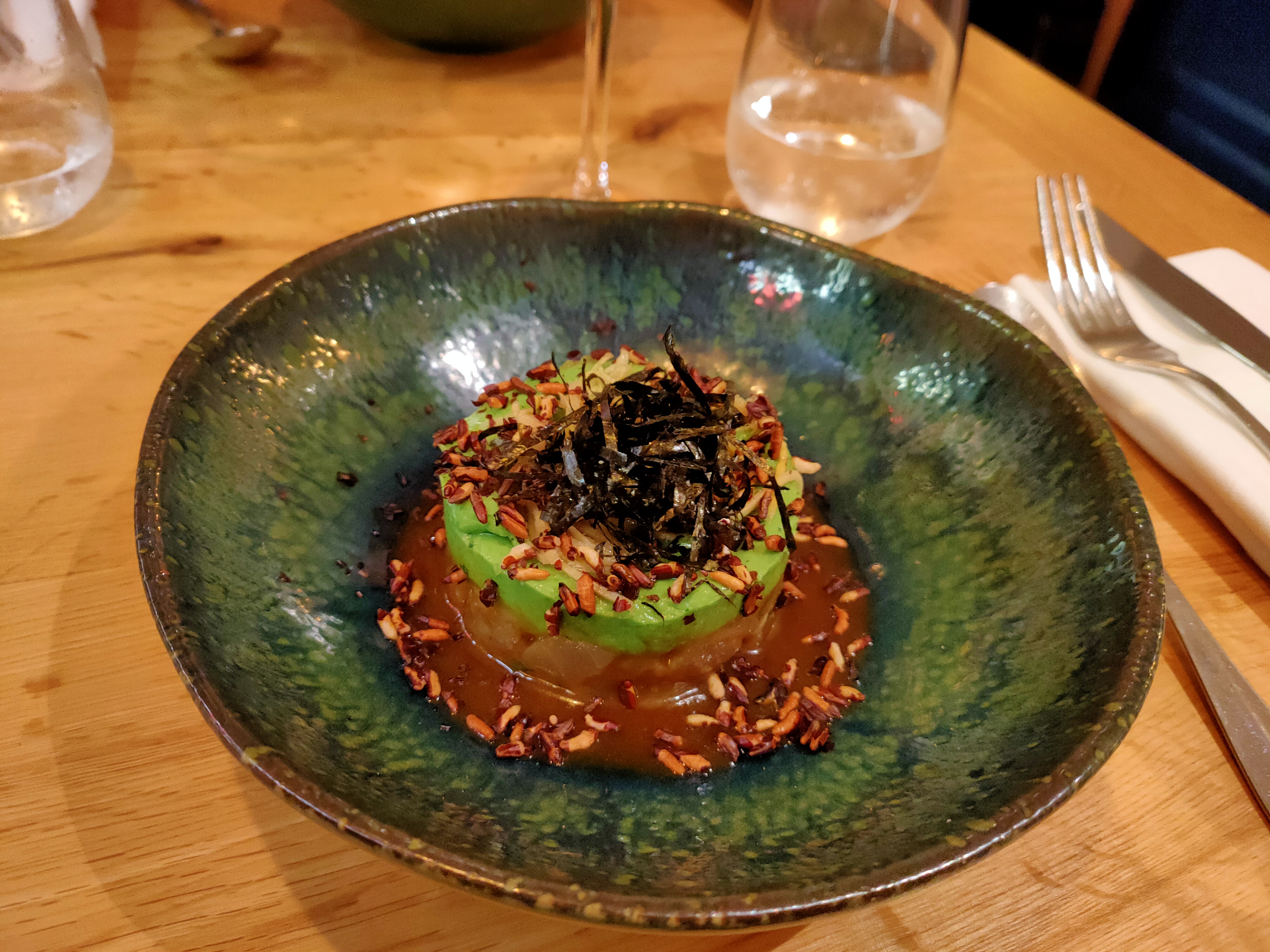Repas excellent (purée de topinambour truffée👌, le parfait également nous a beaucoup plu avec sa glace vanille légère - presque un sorbet - et ses cacahuètes dans un caramel salé; le tacos araignée était en revanche sans intérêt - goût de l’araignée couvert par le reste). Service dans une bonne ambiance. Merci !