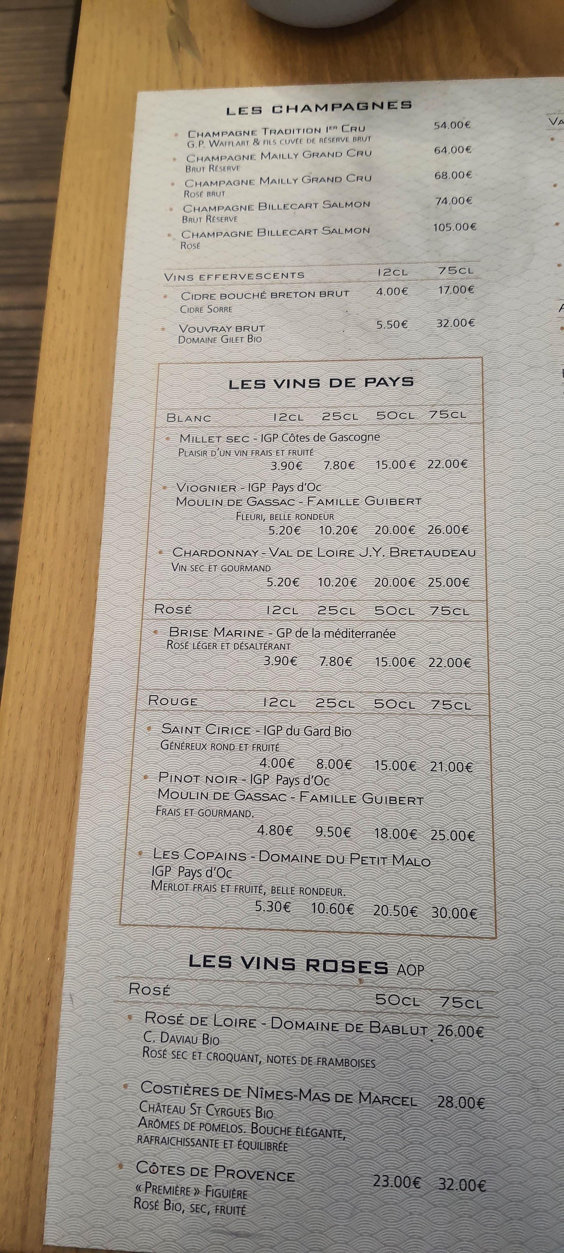 Très bel établissement à Saint Malo, coup de cœur sur notre serveur avec beaucoup d’humour. Belle carte des vins avec des prix abordables, enfin une belle cuisine avec des goûts tranchés et un respect des produits.