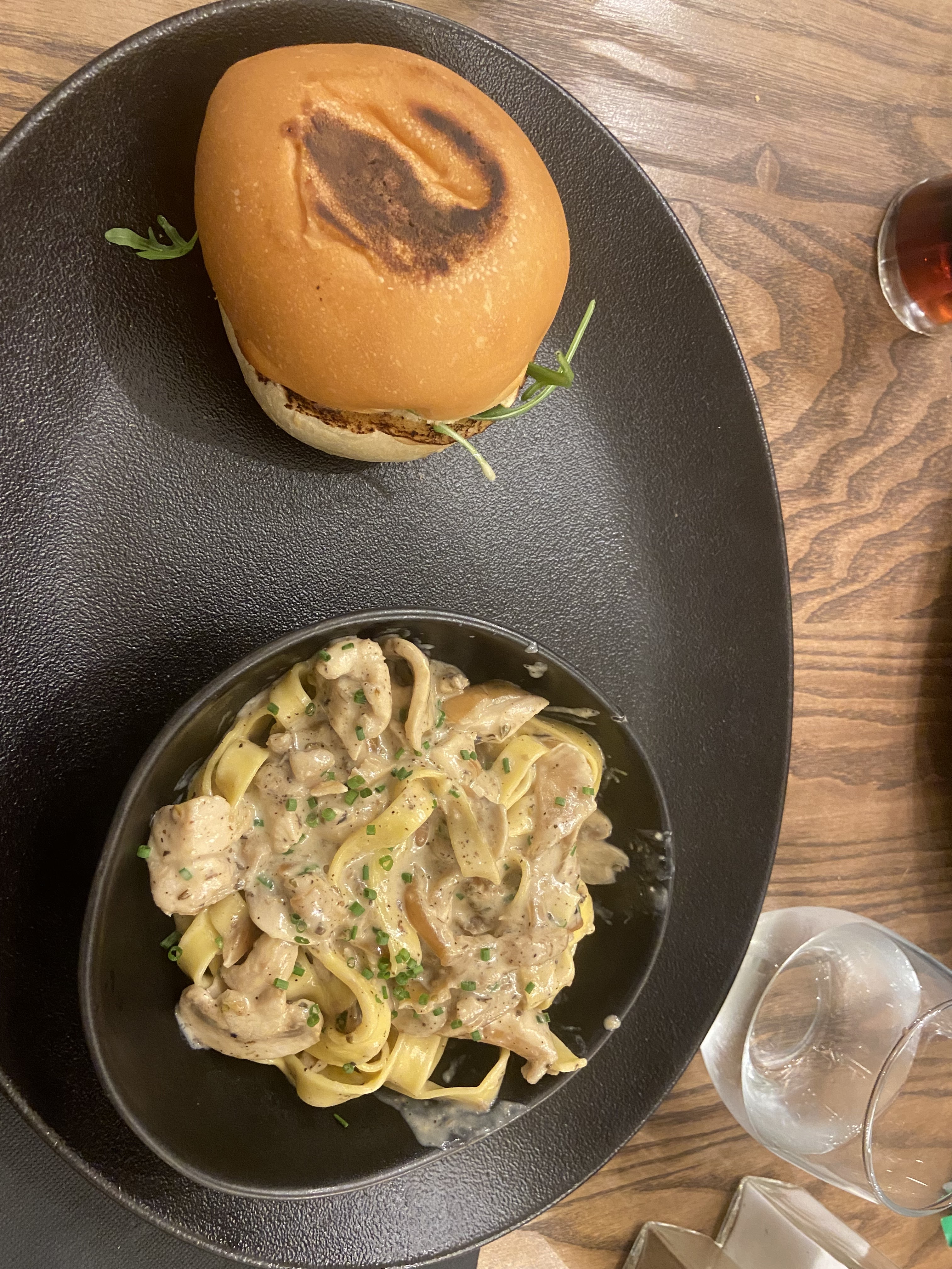 Alors leur burger était super bon on sentait que c’était bien fait maison, par contre moins fan des pâtes j’ai pris pâtes à la truff et poulet, j’ai trouver la truff pas assez forte. Je trouve qu’il yavais beaucoup de bruit, ont entend beaucoup les gens à côté ce qui fait une salle rempli et on s’entend vite peu. Le service était top réactif rapide. Je dirais que c’est un restau banal Ducoup je n’est pas mis + d’étoile mais sinon à venir tester