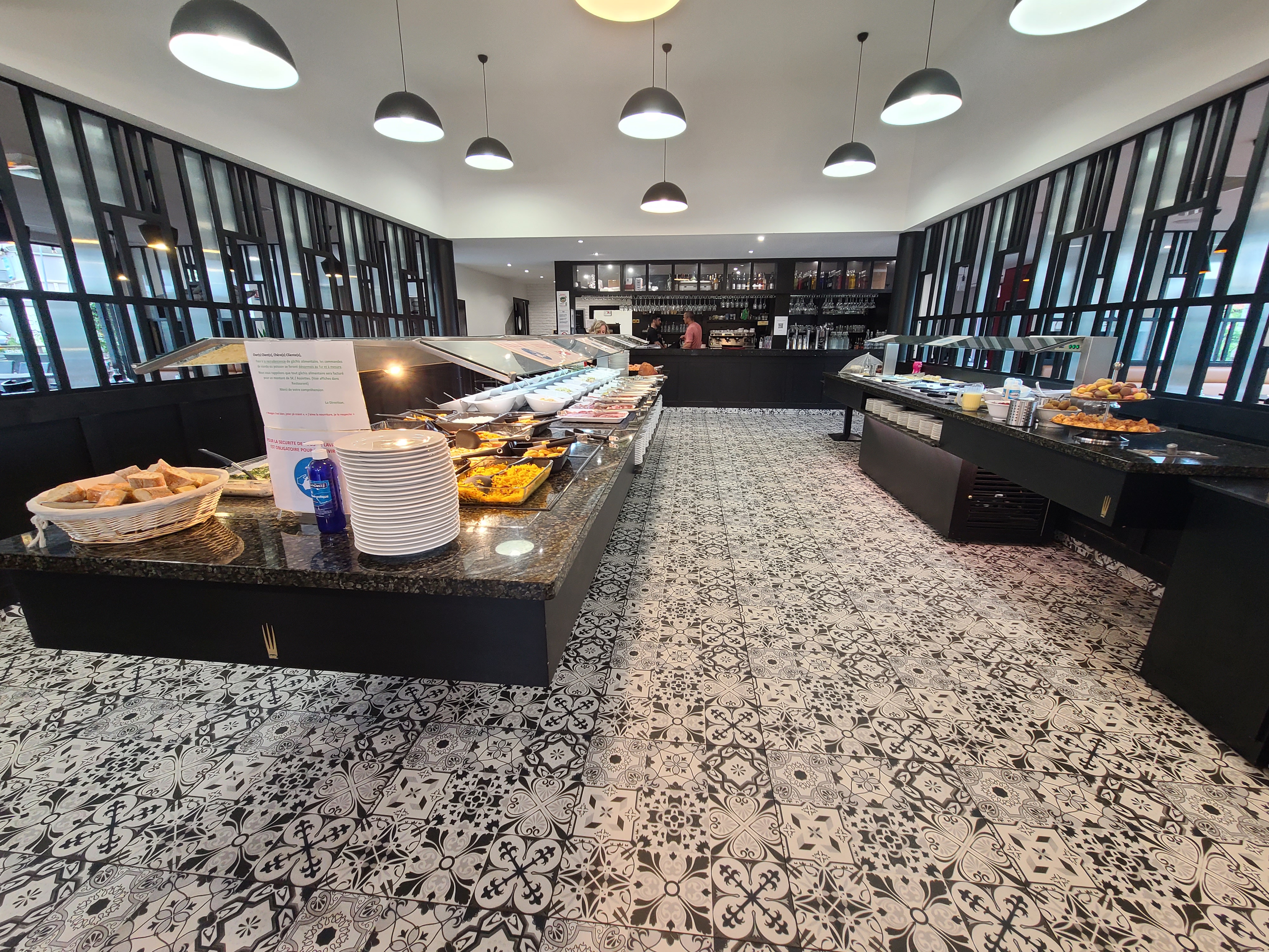 Restaurant agréable, équipe très professionnelle et avenante. Le restaurant est assez propre même si, en fin de service, le sol colle rapidement aux chaussures. Quoi qu'il en soit le buffet de hors d’œuvres est conséquent et est assez varié. Le buffet de desserts est sympa et est vraiment intéressant, je recommande. Toutefois le côté grill est décevant, ce qui joue sur ma note. Le concept est sympa mais est à revoir. Il faut passer commande au grill (il y a du choix de viande mais peu pour les sauces. De plus nous sommes quasiment directement plongé dans la cuisine. Perso je n'avais pas envie de subir les vapeurs et odeurs d'une cuisine de restaurant). L'endroit reste agréable tout de même.
