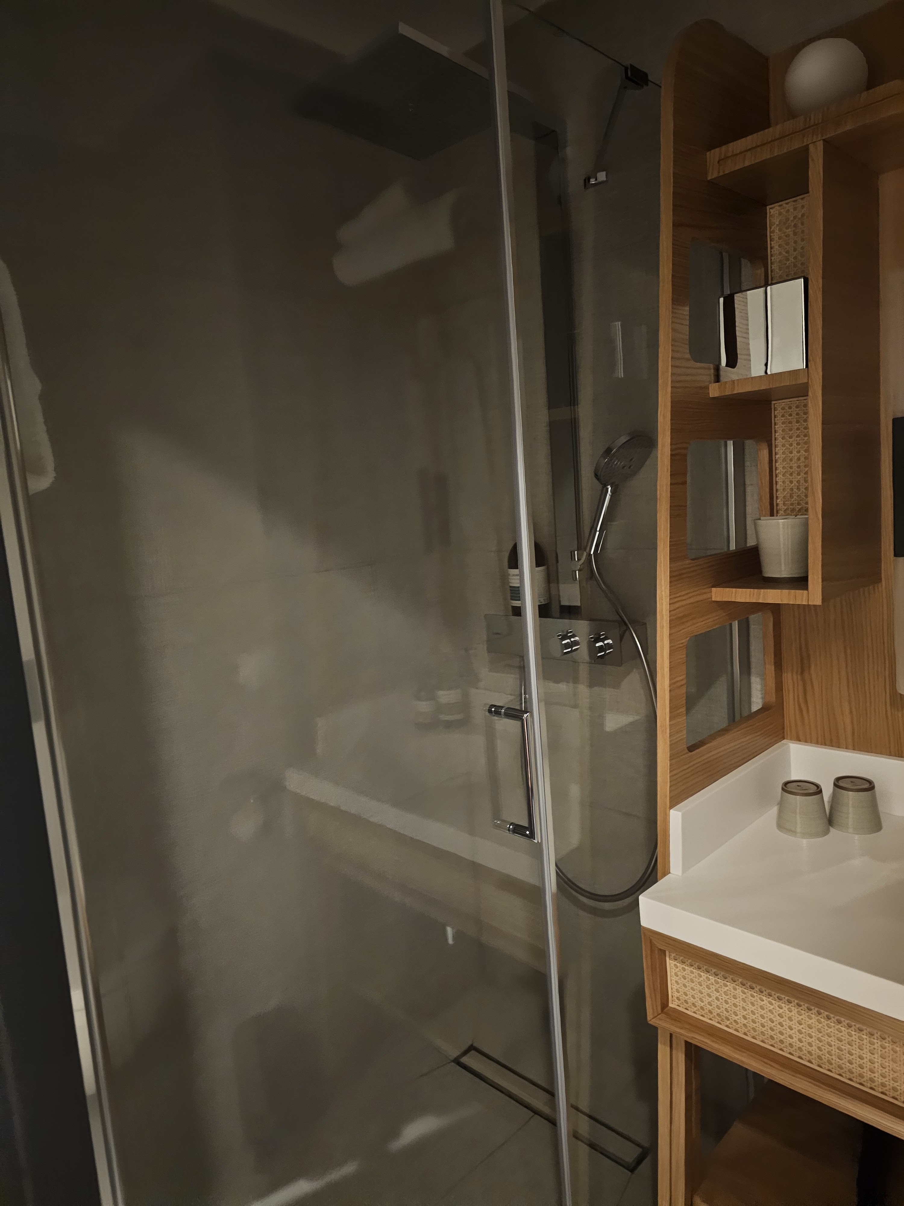 Comme l'hôtel est relativement neuf, j'ai l'impression que c'était un joyau caché. Le personnel était extrêmement sympathique et serviable, l'hôtel s'adresse peut-être à une jeune génération avec la kitchenette, le design du hall et l'ambiance du bâtiment. Tout était très propre et neuf et d'un niveau élevé. Mon seul reproche serait qu'en tant que passionné de gym, le niveau de la salle de sport est médiocre. Ils ont opté pour l’apparence visuelle plutôt que pour l’aspect pratique.