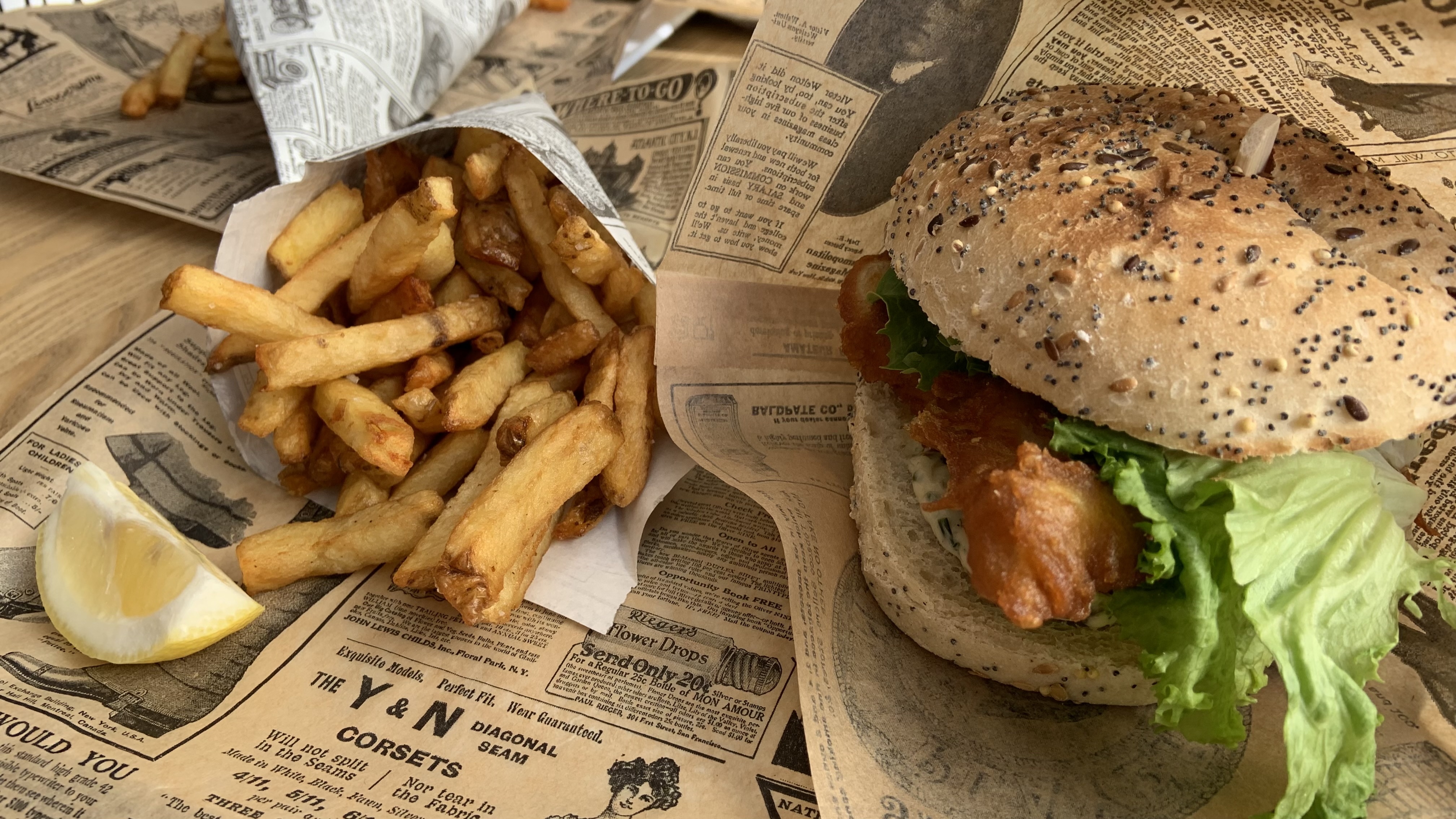 Nous avons commandé à emporter, nous avons été conquis par les burgers de poisson qui sont délicieux et très gourmand ! Les frites sont aussi super bonne et ça va de paire avec l'amabilité du personnel qui est au top ! Nous sommes ravis et conseillons vivement ! 😁