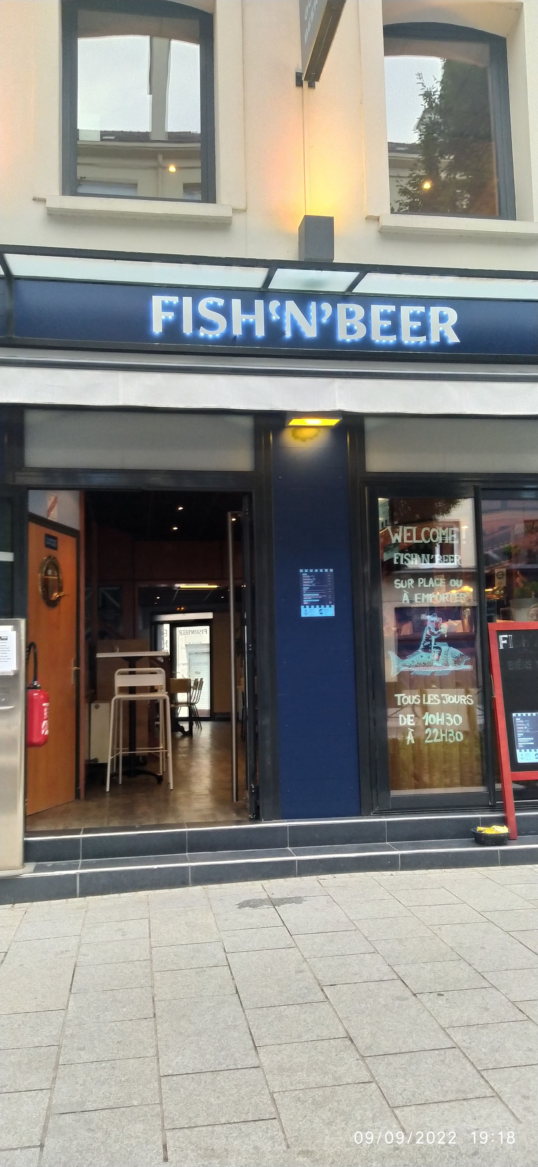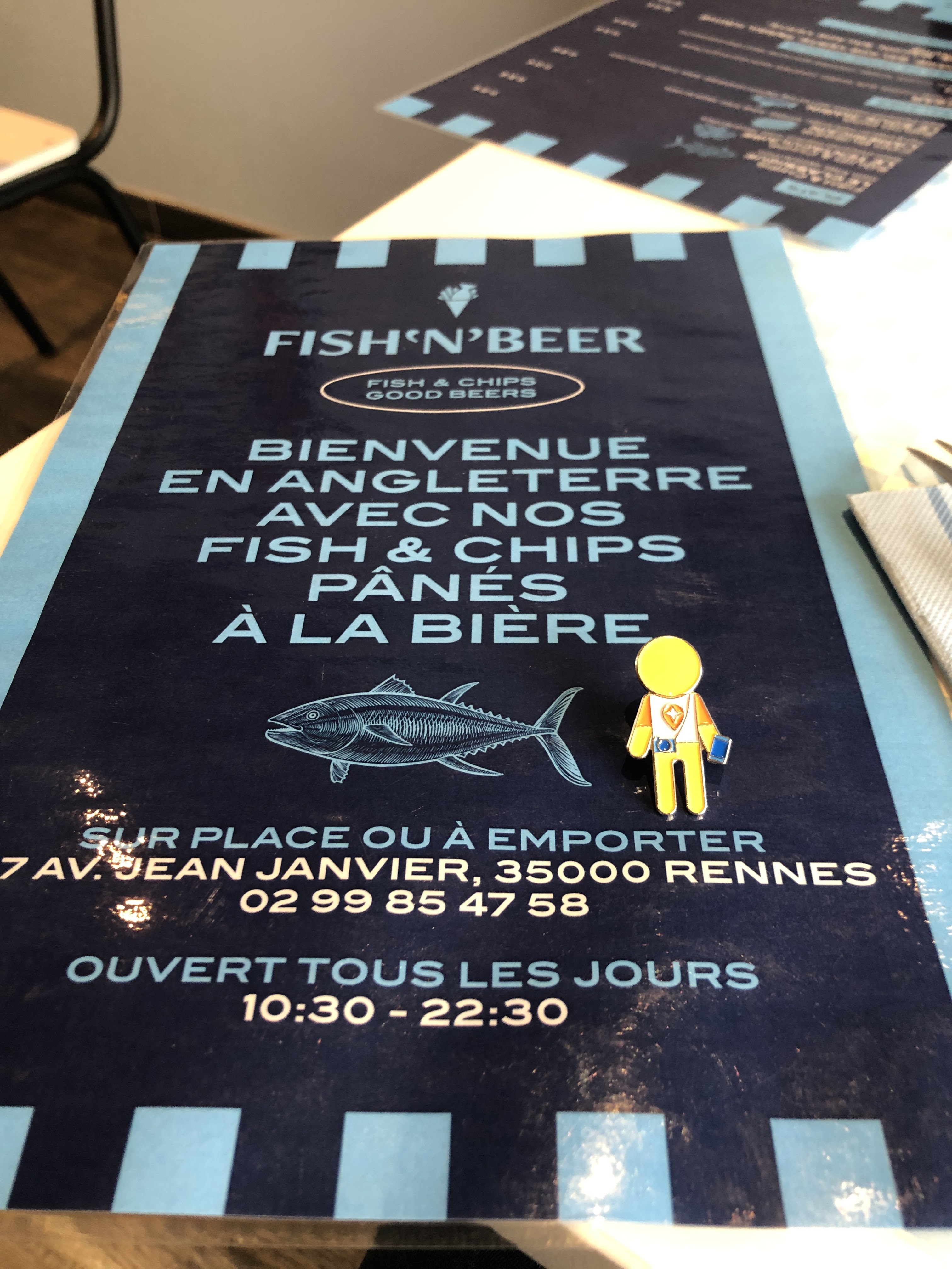 Situé à Rennes. Concept et nom original. Situé près de la gare au centre ville. De délicieux mets et de boissons. A base de poissons, frites et bière. Moment convivial, équipe au top
