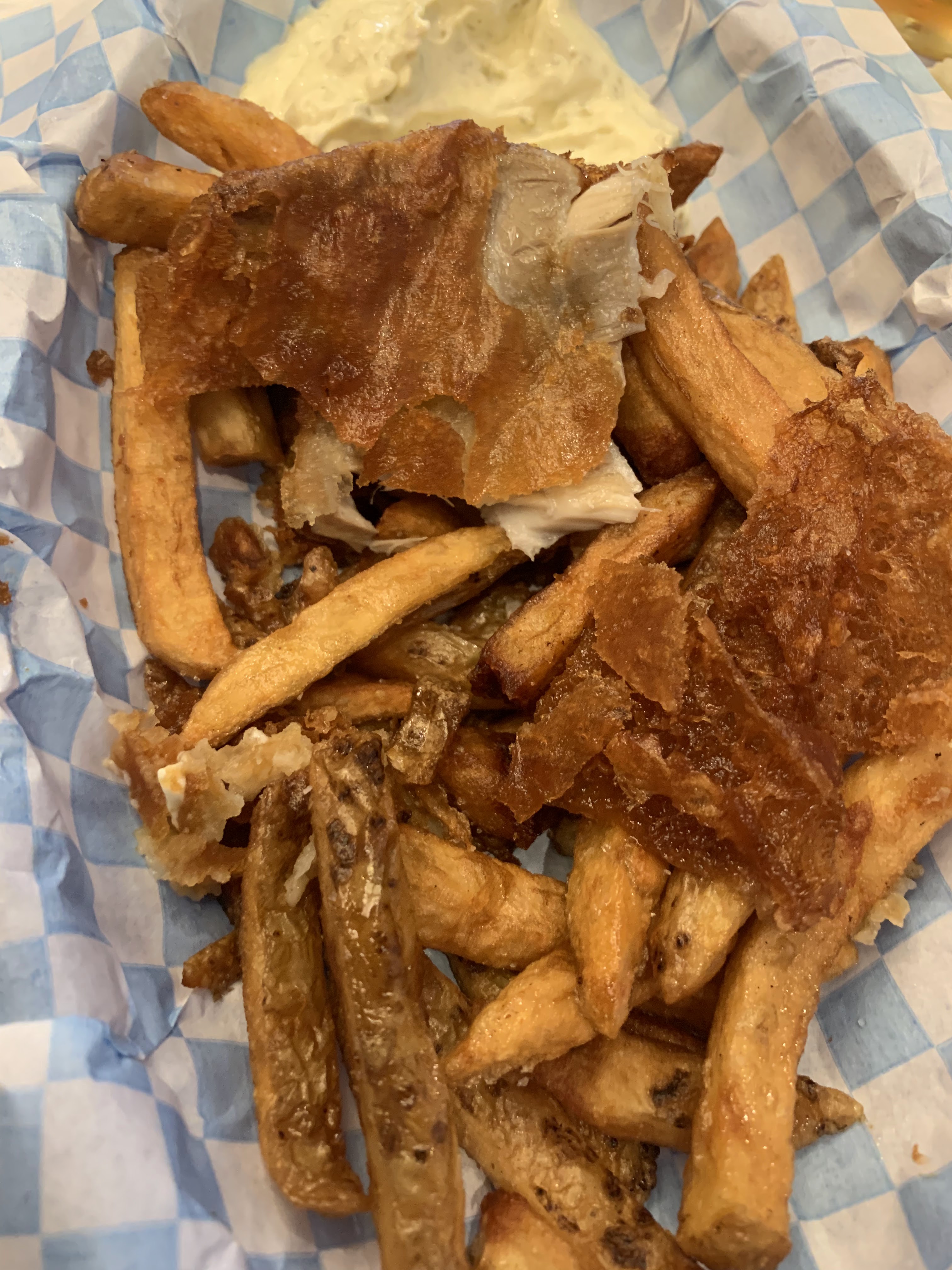 portions copieuses, les chips (frites) étaient biens moelleuses et croustillantes. Le personnel à l'écoute. Si vous aimez les fish n chips c'est une bonne adresse