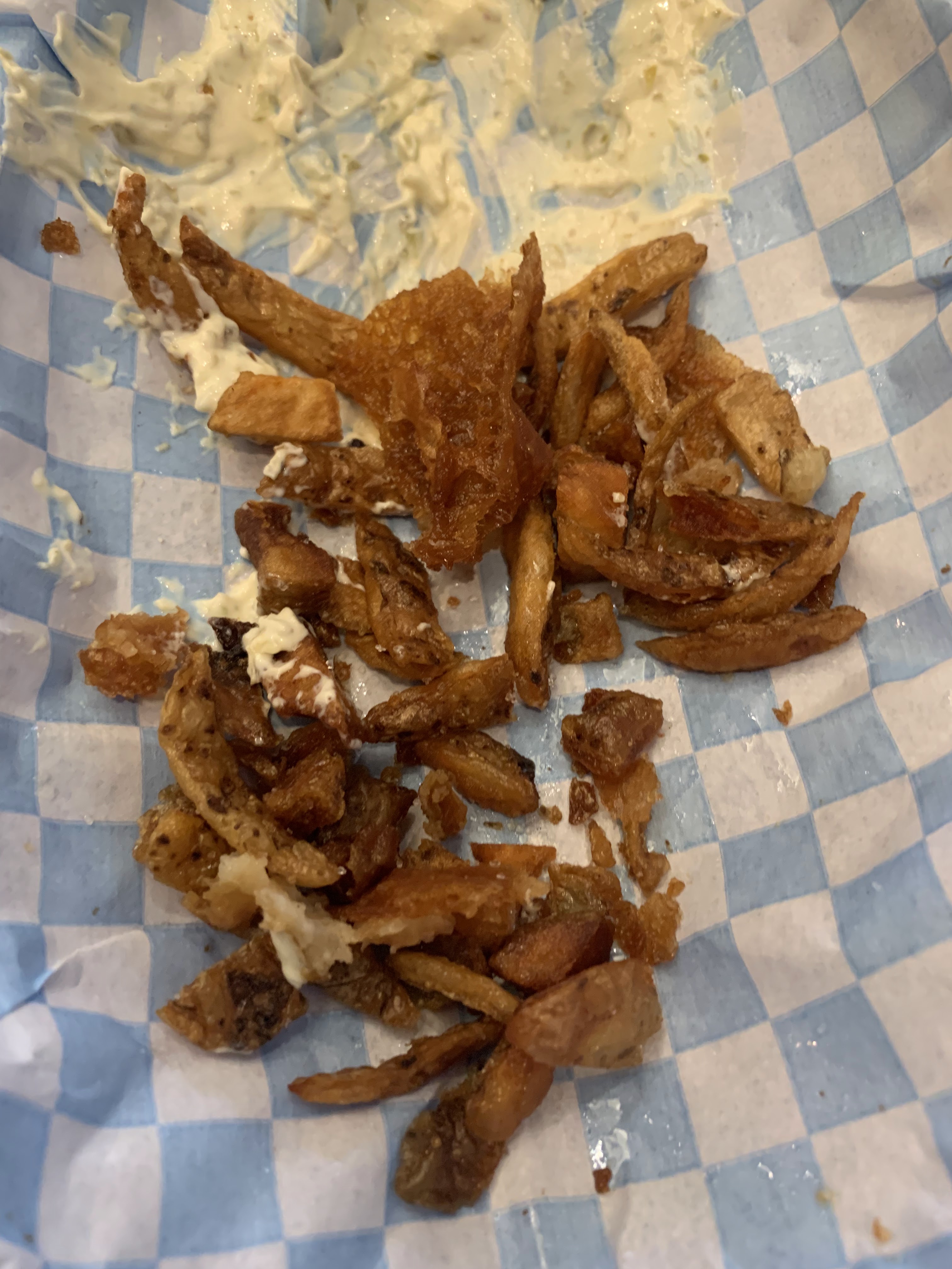 La cuisson des frites est moyenne, les portions sont petites et le beignet est si sec qu'on ne peut pas le manger. Très cher pour ce que c'est. Nous ne commanderons plus.