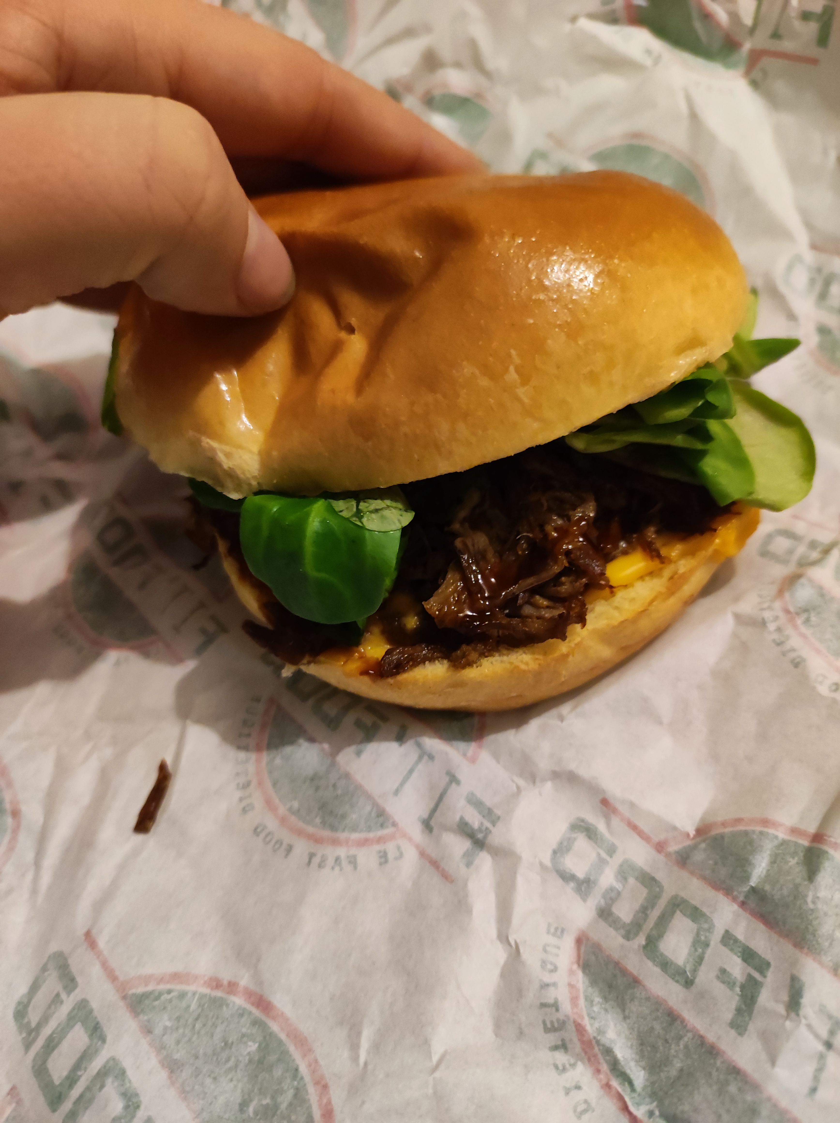 Nous avons passé une commande : nous avons été déçus. Le bœuf effiloché était sec, le burger manquait de sauce. Les frites de patate douce étaient toutes molles. La seule chose positive : le pain brioché.