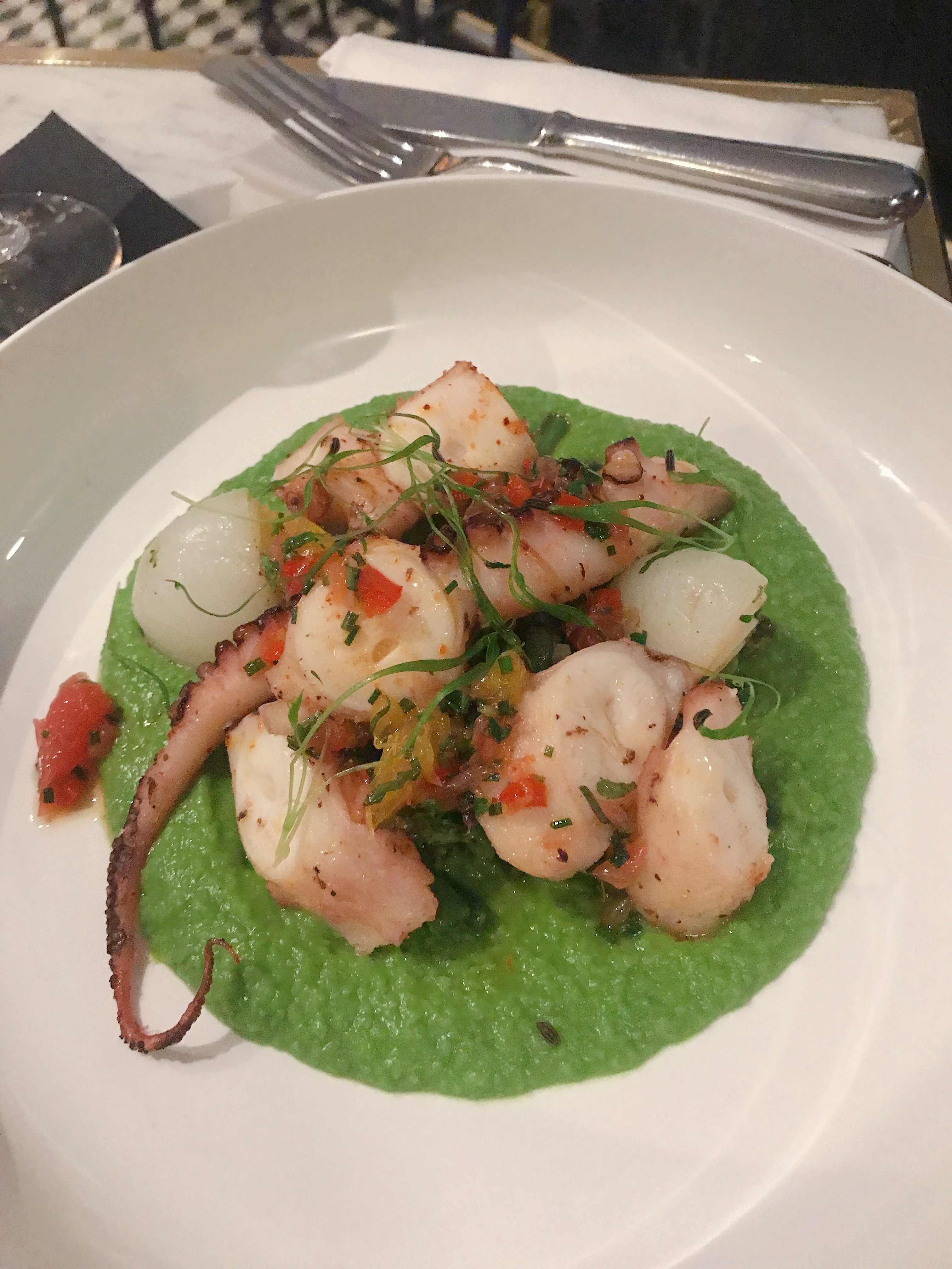Tout a été parfait du début à la fin ! Le gérant est aux petits soins, la terrasse est top, l'endroit est très beau et classe mais le personnel ne nous prend pas de haut, ça change, surtout dans ce beau quartier. La cuisson du poulpe est parfaite ce qui est rare, et les cocktails et desserts excellents et bien conçus. Je reviendrai à coup sûr.