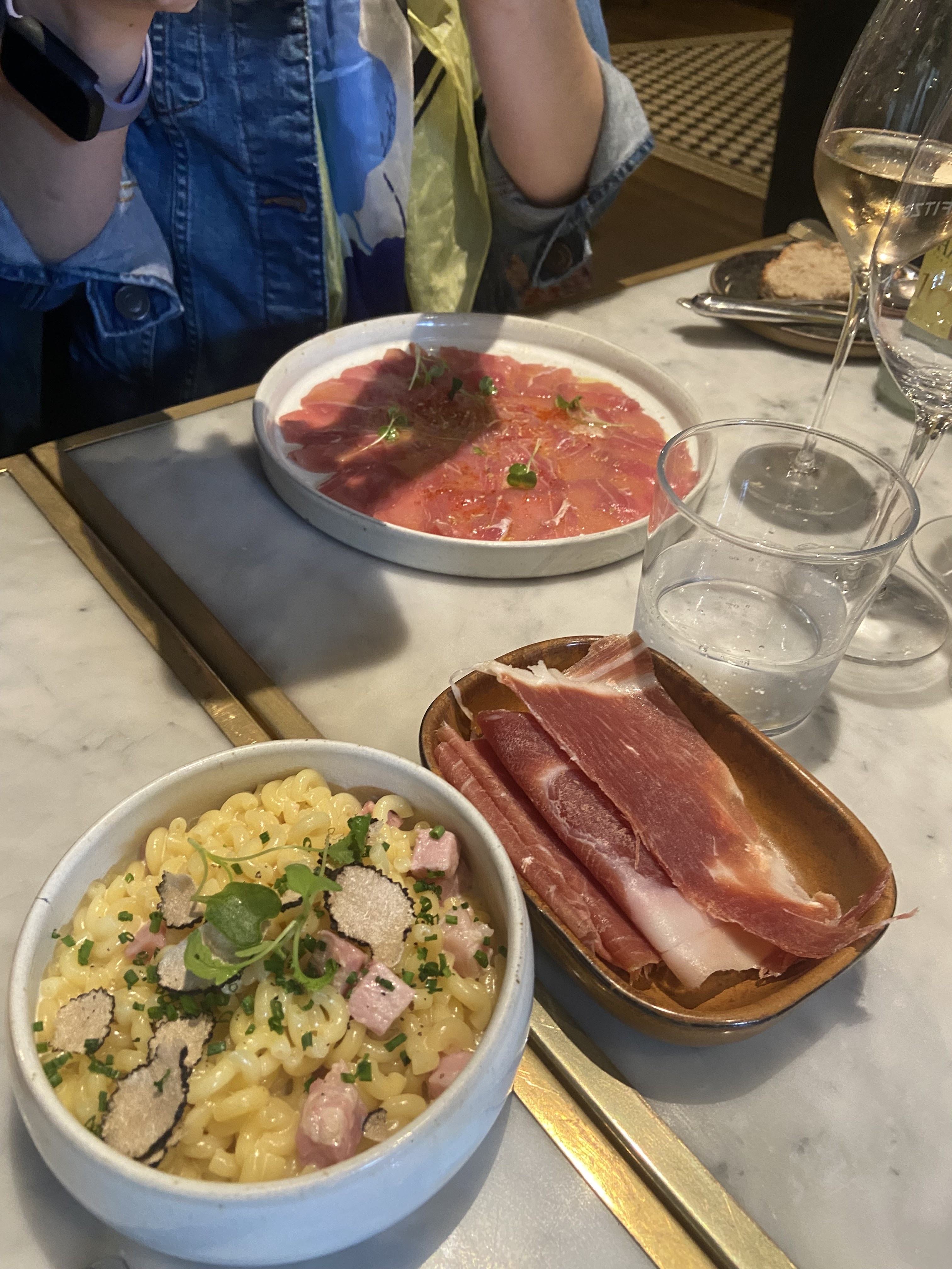 Ce fut une expérience intéressante (décevante). Détails ci-dessous. La décoration est cool, il y a des places assises à l'intérieur et à l'extérieur sur une route très fréquentée. 3 étoiles car tout a bien commencé et la plupart de la nourriture et des boissons étaient bonnes, le personnel n'était pas génial mais pas non plus impoli. Assis à 20h, commandé à 20h15, reçu notre vin à 8h20, les entrées sont arrivées à 20h25, débarrassé les assiettes après les avoir terminées (jusqu'à présent, super expérience). Après avoir été continuellement ignorés en essayant d'attirer l'attention du personnel pendant 1 HEURE, nous avons finalement interrogé le serveur sur notre plat principal et ils l'ont sorti en 10 minutes, mais à ce stade, il était 21h40. Le personnel servait une table à côté de nous mais nous tournait activement le dos. L'autre table à côté de nous a attendu si longtemps pour passer une commande qu'elle est repartie. En ce qui concerne la qualité de la nourriture, les entrées étaient bonnes, mon partenaire a apprécié les côtelettes de lampe principales mais mes pâtes au citron et à la ricotta étaient pâteuses et insuffisamment cuites (l'intérieur était sec et pas chaud). Je déteste gaspiller de la nourriture et je ne suis pas très difficile, mais honnêtement, je n’ai même pas pu la finir. Les boissons étaient bonnes. Le personnel ne s’est pas excusé de l’attente et ne nous a proposé aucune réduction ni même de dessert gratuit. Bien qu'après avoir attendu 1 heure et 40 minutes pour obtenir notre plat principal, nous ne voulions pas rester plus longtemps.