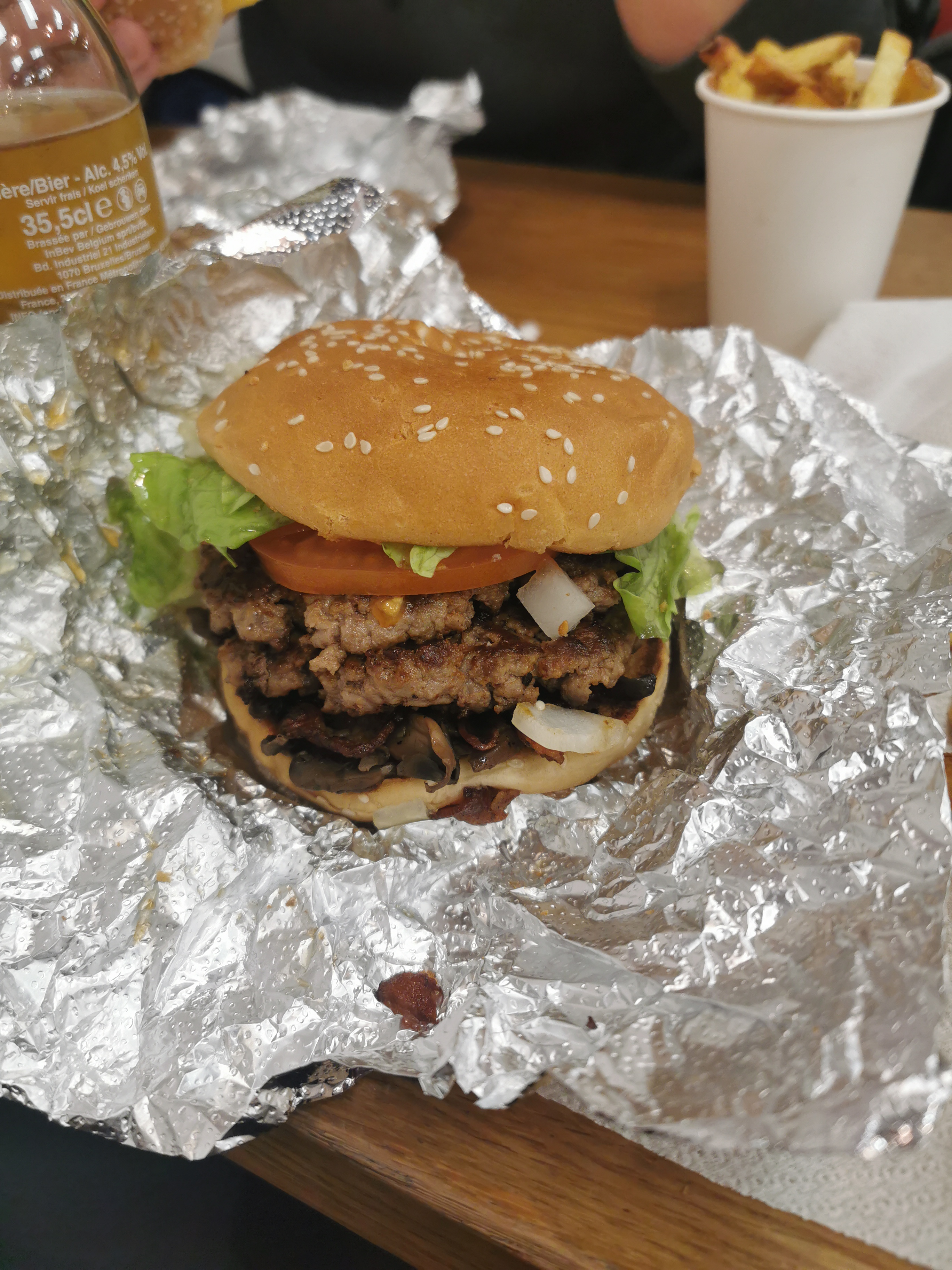 Les sandwichs sont bons, les frites également mais c'est un peu cher pour ce que c'est. Ça fait partie du concept, soit. L'utilisation de l'aluminium pour emballer les sandwichs est étonnante en 2021 quand se réfère aux recommandations de l'OMS. Le jus de viande, présent en trop grosse quantité, est gênant lorsqu'on mange sans couverts, c'est pourquoi les steaks dans les burgers sont rarement juteux chez la concurrence.
