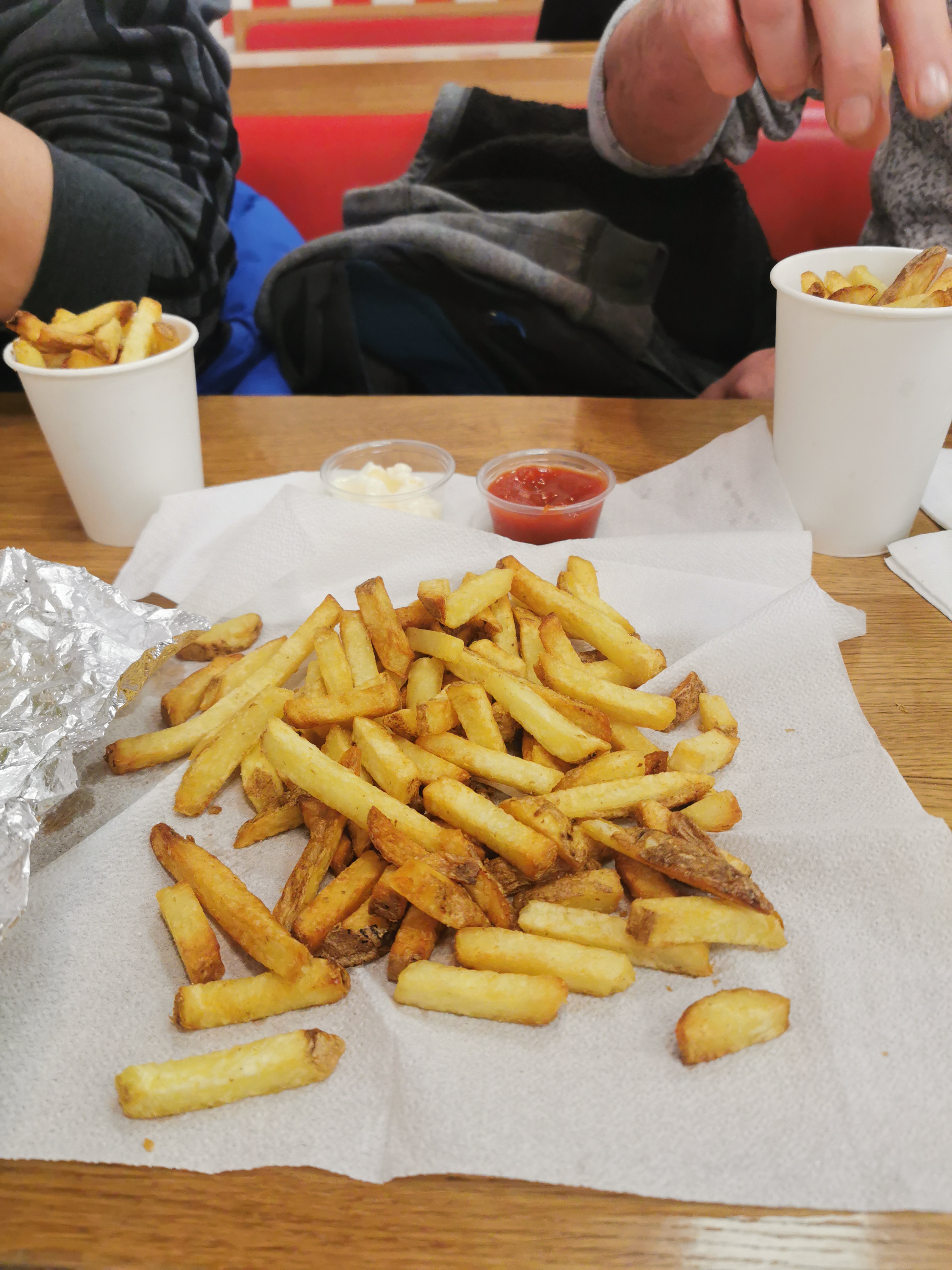 Rapport qualité-prix plus que médiocre. La tradition de jeter des poignées de frites dans le sac en vrac incompréhensible et pas hygiénique du tout. Pas de sanitaires sur place.