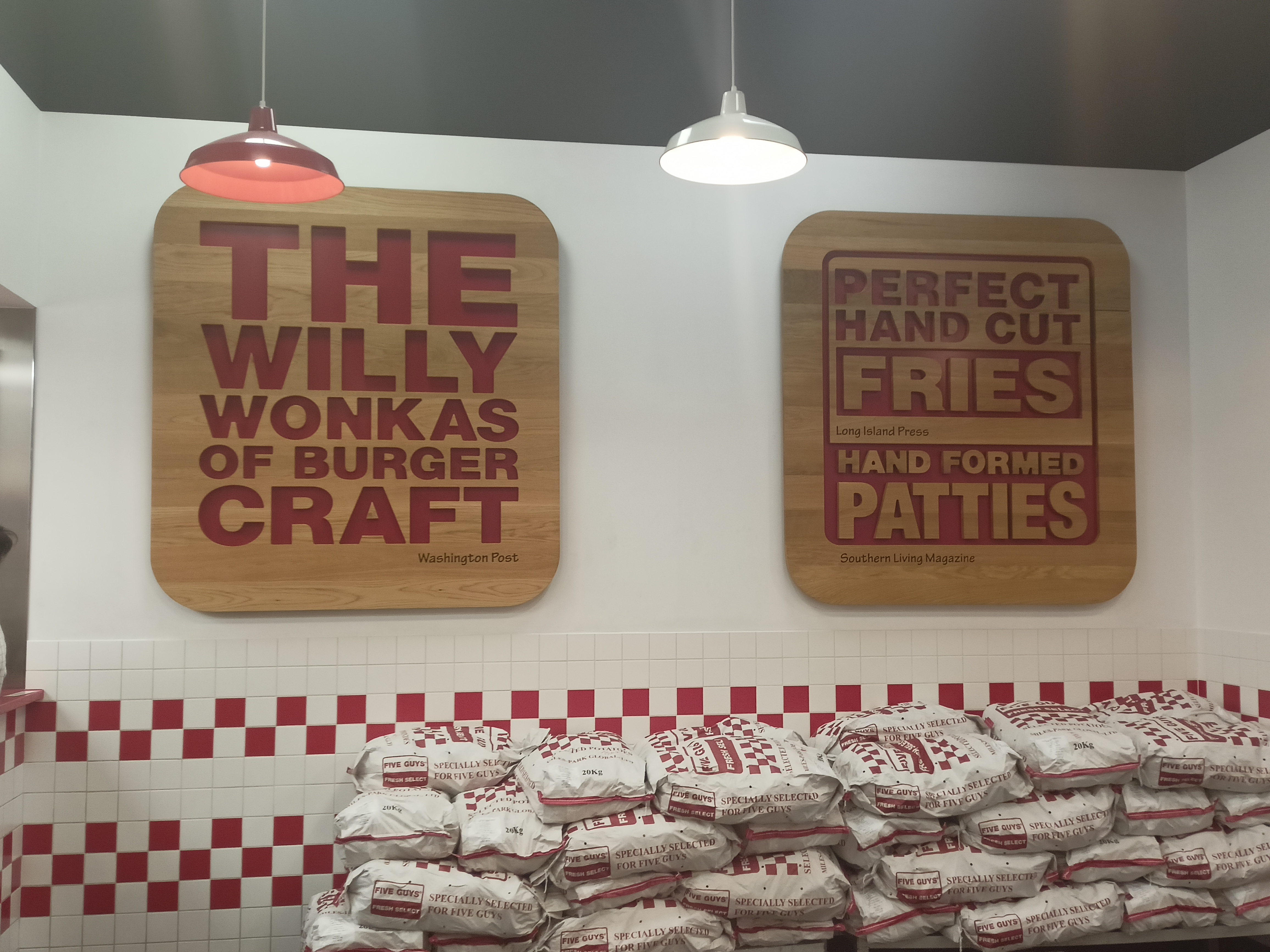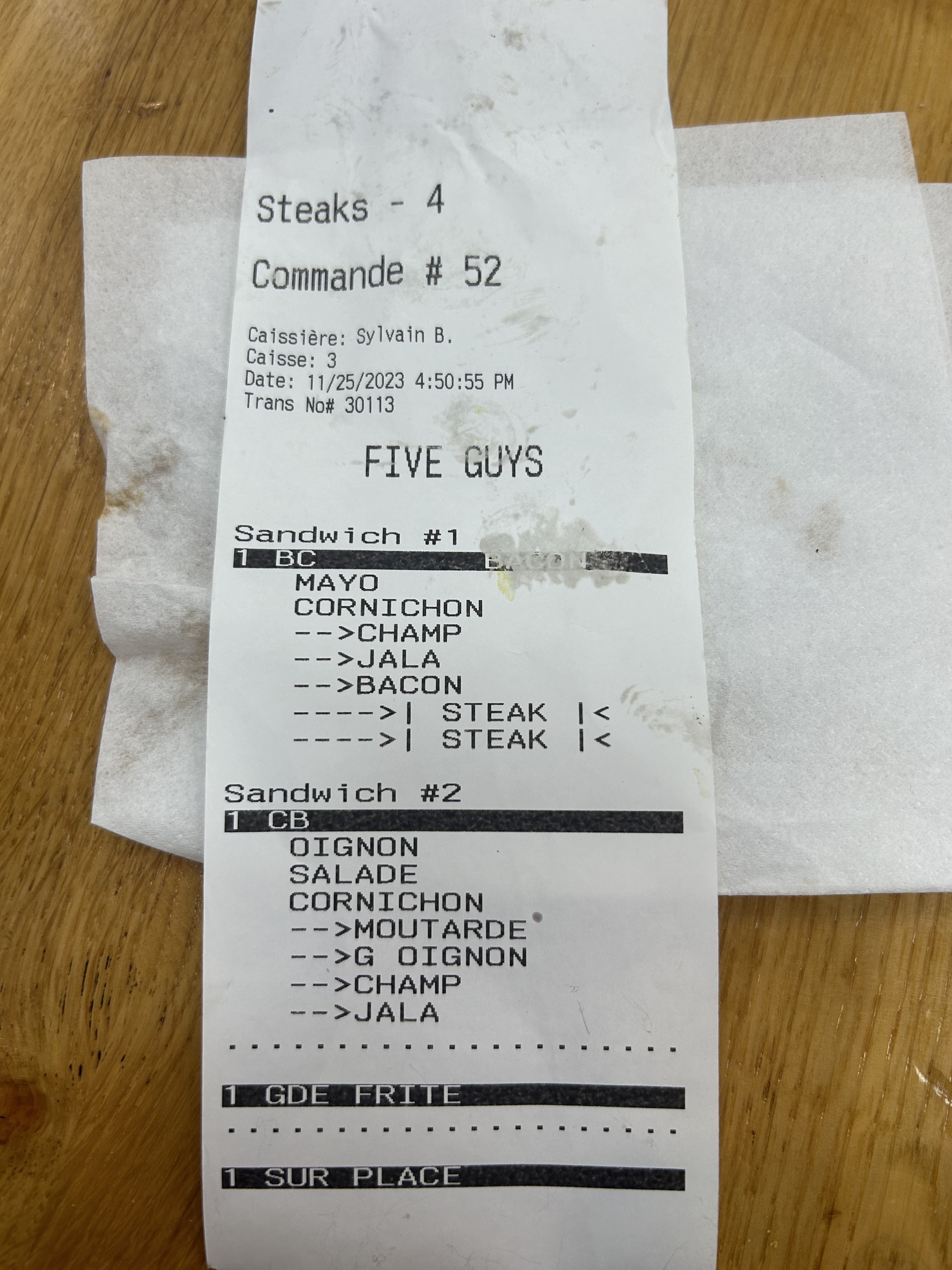 Premier Five Guys de ma vie, c'était vraiment trop bon. J'adore le concept et je reviendrais à coup sur. J'ai enfin trouvé la chaîne de burger la meilleure de France pour le moment. BK, Macdo sont très loin... Là on peut choisir tout ce qu'on veut et on voit la préparation des employés. Découverte de l'épice CAJUN !! Magnifique <3