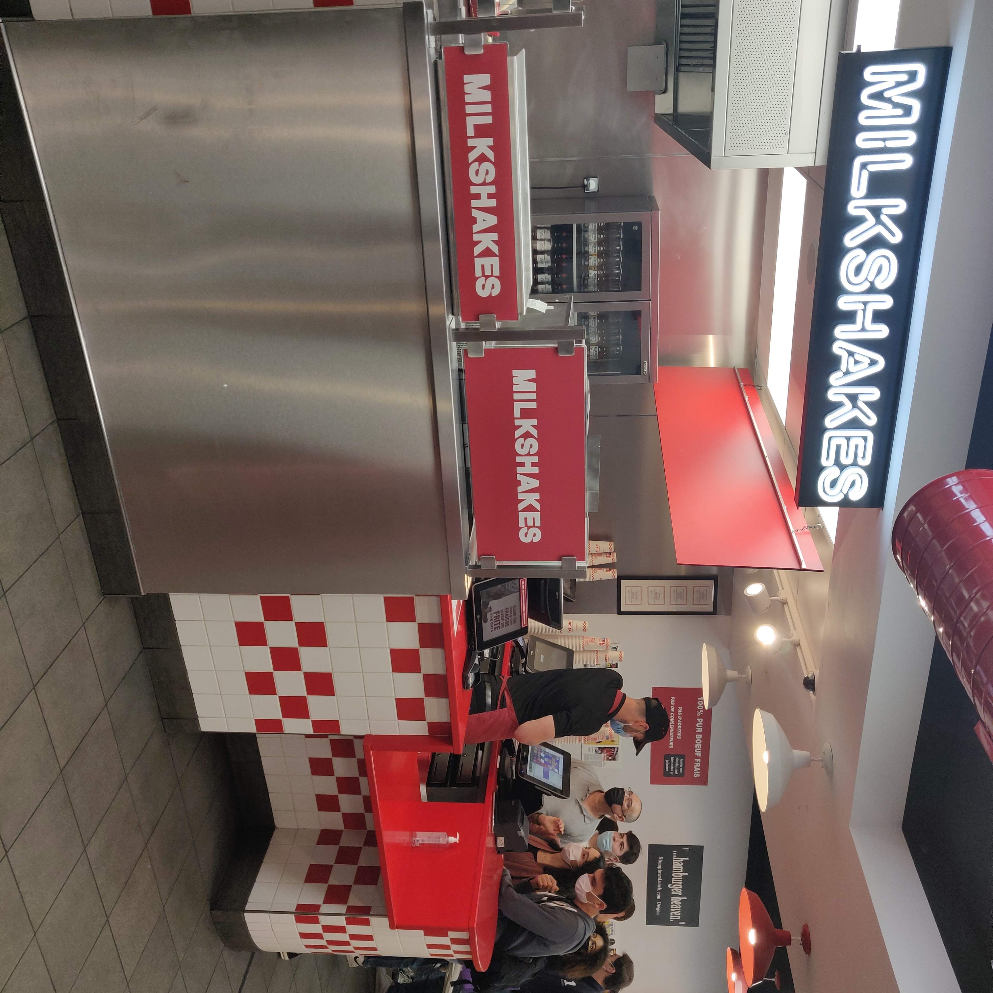 Toujours agréable de se rendre à Five Guys, service assez rapide et propre, la prise de commande est toujours sans faute, je recommande le milkshake qui est vraiment incroyable!