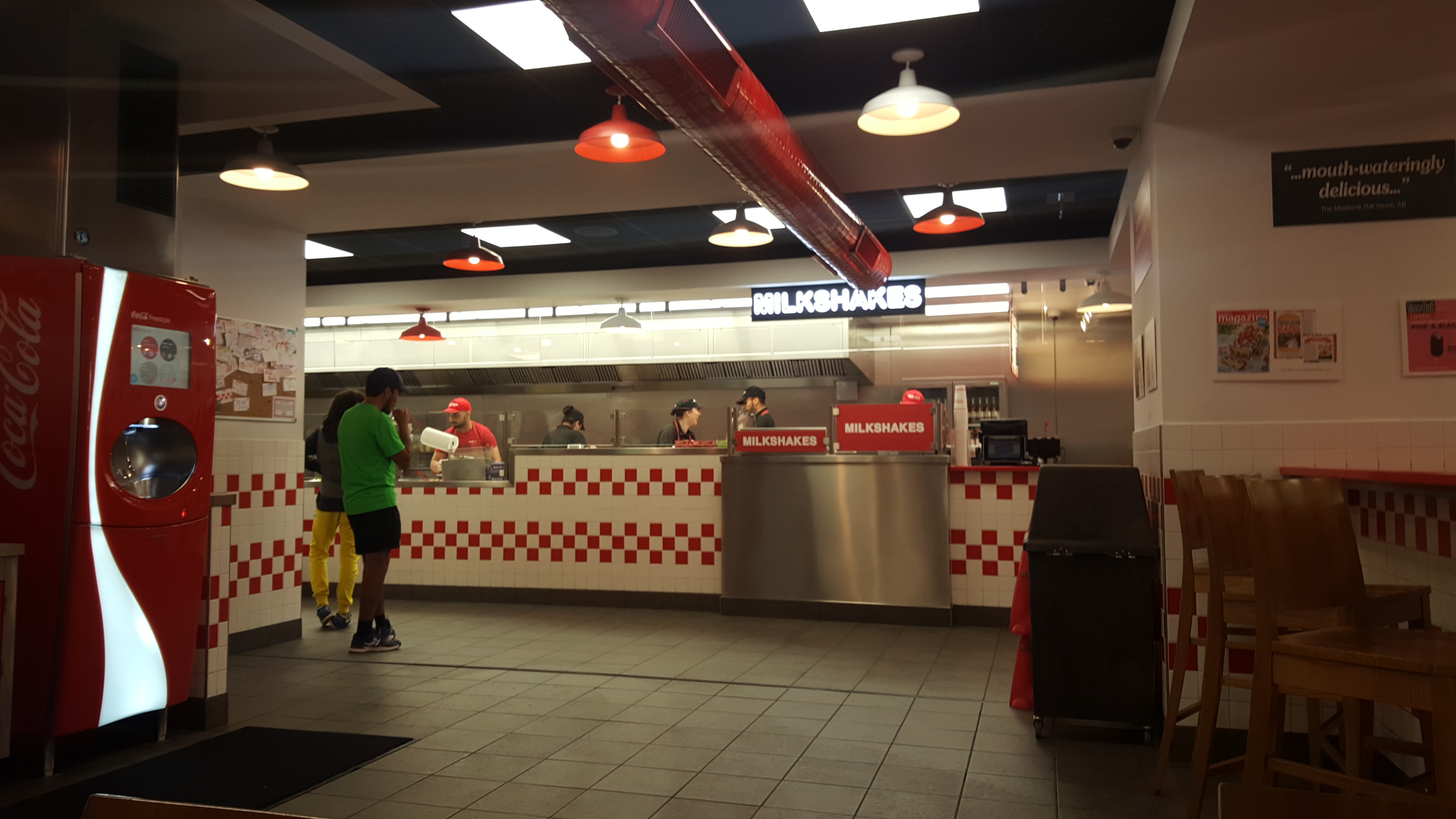 Un fast food assez chère cependant de meilleur qualité que les autres. Le Burger peut etre fait de manière personnalisée (même si les choix de viande son limitée, pas de poulet pzr exemple). Les frites sont très bonnes et ils sont genereux sur la portion. Le goût n'est pas forcément exceptionnel mais meilleur que certains fast food.