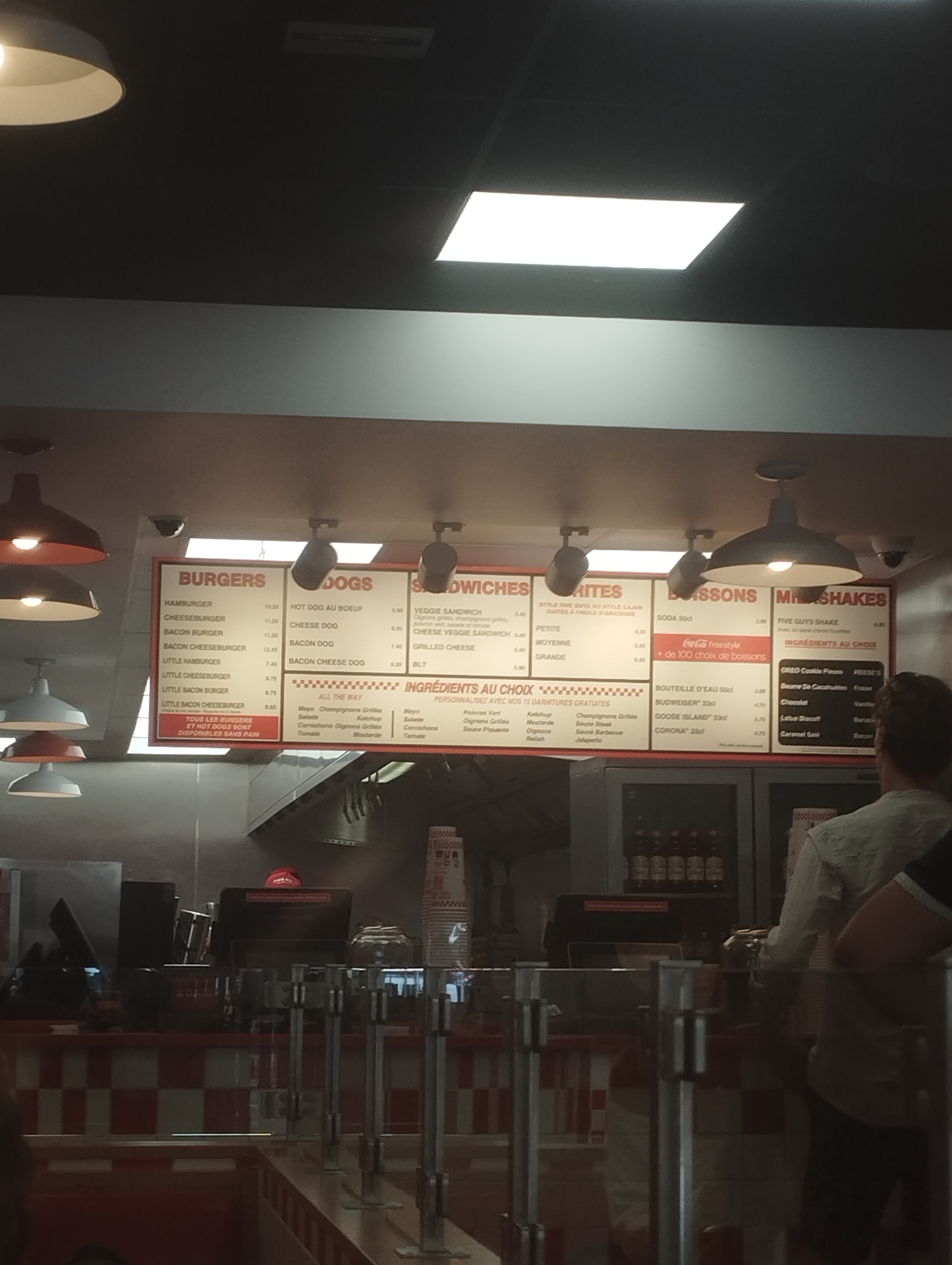J'avais bien envie d'un burger. ça tombait bien, il n'y avait qu'un seul client au comptoir de five guys. Nous rentrons, nous attendons, nous attendons, et nous ressortons. Aucun intérêt d'entrer dans un commerce pour rien.