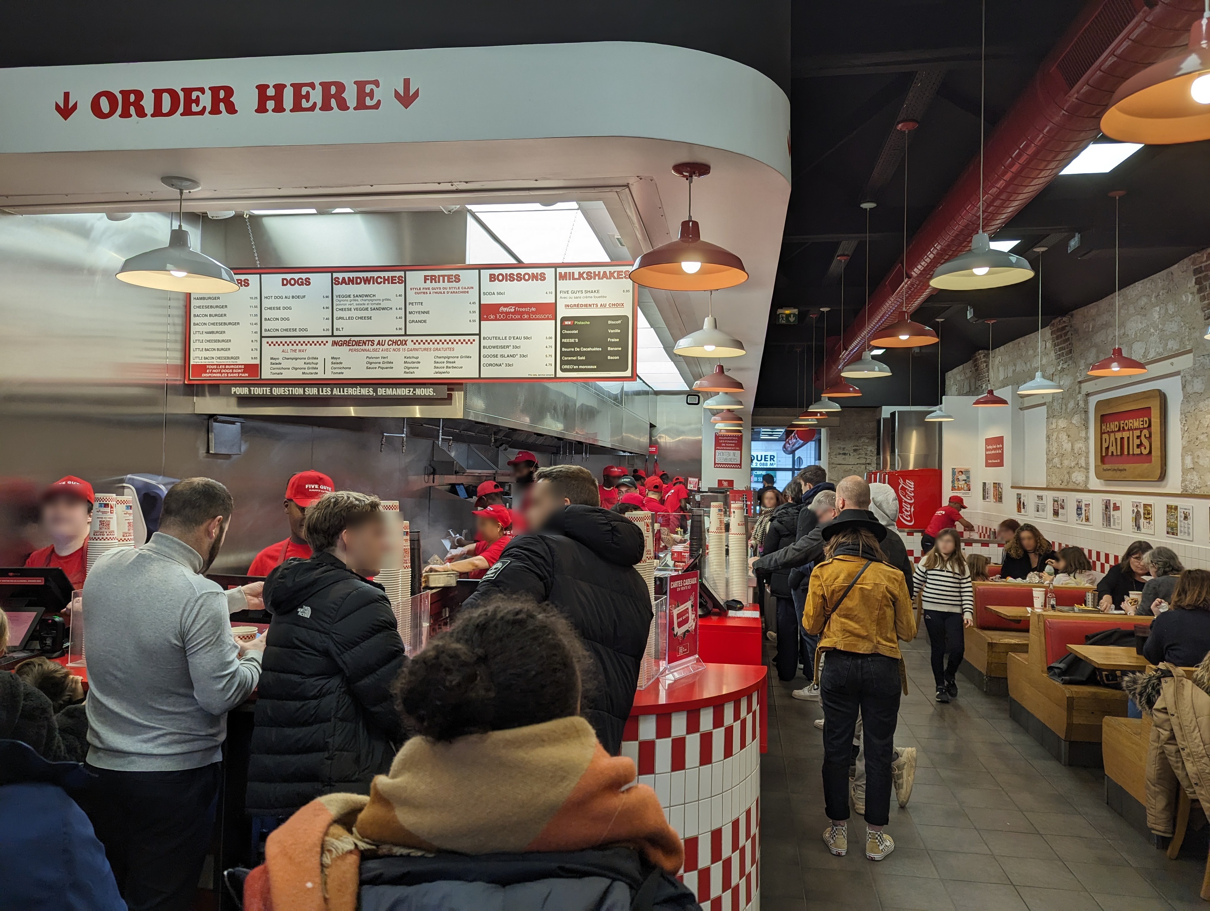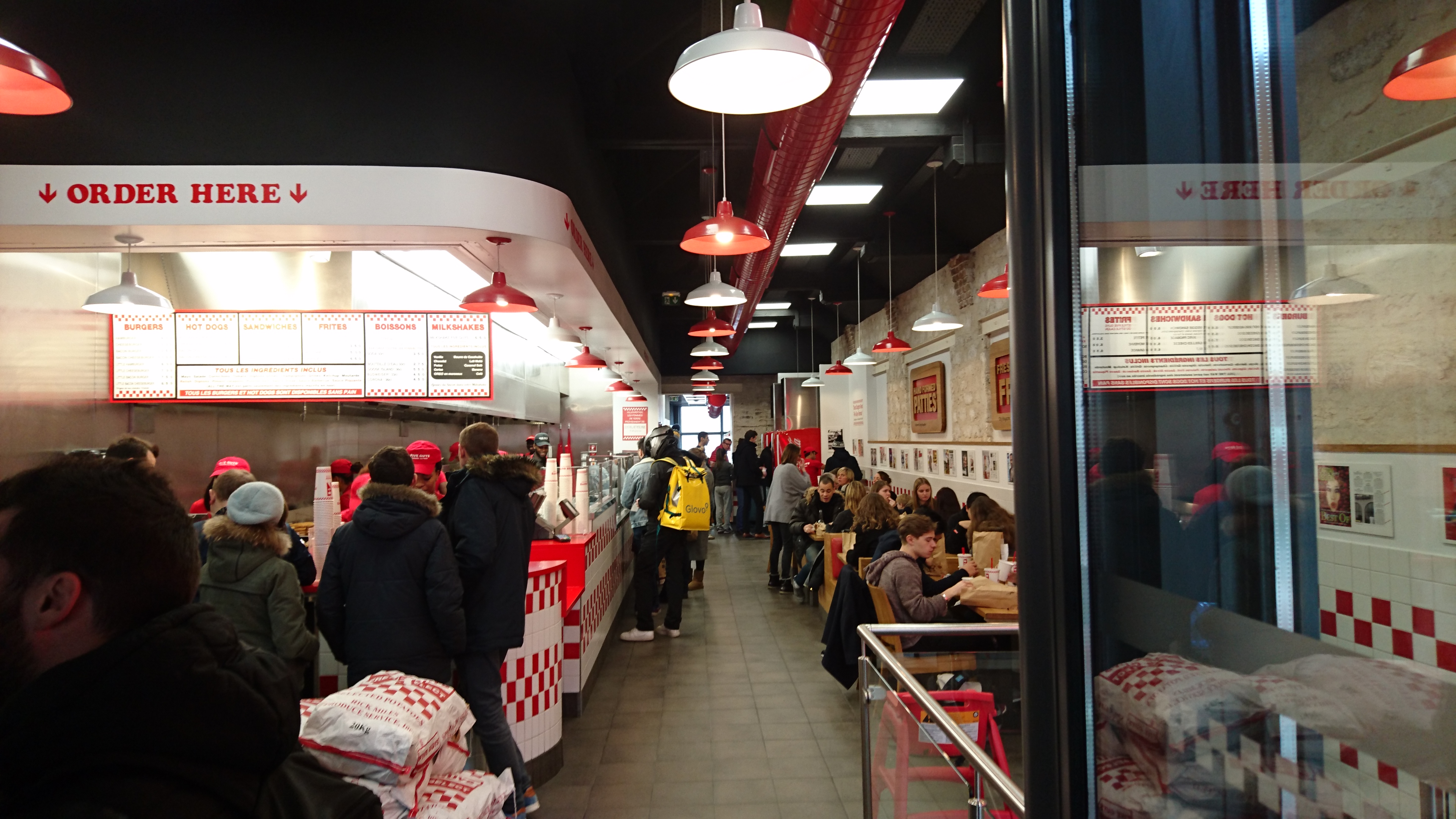 Ce restaurant qui a ouvert il y a peu sur Paris est assez connu aux USA. Le prix est élevé comme la plupart des restaurants de Burger. Le service est rapide et on peut voir comment la ligne fonctionne. La machine de soda est incroyable avec plus de 1000 choix pour remplir son verre. Sinon le burger est bon mais rien d'exceptionnel. Le service n'est pas bon et le sol est assez glissant à cause de la graisse. Petit bonus, les cacahuètes gratos si vous aimez !