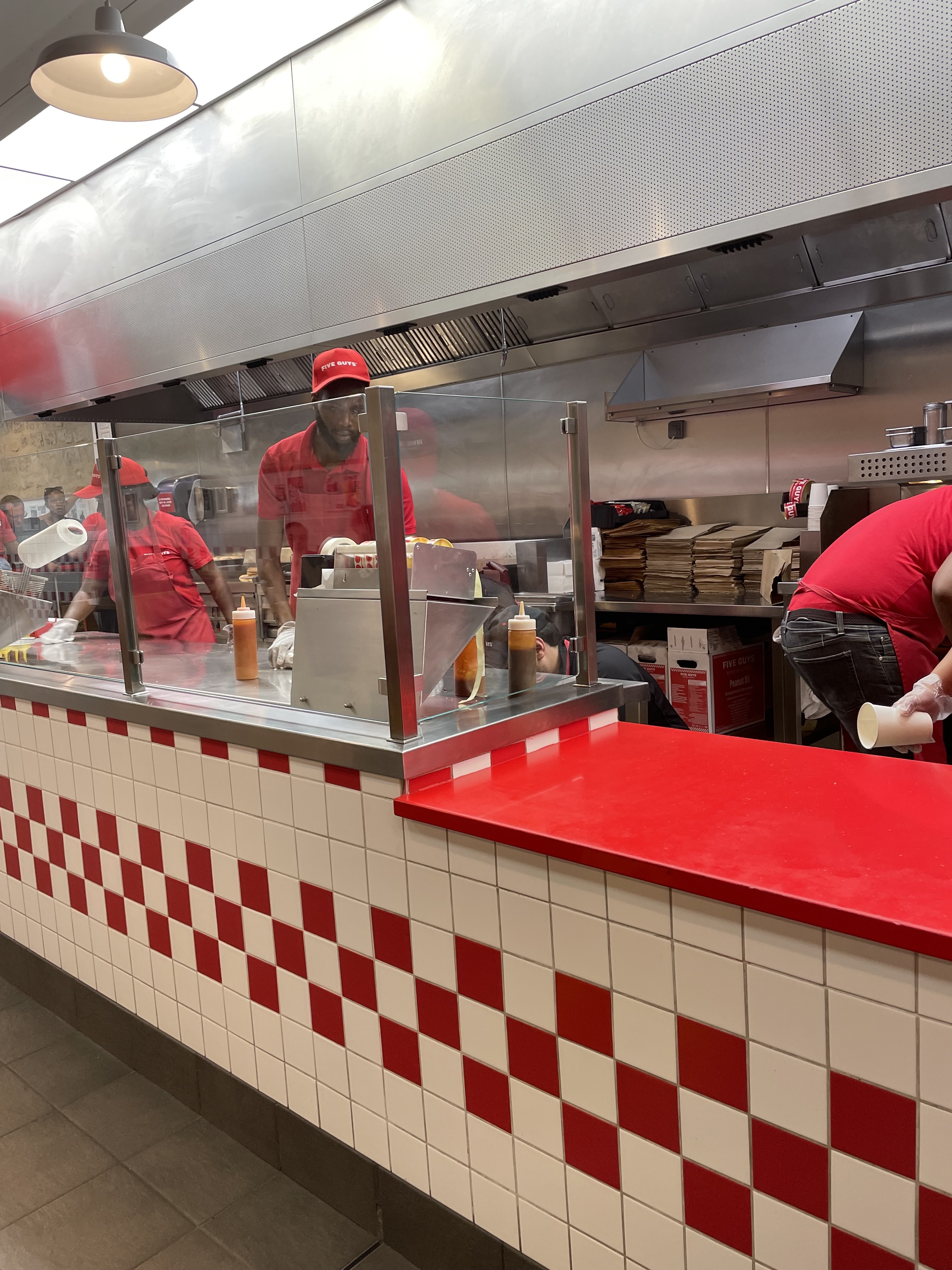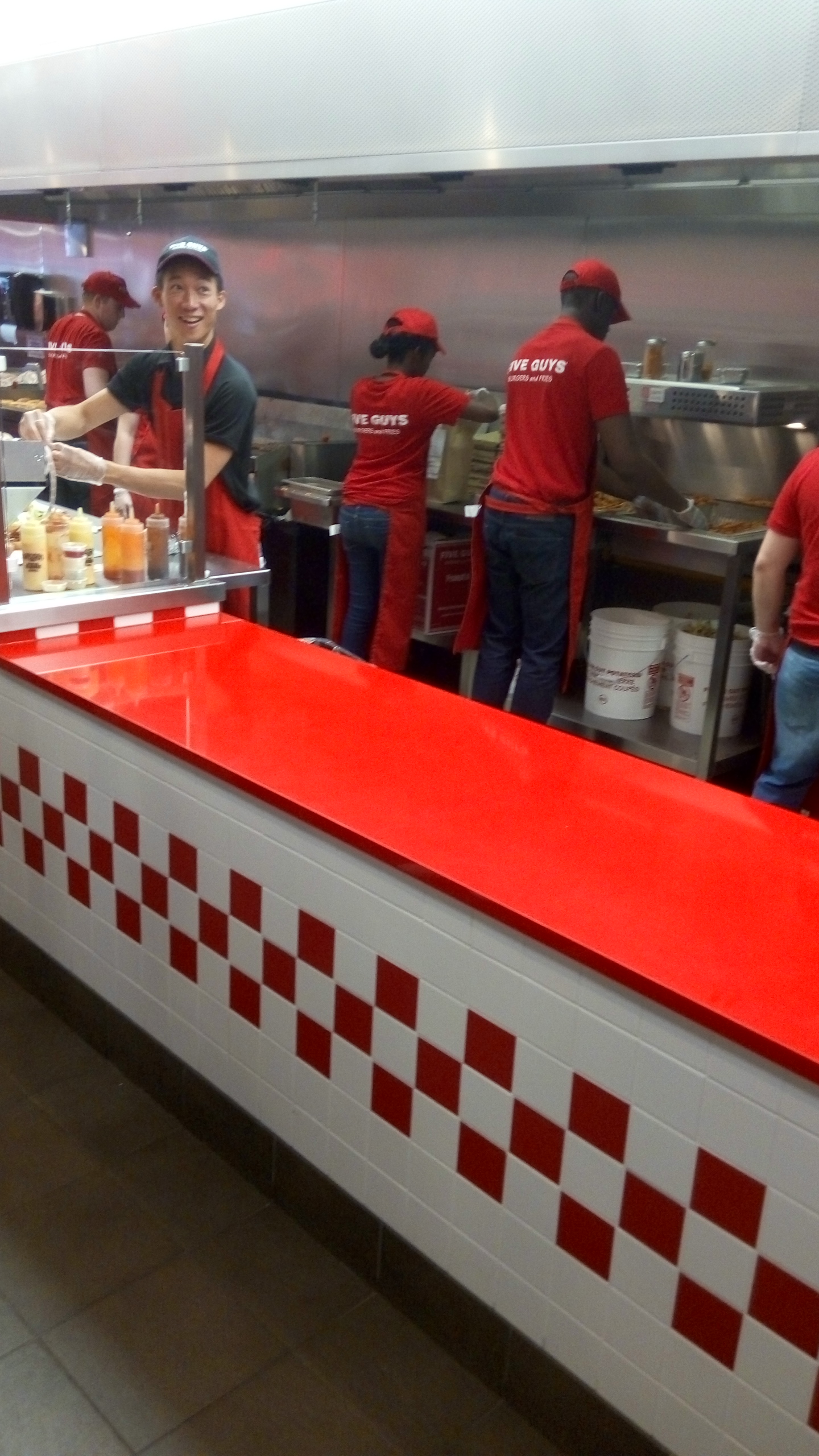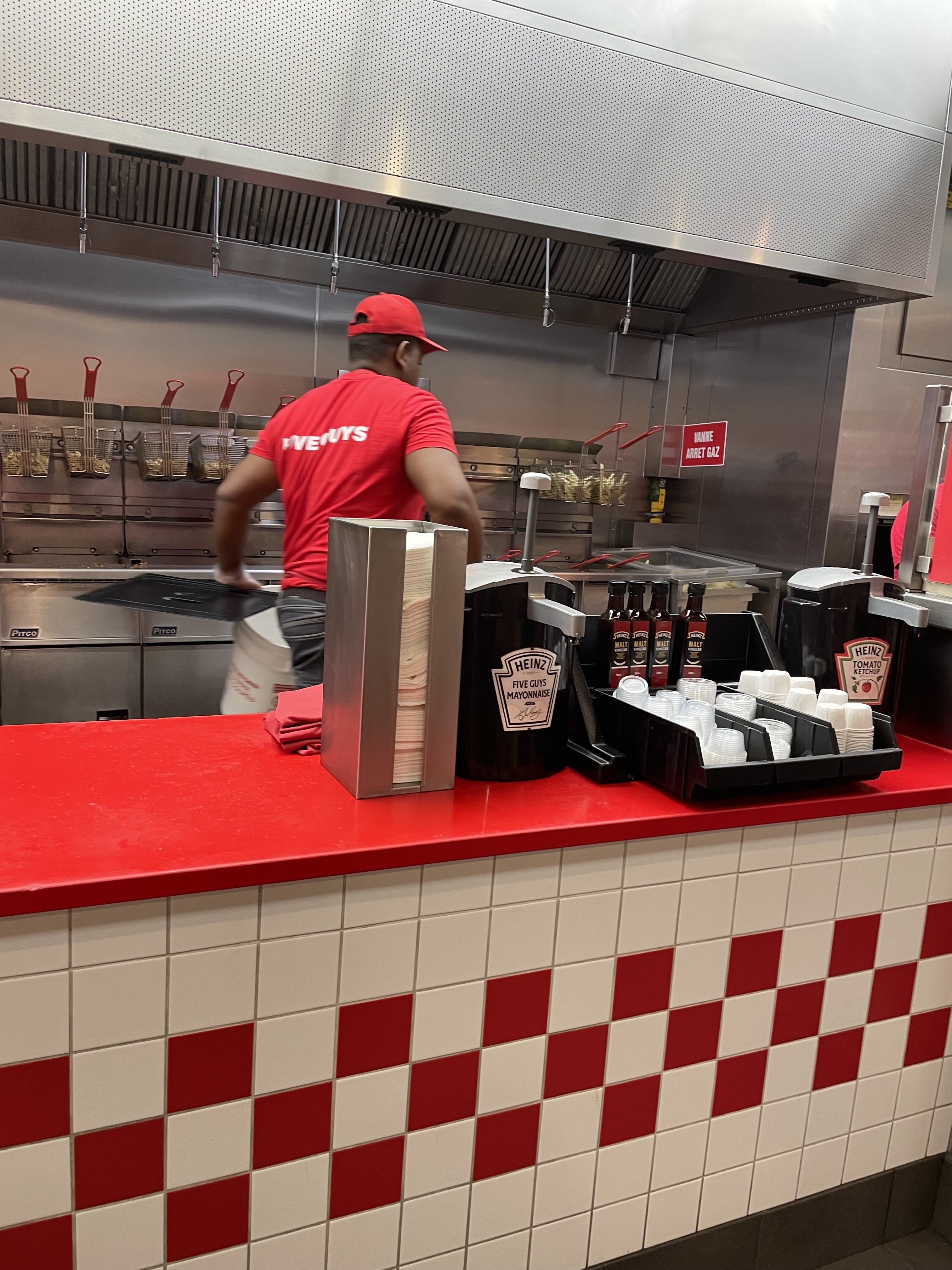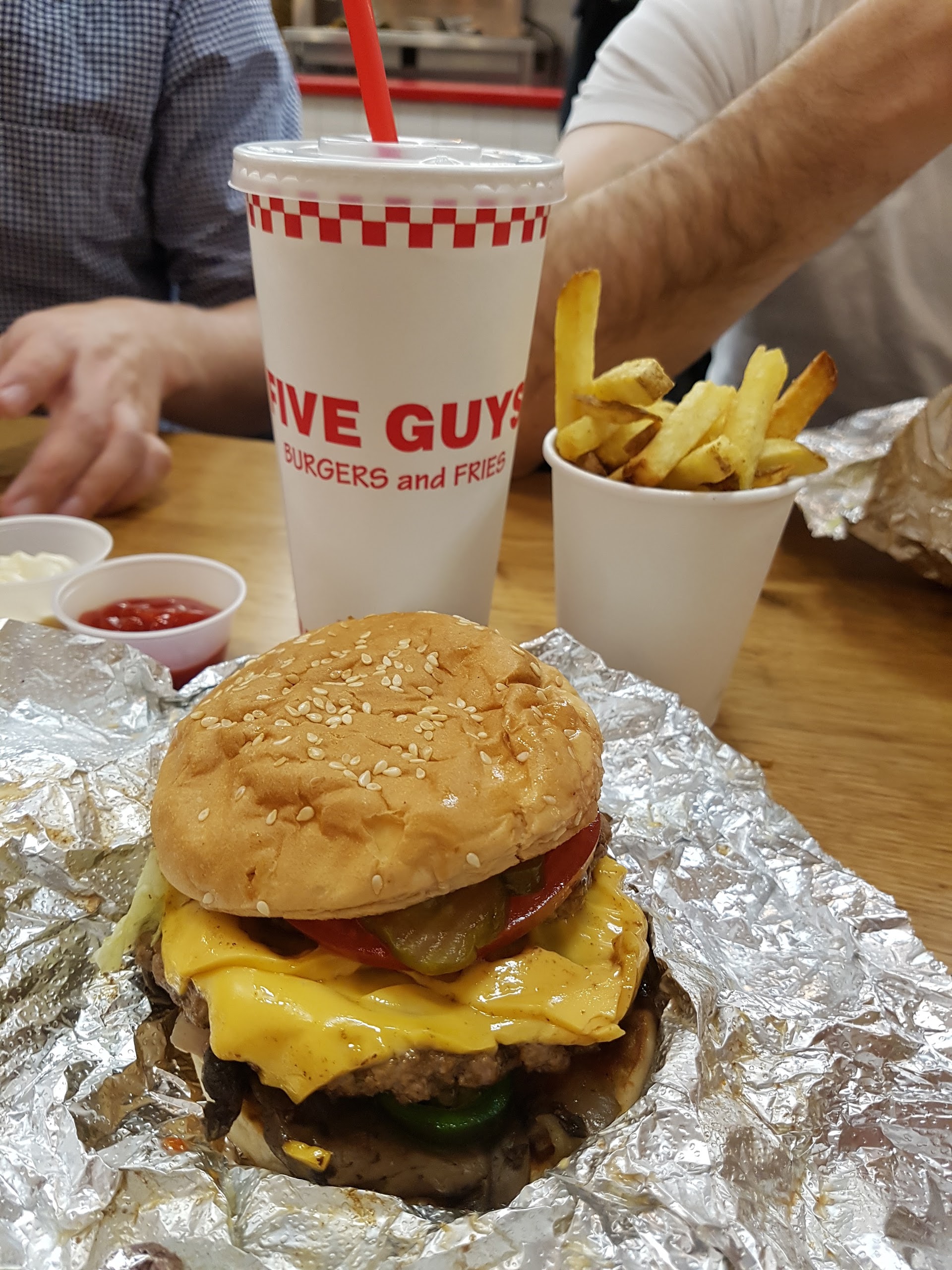 Super ce five guys ! on adore les frites maison et les Burgers préparé sous vos yeux 🍔