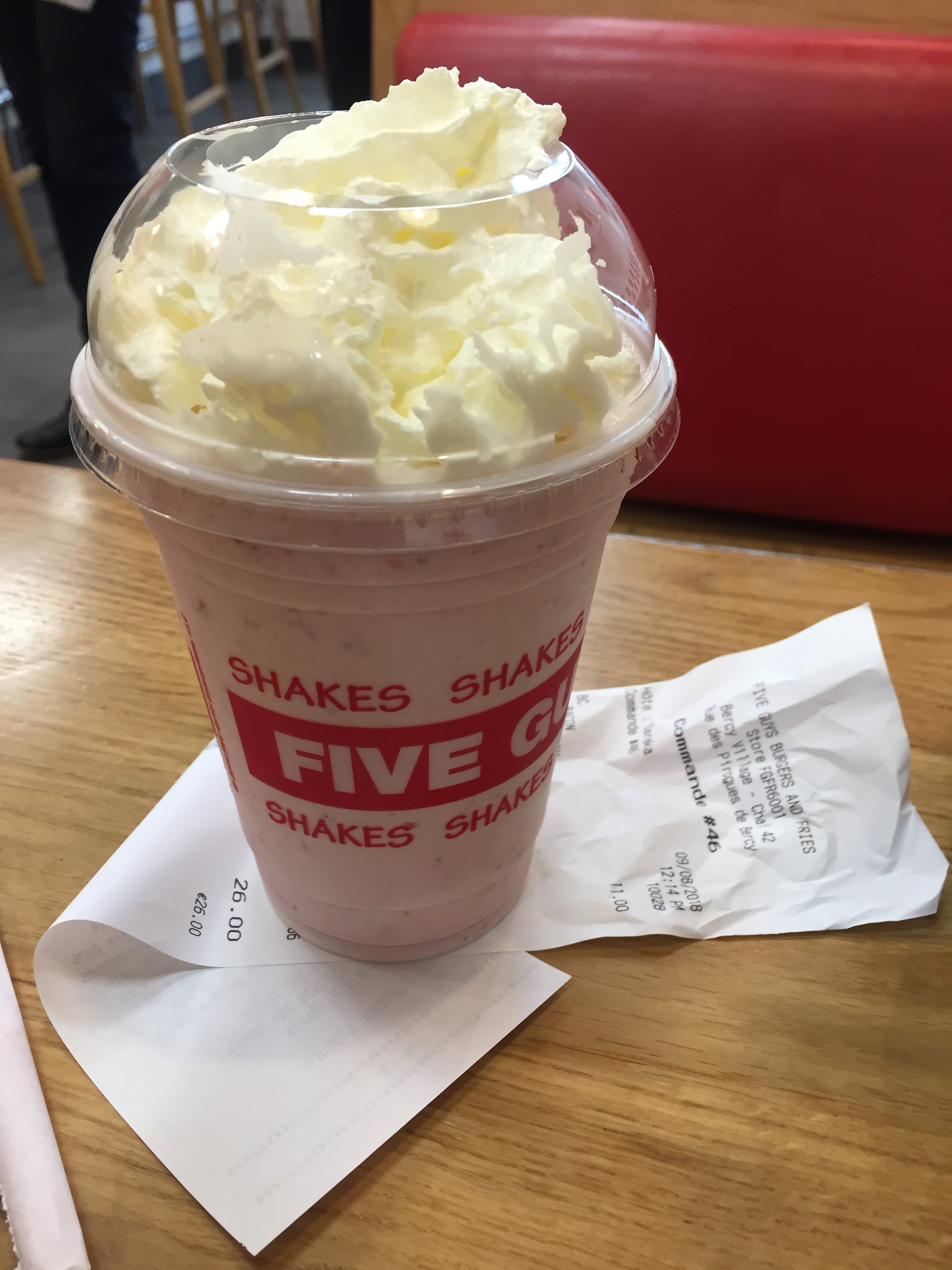 Après avoir entendu parler énormément de 5 Guys, j'ai donc décidé de le tester.. Les frites épicés sont excellentes. La petite portion est largement suffisante pour une personne. Les burgers sont bons. Vous avez le choix de composer les éléments. Mais l'incontournable pour moi reste leurs Milkshakes.... A vous de le tenter maintenant et dites moi en commentaire ce que vous en avez pensé 😉