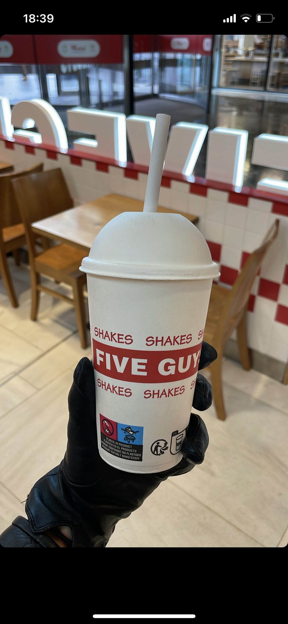 Notre première visite chez Five Guys a été un vrai régal ! Nous avons opté pour les milkshakes oreo caramel au beurre salé, et ils étaient absolument délicieux. La serveuse était très attentionnée, elle nous a même demandé si tout était à notre convenance. C’était une expérience culinaire très satisfaisante et le service attentionné a vraiment ajouté à notre appréciation du lieu. Nous avons hâte d’y retourner pour découvrir plus de leurs délices ! Recommandé sans hésitation.