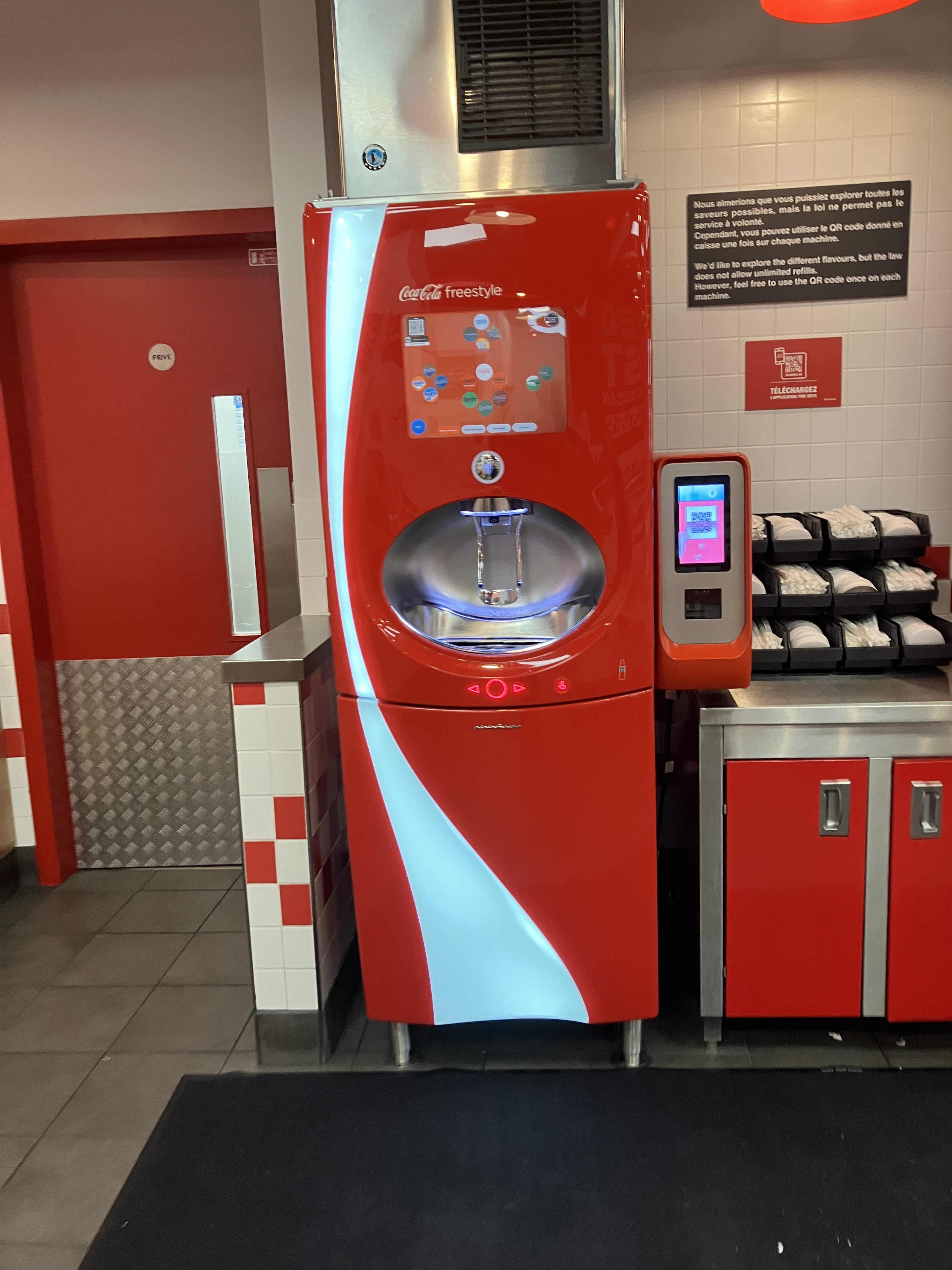 Une découverte sympathique Avec son hambuger ou hot dog on peut ajouter des ingrédients selon nos envies Les boissons sans bulles avec du choix. Boissons avec bulles avec du choix. Il y en pour tous les goûts Les frites sont faites sur places on y voit des paquets de pompes de terres vers les distributeurs de sauces. Au moment de passer la commande L'équipier vous renseigne super bien. Les autres équipiers qui sont en cuisine, ils sont à font , très organisés L'attente n' est pas longue, on les voit préparer devant nous les commandes , Les tables ne sont pas nettoyées. Quand on s'installe on nettoye , la/les personnes qui devraient passer un coup de nettoyage sur les tables, ne fait/font pas sont/leur travail Ce n'est pas professionnel et les clients ne sont pas respectueux Nous on nettoye toujours notre table par respect pour le prochain client et l'equipier ( l'employé) Les frites sont hyper salé , on aurait dit que je mangeai du sel aux frites. Ce serait bien de réduire le sel ou de ne pas en mettre et laisser les clients se servir en sel. Il y a des personnes qui ne peuvent pas manger salé. La portion de frite est généreuse La texture du pain hamburgers et hot dog pas top. C'est bien dommage. Ça se casse c'est mou , résultat quand on mange une partie tombe et on en met partout. Le distributeur à boisson il est est genial. Au debut on a été perdu, un équipier nous a montrer comment ca fonctionne L'ambiance normale L'espace ou manger manque de place , très peu de place Les toillettes sont propre comparé aux tables c'est rare de trouver des toillettes propres dans les restaurants Tout le personnel équipiers sont accueillants