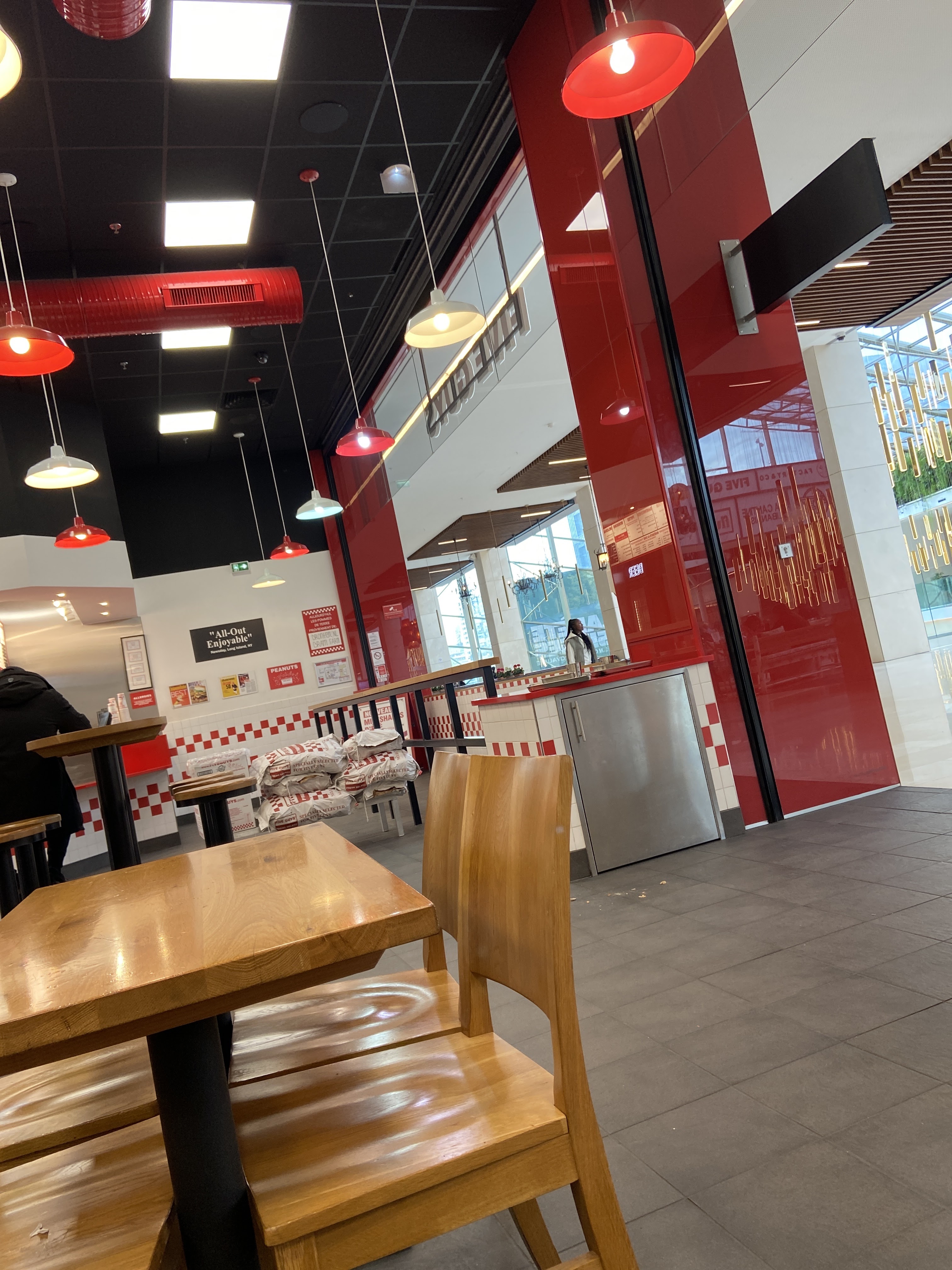 Je suis agréablement surprise de la propreté de ce Five Guys. Sans oublier leur milkshake qui m’a été servis par la souriante Oumoul. Très bon.