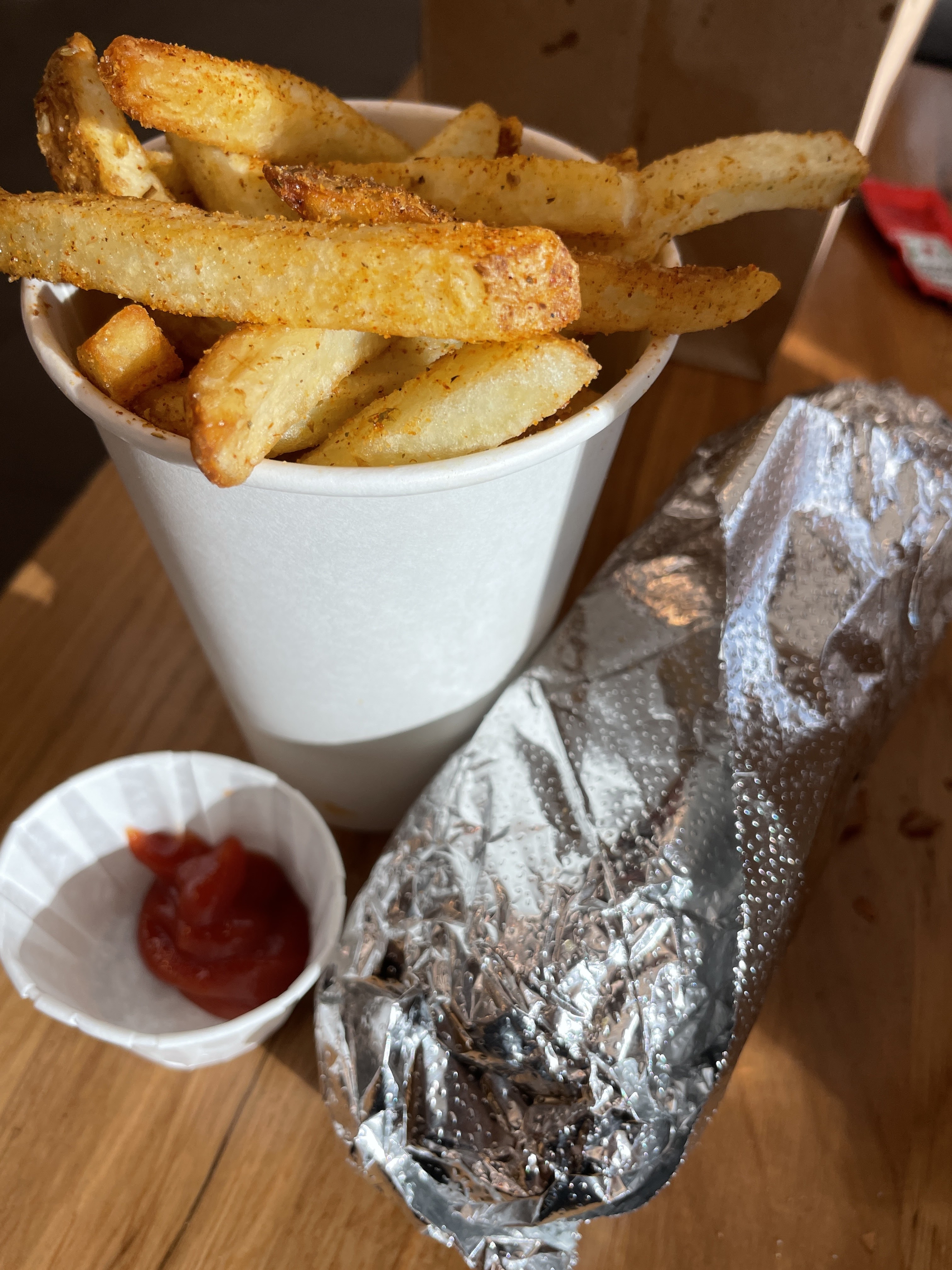 Hot-dog ok cependant frites maison très bonne en grande quantité (la grande peut nourrir 3 personnes). Les frites épicées sont très épicés pour un non habitué. Idéal pour les frites lovers !
