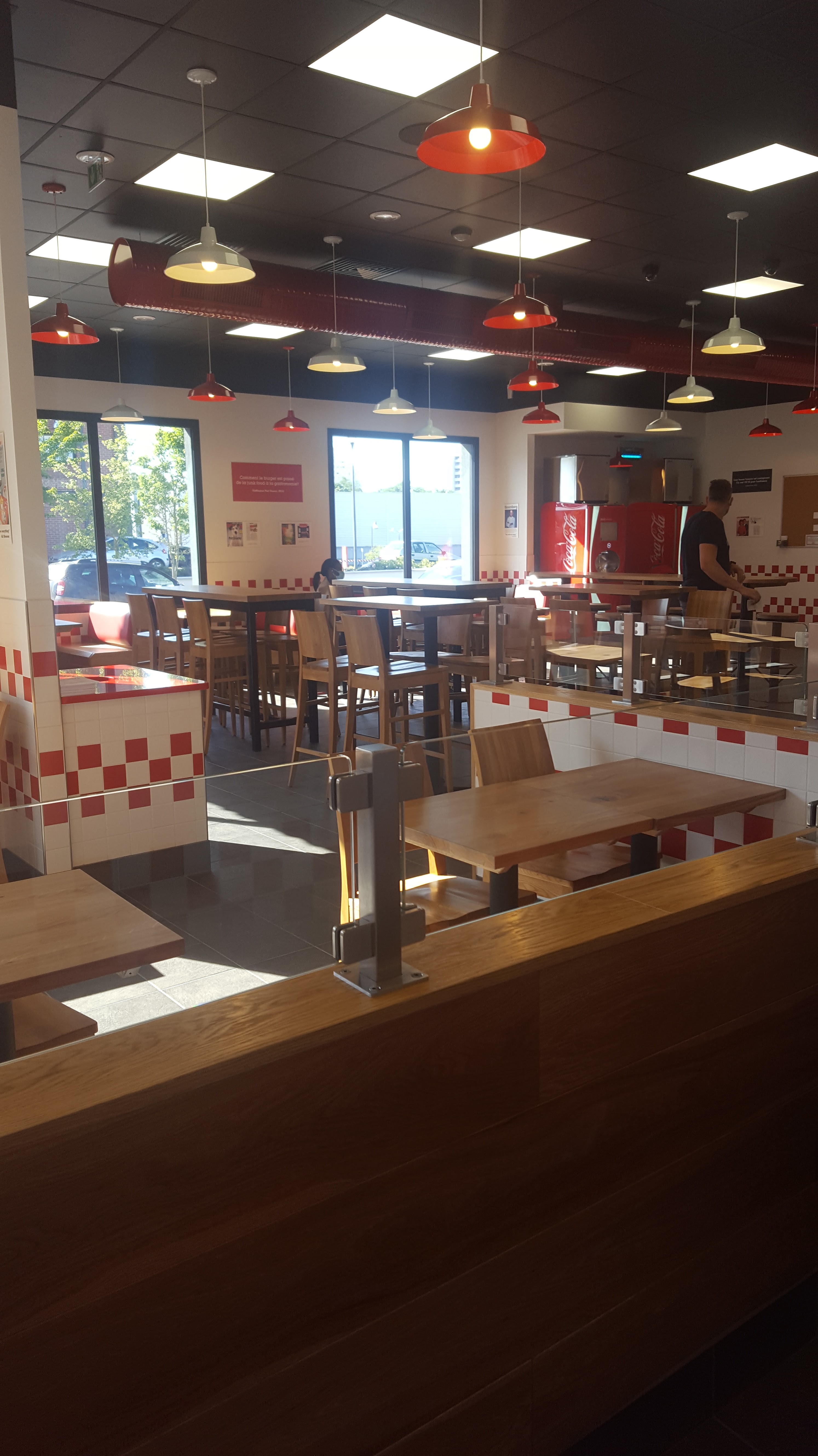 Sa a l'air propre mais les cafard par terre à vomir. Ont a demandé bien cuit, total saignant, et si vous prenez trop de sauce pour les Frites ils font la geule. Vaux mieux un Mac do !!!!