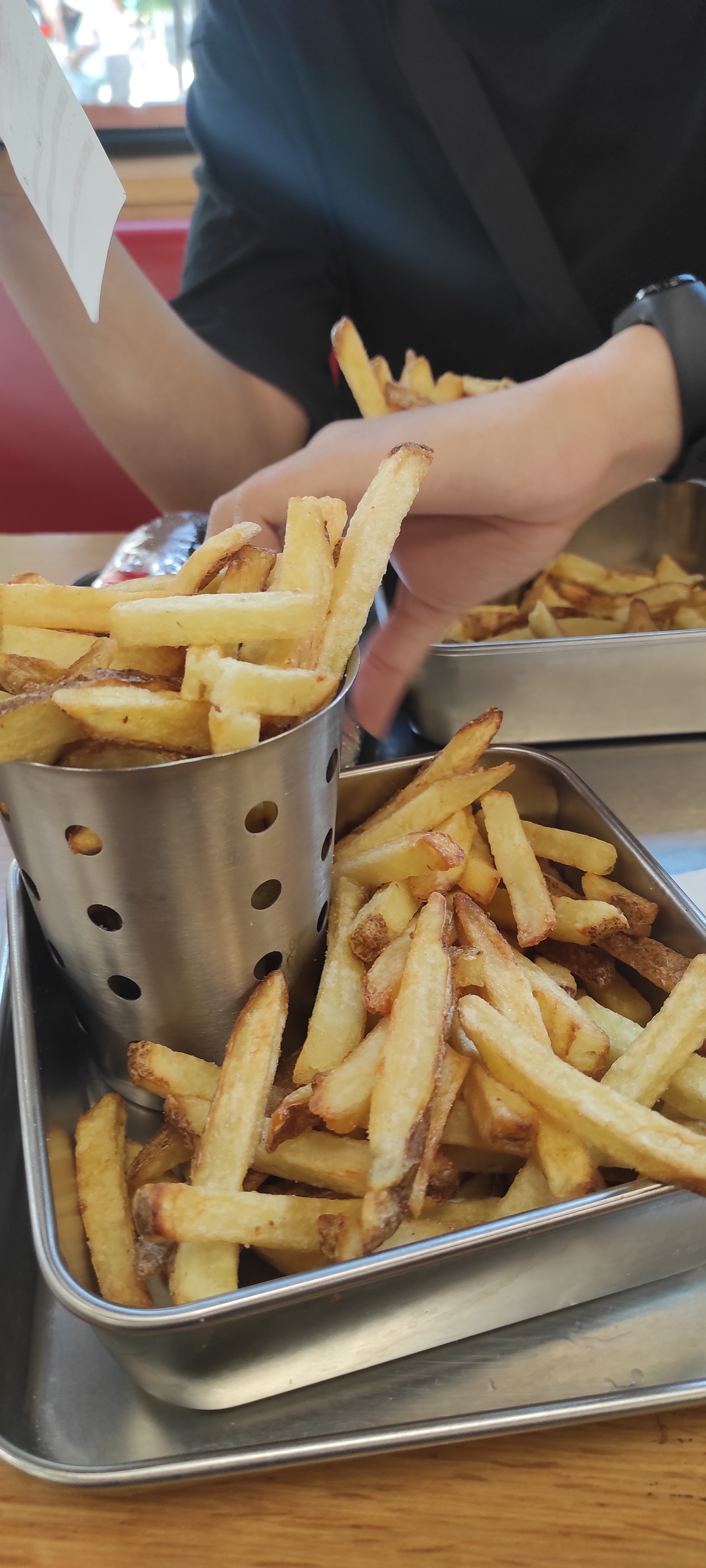 Très bon fast food ca se voit que c’est de la qualité. Nous avons commander une grande frite pour deux notre gobelet de frite était rempli à raboté et il restait encore plein de frites dans le sac (voir photo) je recommande puis le personnel est très gentil !