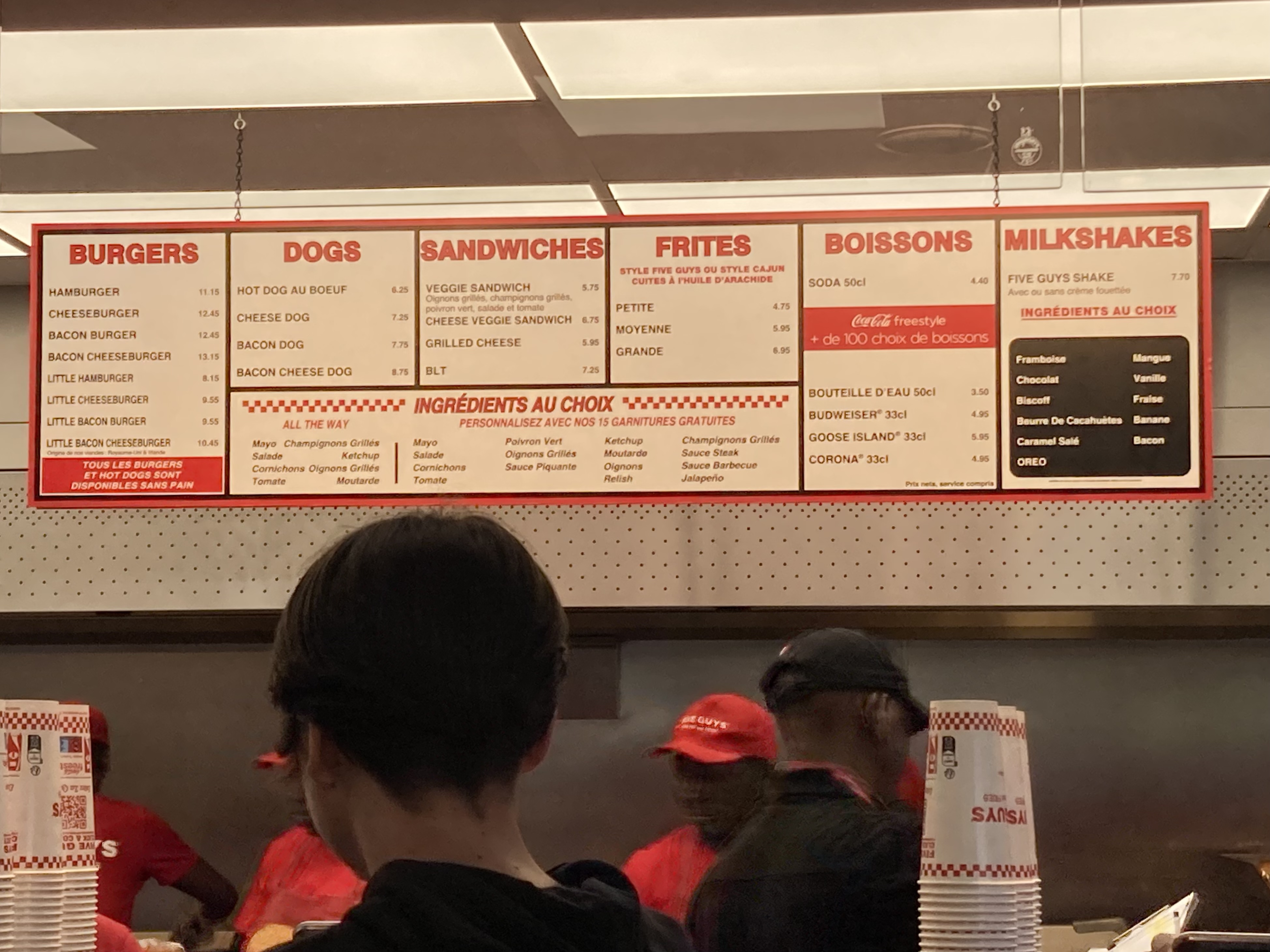 J' ai connu five guys a leur arrivé en France. Ce resto n est plus au niveau. Un vulgaire mac do à 18 € le petit menu