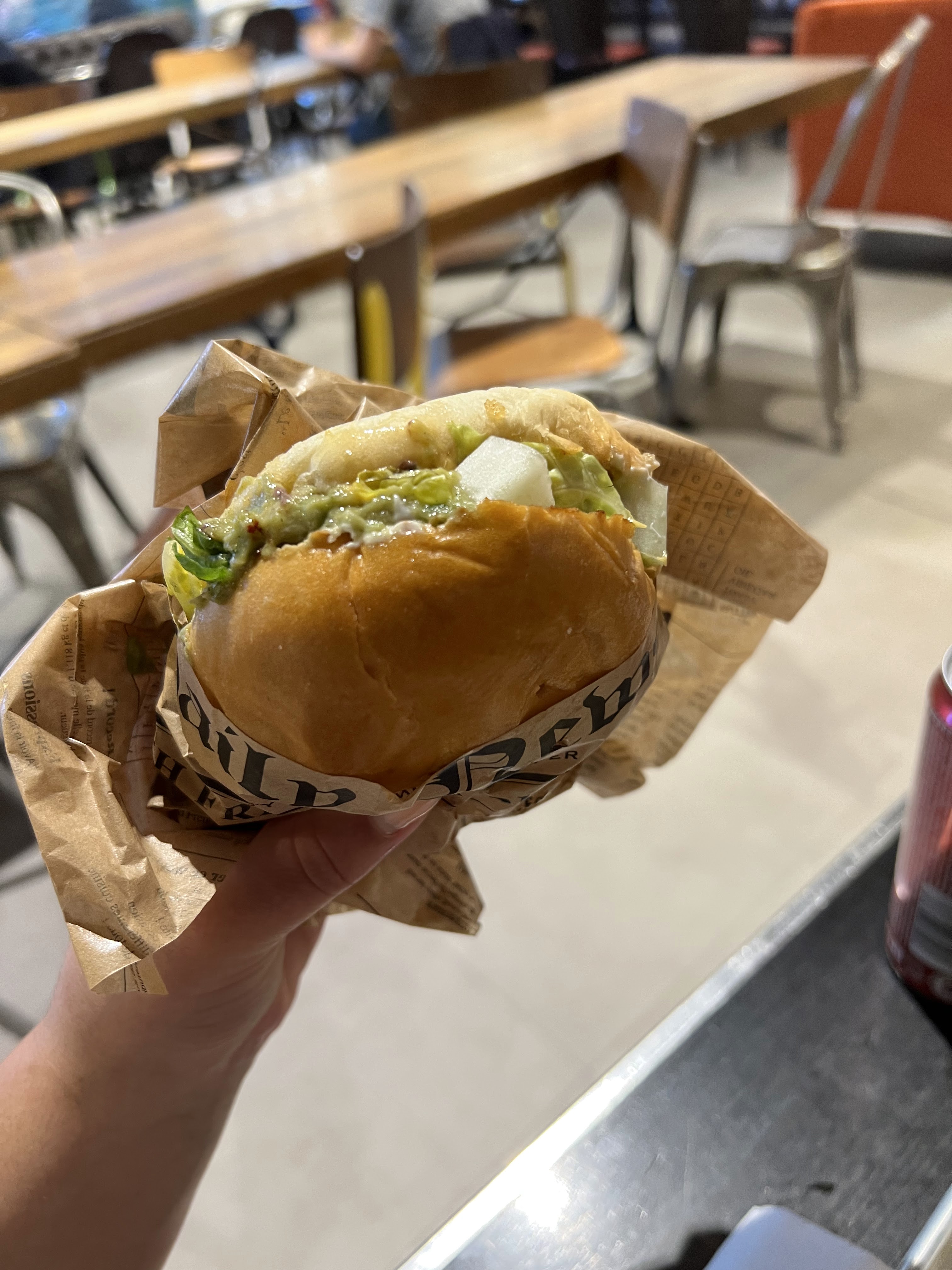 Expérience bizarre : service vente à emporter tenu par de jeunes employés ignorants : ne peuvent pas définir un plat ; ne peuvent pas indiquer si telle ou telle bière est sans alcool ou avec ou IPA. Le cheeseburger est correct, sans être meilleur que ceux de la concurrence. Les frites sont trop copieuses, il y en a beaucoup trop et elles sont jetées en vrac dans le sac ! L'ambiance est abrutissante : hurlements des employés qui s'apostrophent, on n'entend pas que la commande est prête... On s'enfuit !
