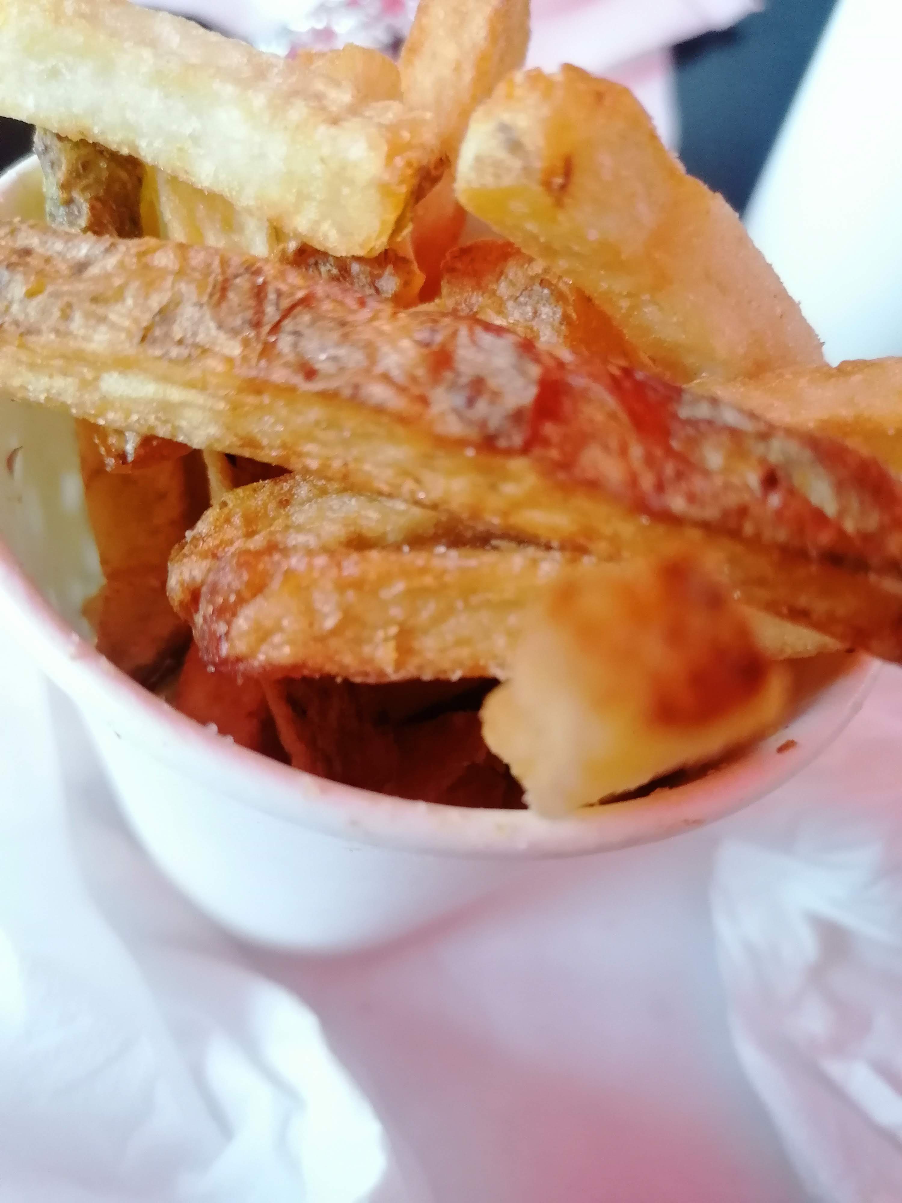Gustativement tout était curieux, les frites servies à même le sac à emporter alors qu'on mangeait sur place c'est un concept que je ne connaissais pas. Je recommande le powerade Framboise, une expérience inoubliable.