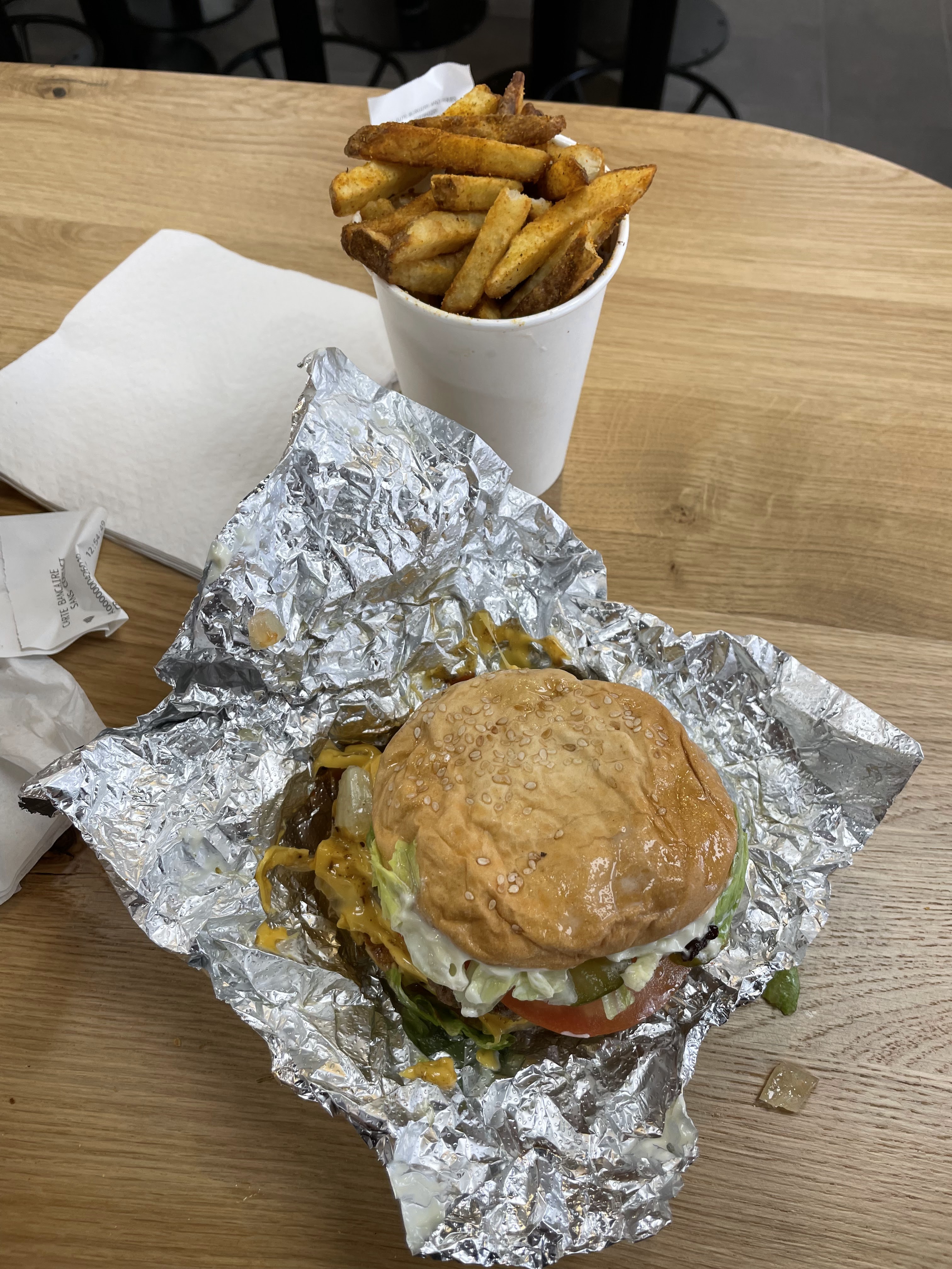 C'est bon, rien a dire ! Les frites sont tout simplement mortelles ! Délicieuses. Le burger, cheese et bacon était bon mais pas assez de sauce. Le milkshake est hors de prix et très radin sur le beurre de cacahuète, vraiment dommage. Personnel sympa, lieu bien stylé. 4 étoiles au lieu de 5 a cause de la sauce qui manque dans le burger, du prix du milkshake et le manque de beurre de cacahuète et le prix final qui est quand même élevé