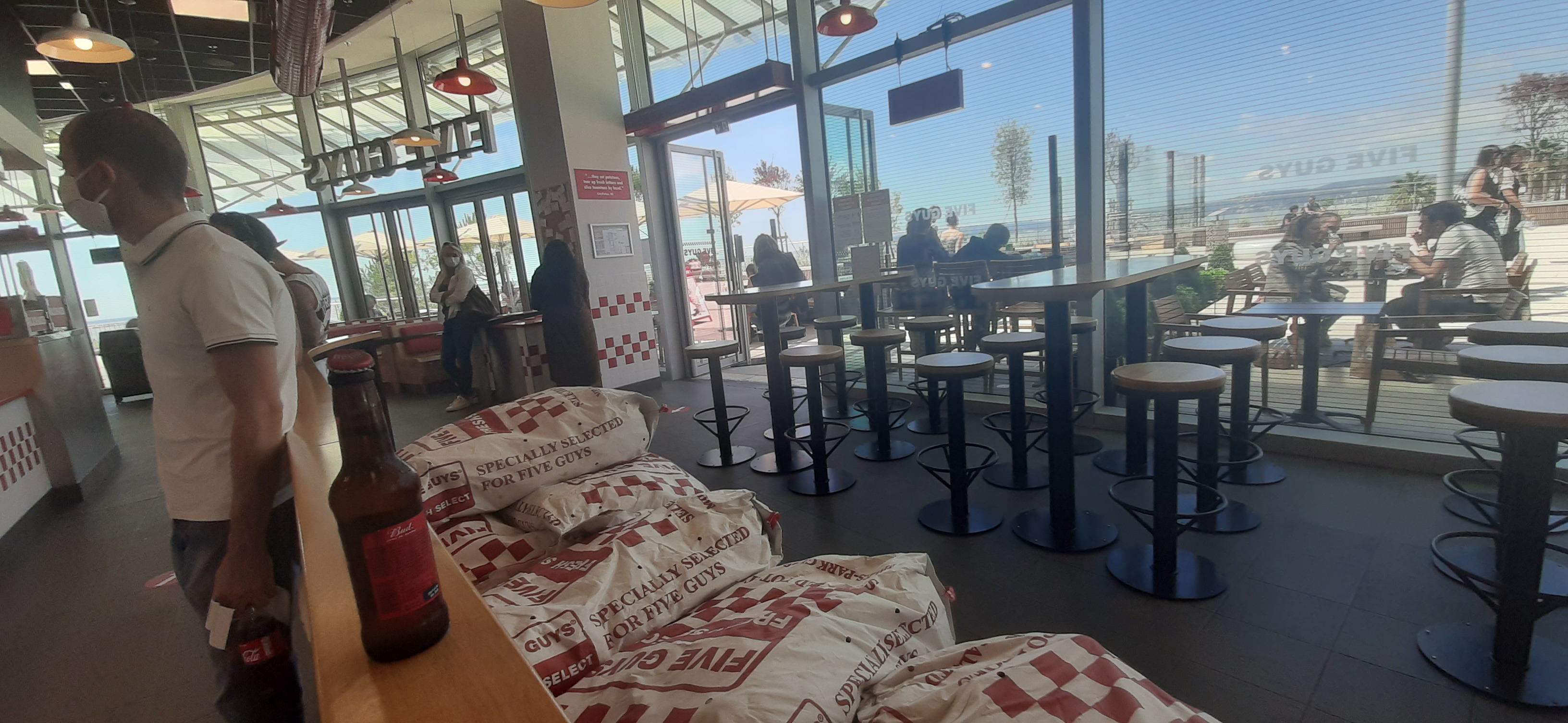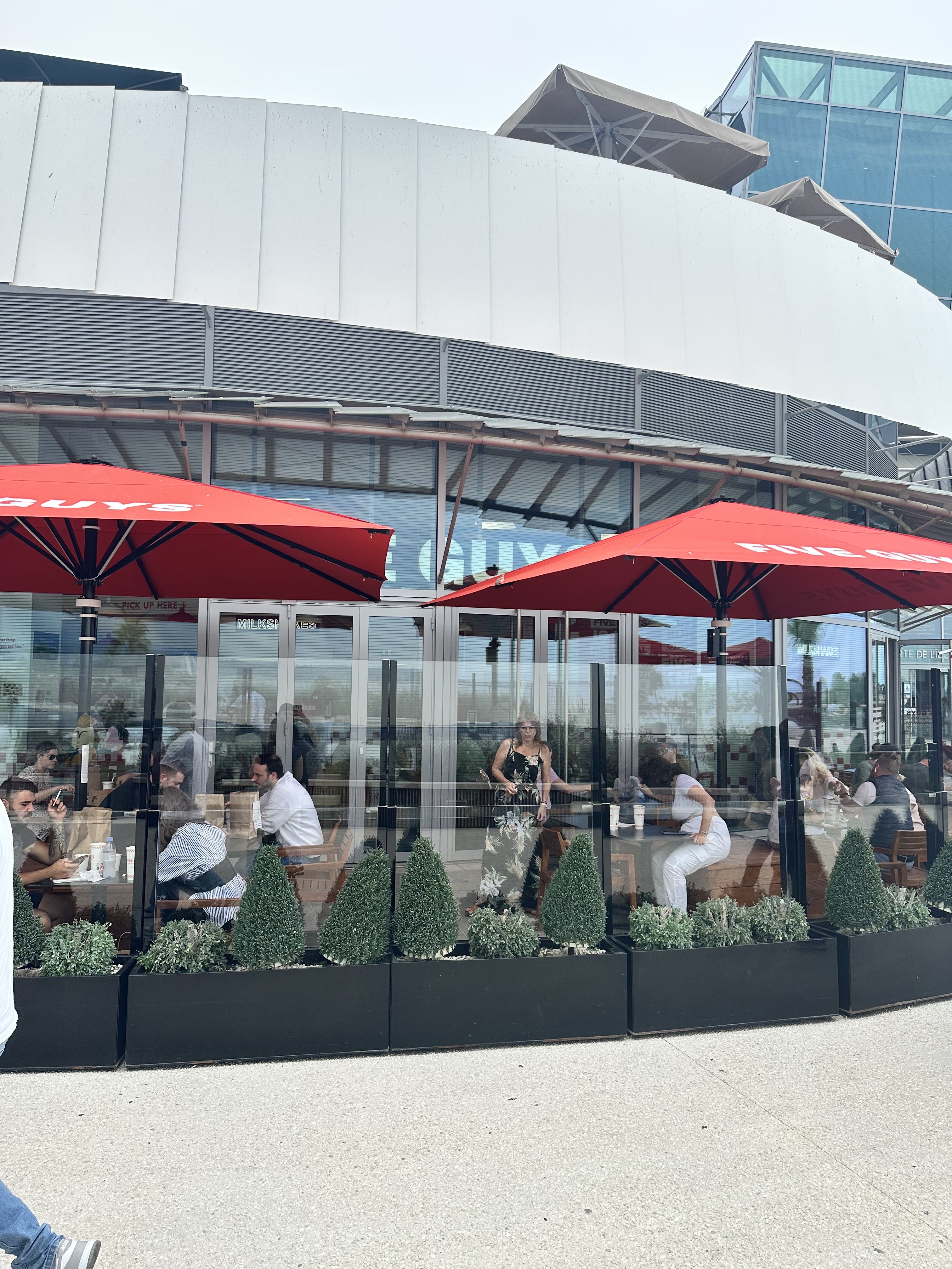 L’un des meilleurs Five Guys que j’ai jamais mangé. L'endroit est propre, le personnel sympa et souriant et les burgers parfaitement juteux et bien cuisinés. Leurs frites sont aussi les meilleures, dans le secteur de la restauration rapide, ne déçoivent jamais, c'est juste qu'elles sont trop grosses pour mes capacités. Et la vue depuis la terrasse est imbattable.