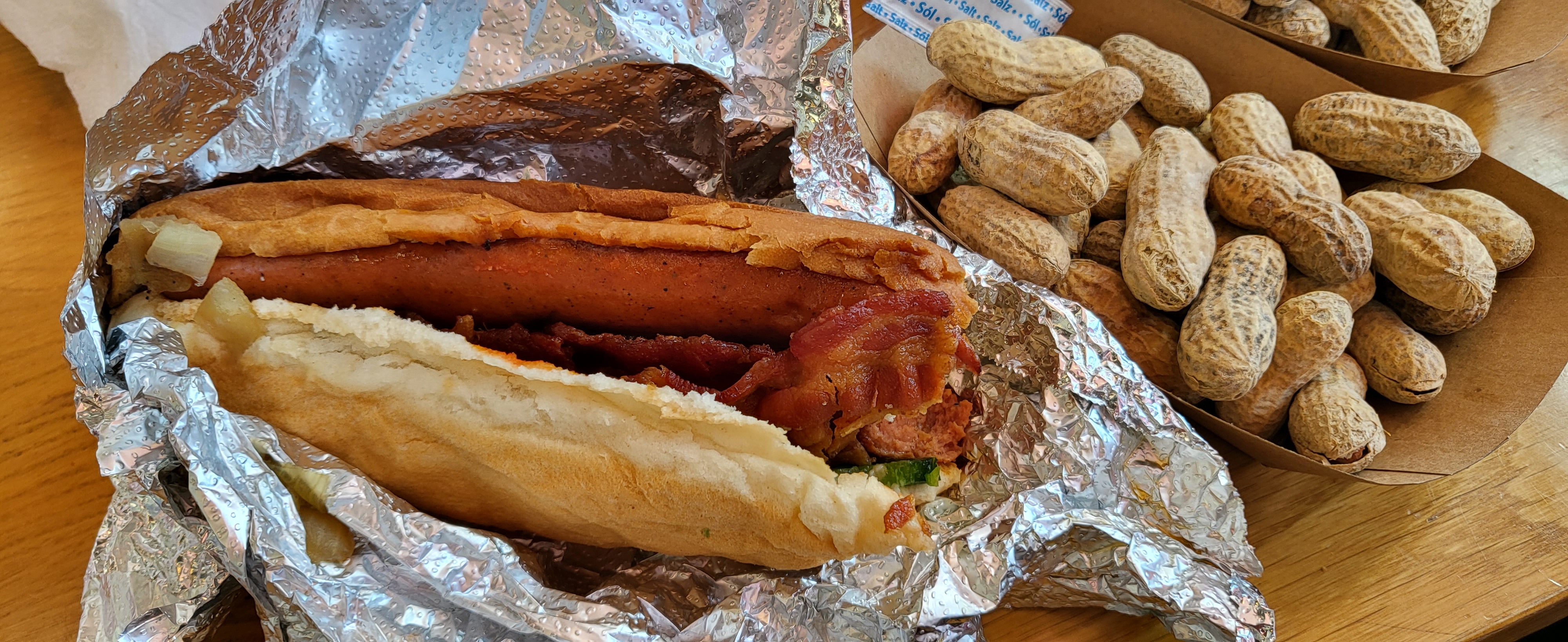❝ Chaîne de fast-food avec hamburgers, frites et hot-dogs préparés sur commande (avec cacahuètes gratuites pour patienter). ❞