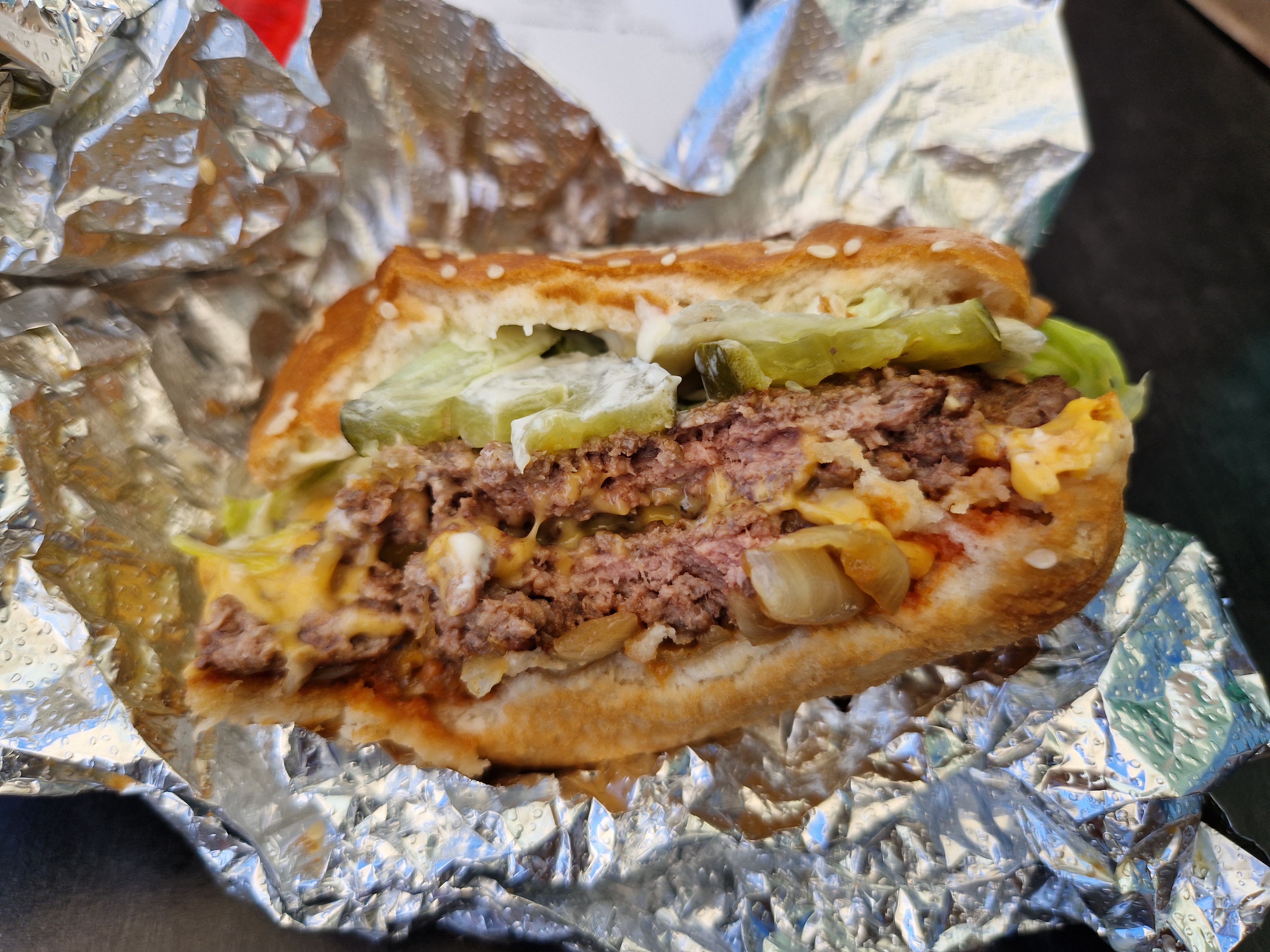 On m a dit a plusieurs reprises... Five Guys c est trop bon. J ai pris, j ai essayé un little bacon mon conjoint idem. Ce que je peux dire... c est que ce n est pas bon, pas de goût et niveau prix cher. Les frites cajun ça marche. Enfin on n a pas fini nos burger cela manque vraiment de saveur malheureusement. Je n y retournerai pas.