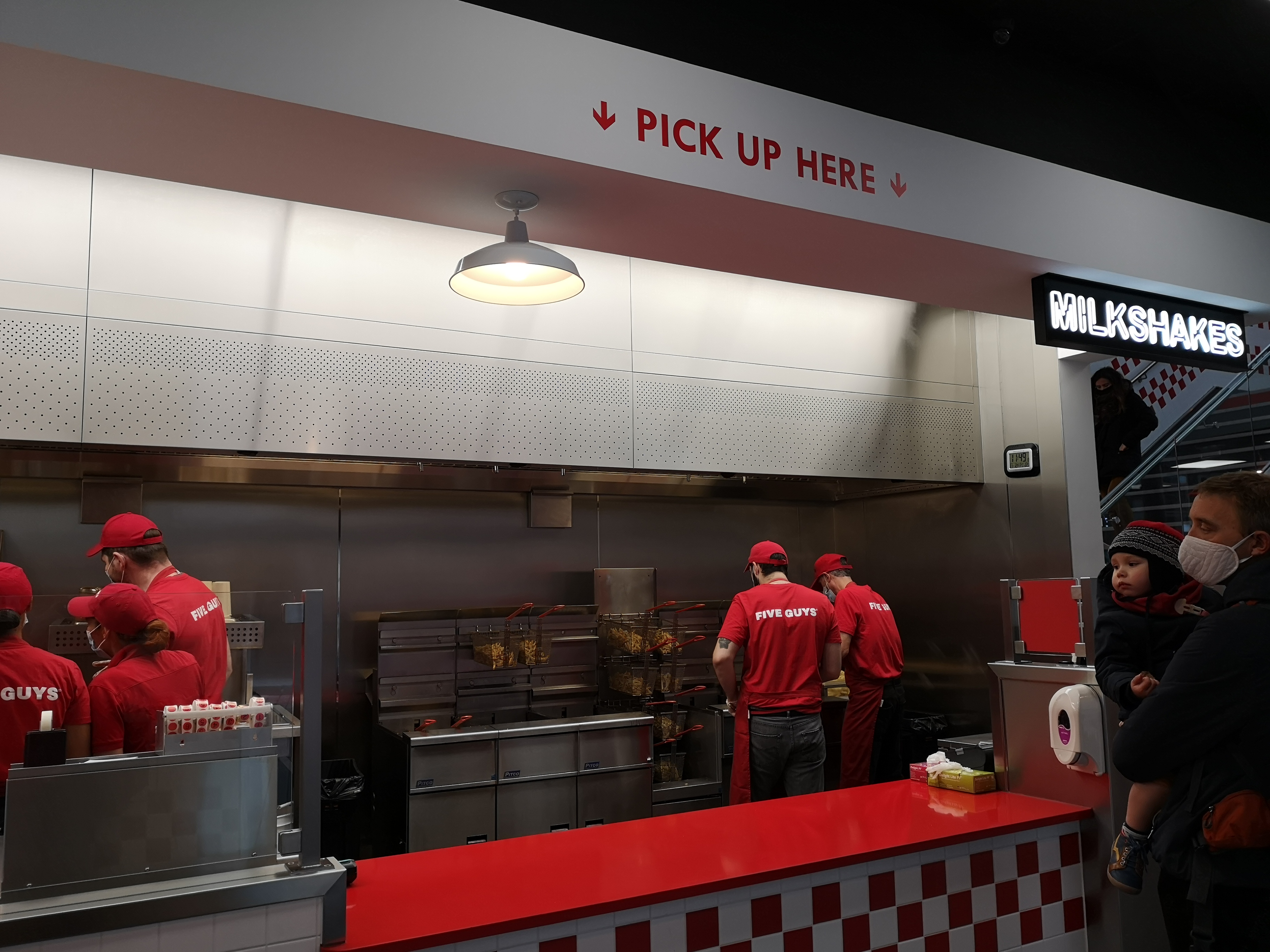 A l’image des autres Five Guys que j’ai pu tester : des burgers totalement personnalisables et des produits frais (la marque est connue pour n’utiliser aucun produit congelé). Cette différence se paie, les tarifs dans cette chaîne sont plus élevés que chez les concurrents, pas de menus proposés donc ça chiffre plus que chez le voisin de l’autre côté de la rue si vous voyez de qui je veux parler... Prévoyez un peu d’attente le temps qu’ils soient un peu mieux organisés vu l’ouverture récente, j’ai attendu 20mn de plus malgré la commande en ligne mais le staff est souriant et aimable, une tournée de frites fraîche et des boissons nous ont été offertes pour patienter. En tout cas les burgers sont très bons, mention spéciale au bacon cheeseburger sauce relish 🤤
