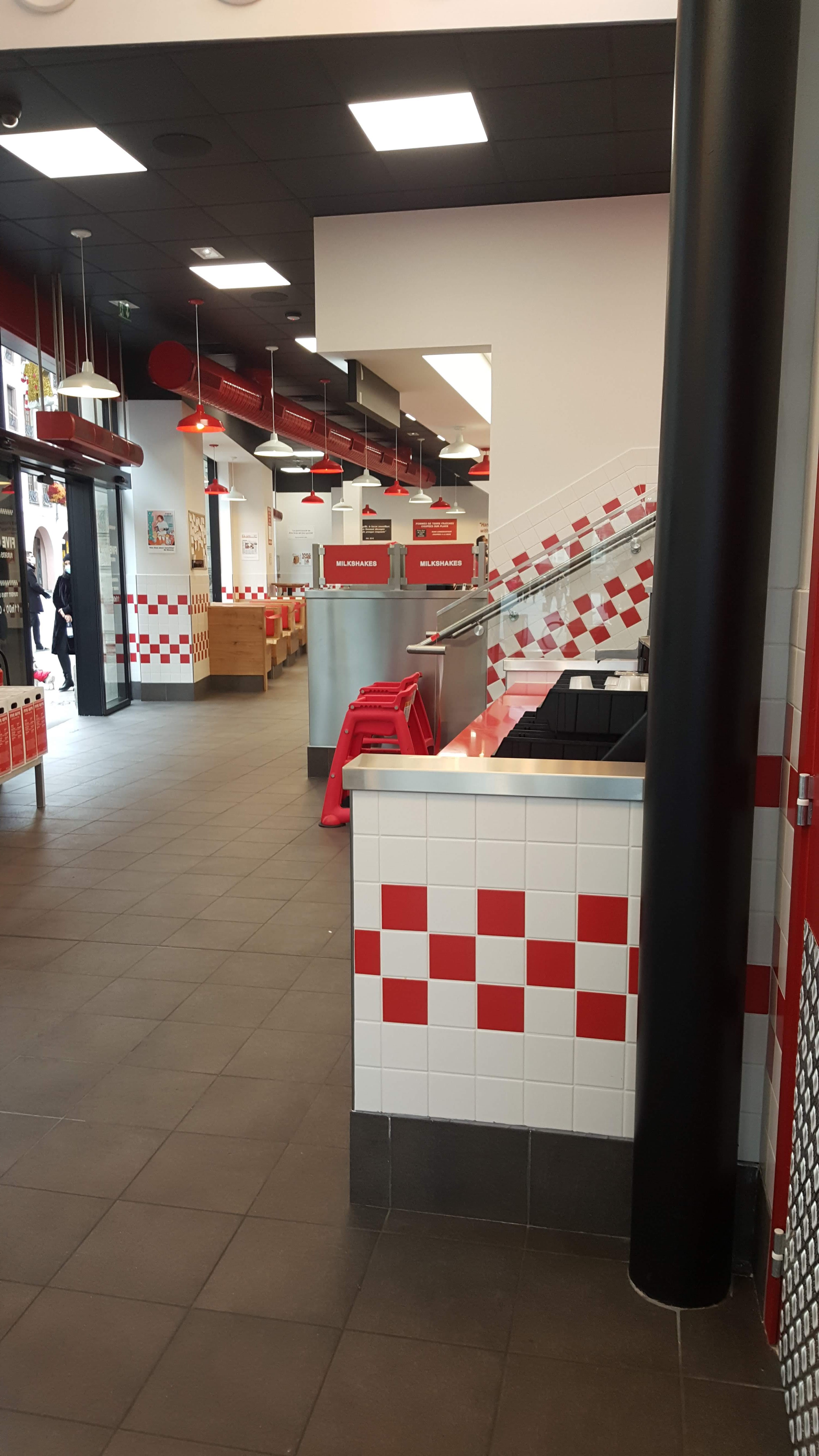Première fois que nous sommes allés pour tester avec mon ado... ben la dernière aussi.. très cher pour ce que l'on mange, servi ds des paquets avec des frites en vrac, les boissons un fanta blanc jamais vu... conclusion à fuir