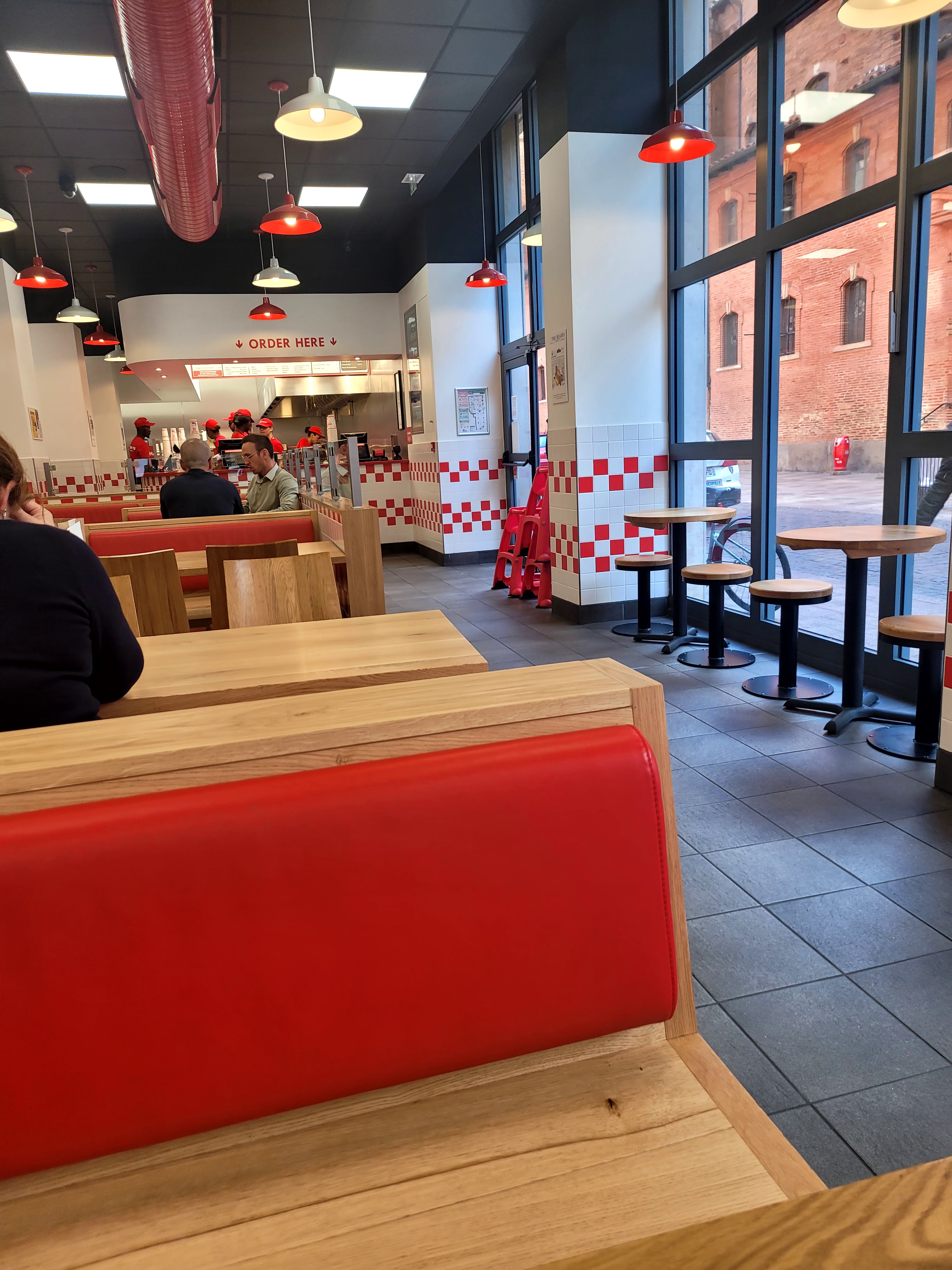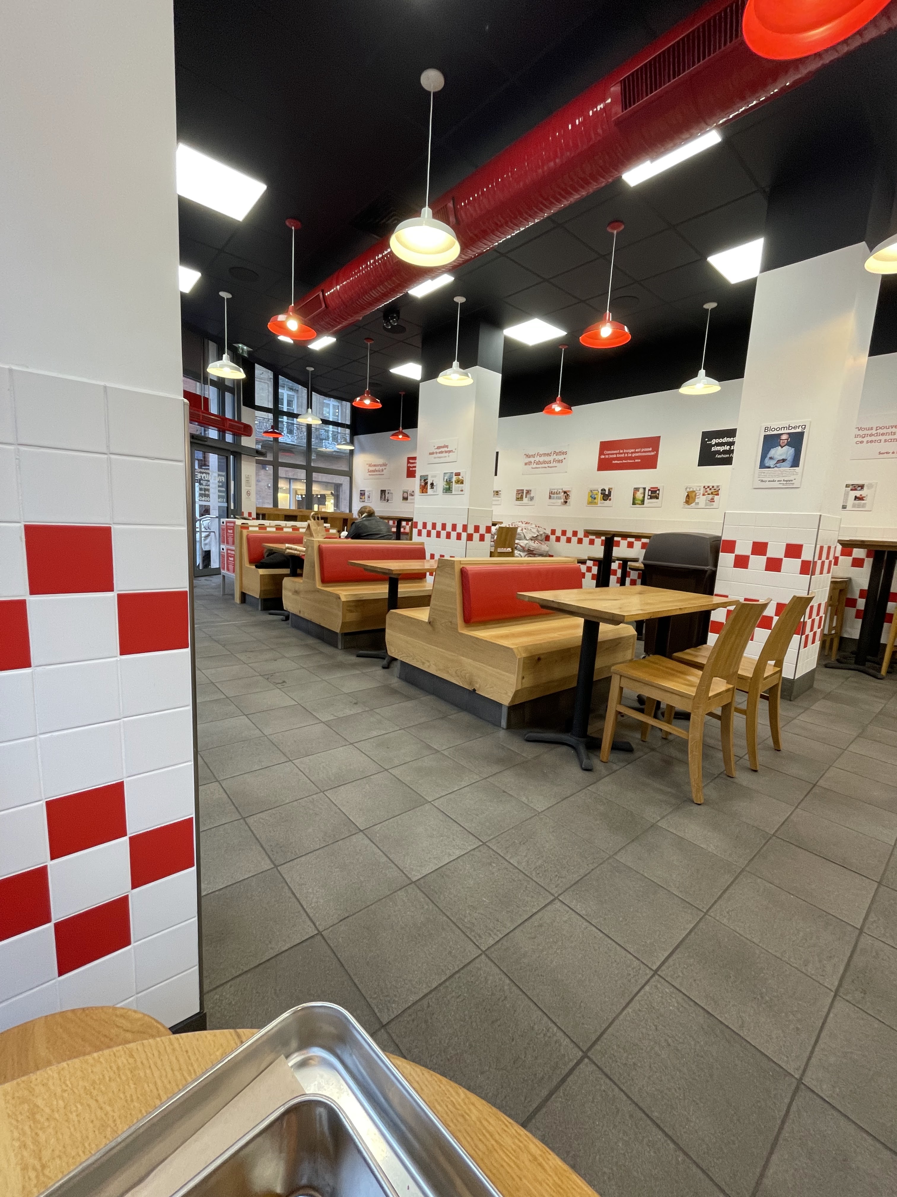 J'adore five guys, et celui-ci en plein centre est génial. Il est assez grand et l'équipe est géniale, ils se donnent vraiment pour faire un service rapide (pas évident vu le monde). Pour ce qui ne connaissent pas le concept de five guys, vous faites votre burger sur mesure. C'est un fast-food mais la qualité est vraiment supérieure à la concurrence. La rapport quantité/prix est aussi imbattable (le contenu de la photo m'a coûté 14€20, sauce gratuite et cacahuètes en bonus). Les managers sont vraiment les meilleurs, hyper sympa, très efficaces. Je vous recommande d'y aller :)
