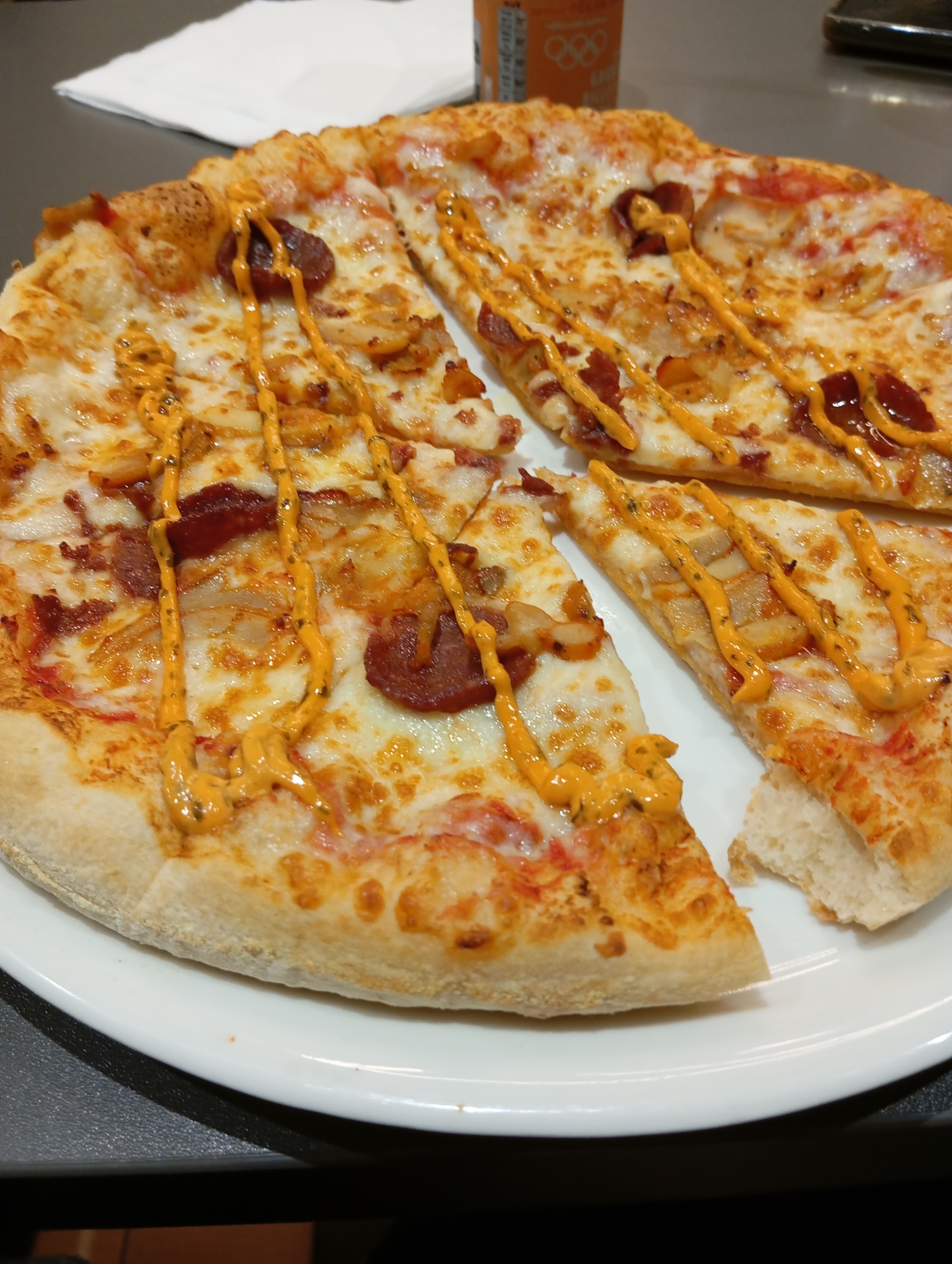 Service très rapide commande facile à la borne et pizzas bon rapport qualité prix
