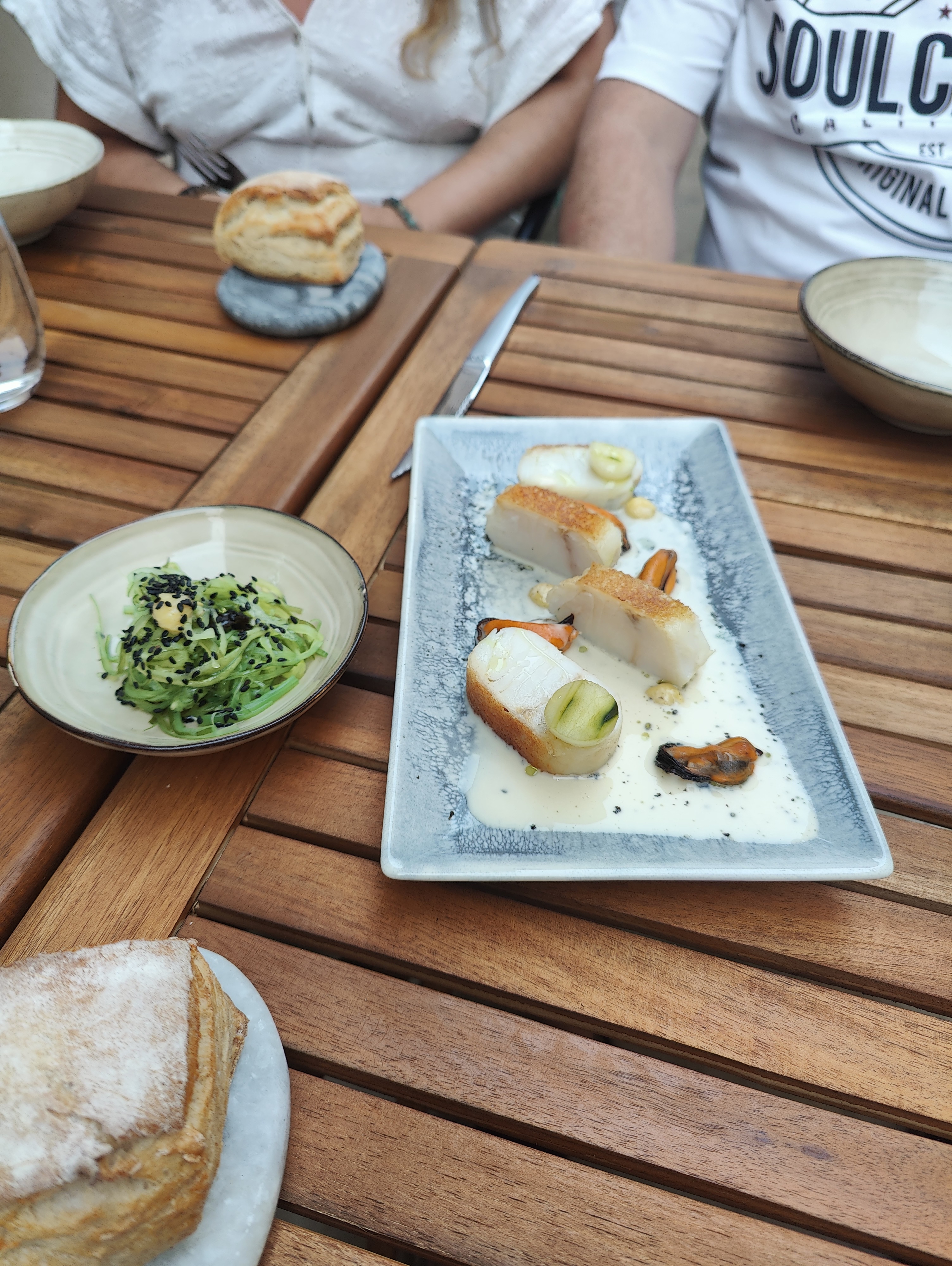 Une petite pépite dans une ruelle près du port Chaque bouchée est savoureuse délicieuse équilibrée les cuissons et les sauces sont maîtrisées preuve d’un grand chef en cuisine Les présentations sont soignées Le service impeccable Hâte d’y retourner pour goûter d’autres plats Amis touristes ne restez pas sur le port allez encourager ces artisans du goût 😉 Petite suggestion: ajoutez un petit tabouret pour les sacs de vos clientes en terrasse 😉 A très bientôt