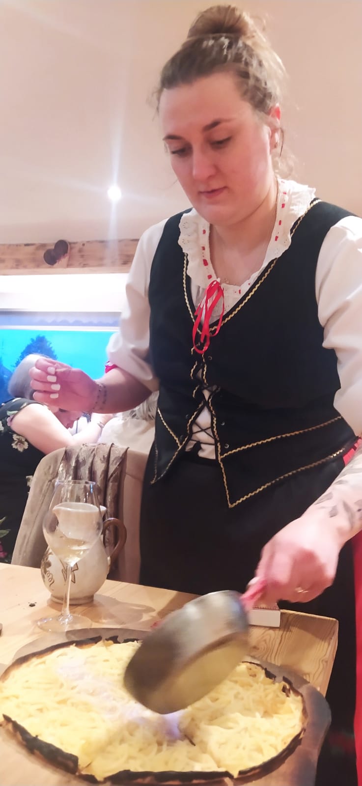 Très bonne flamenkuche patron super sympathique !!! Serveuse en tenue de tradition (je pense fille du patron) et la mamie toute pétillante !!!