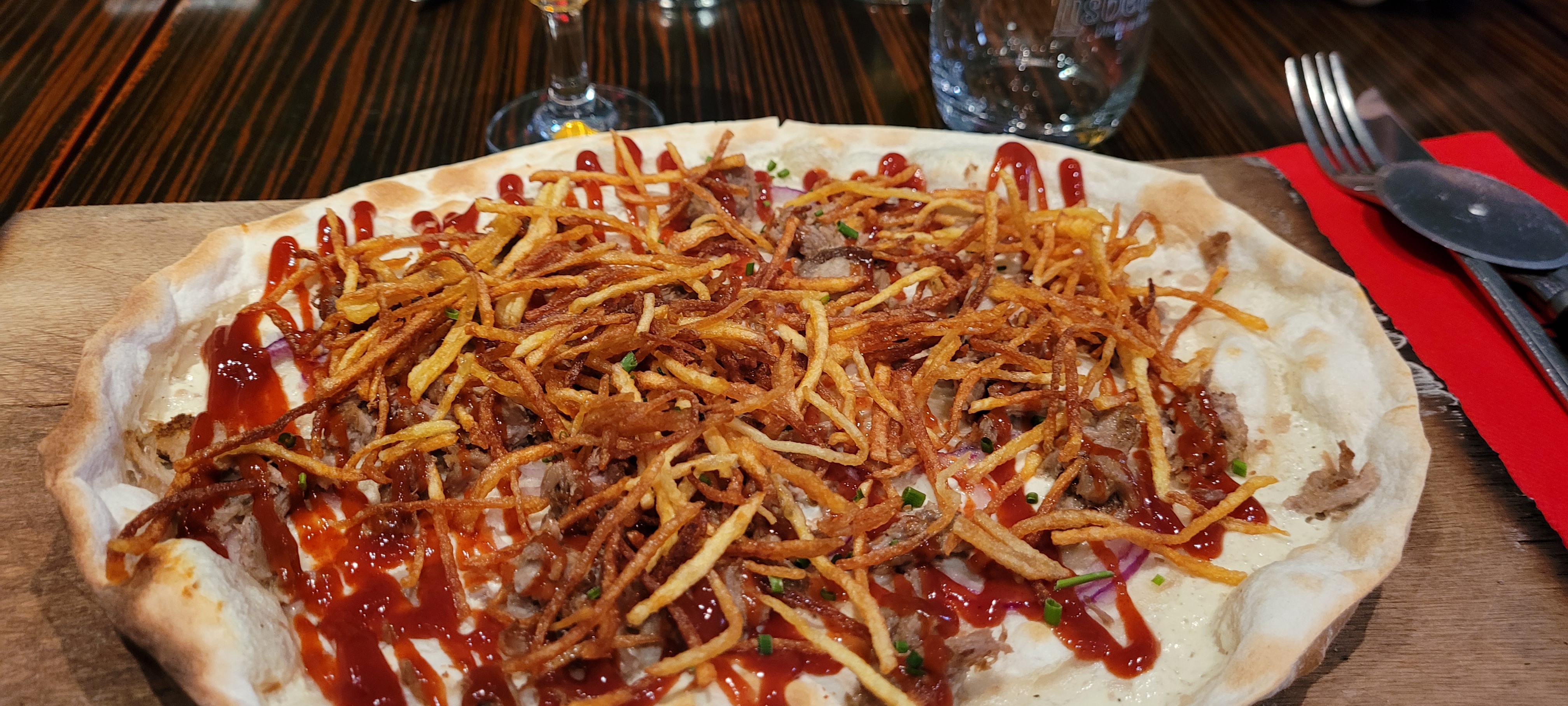 Restaurant super sympa pour manger des tartes flambées originales, faites avec des produits locaux !