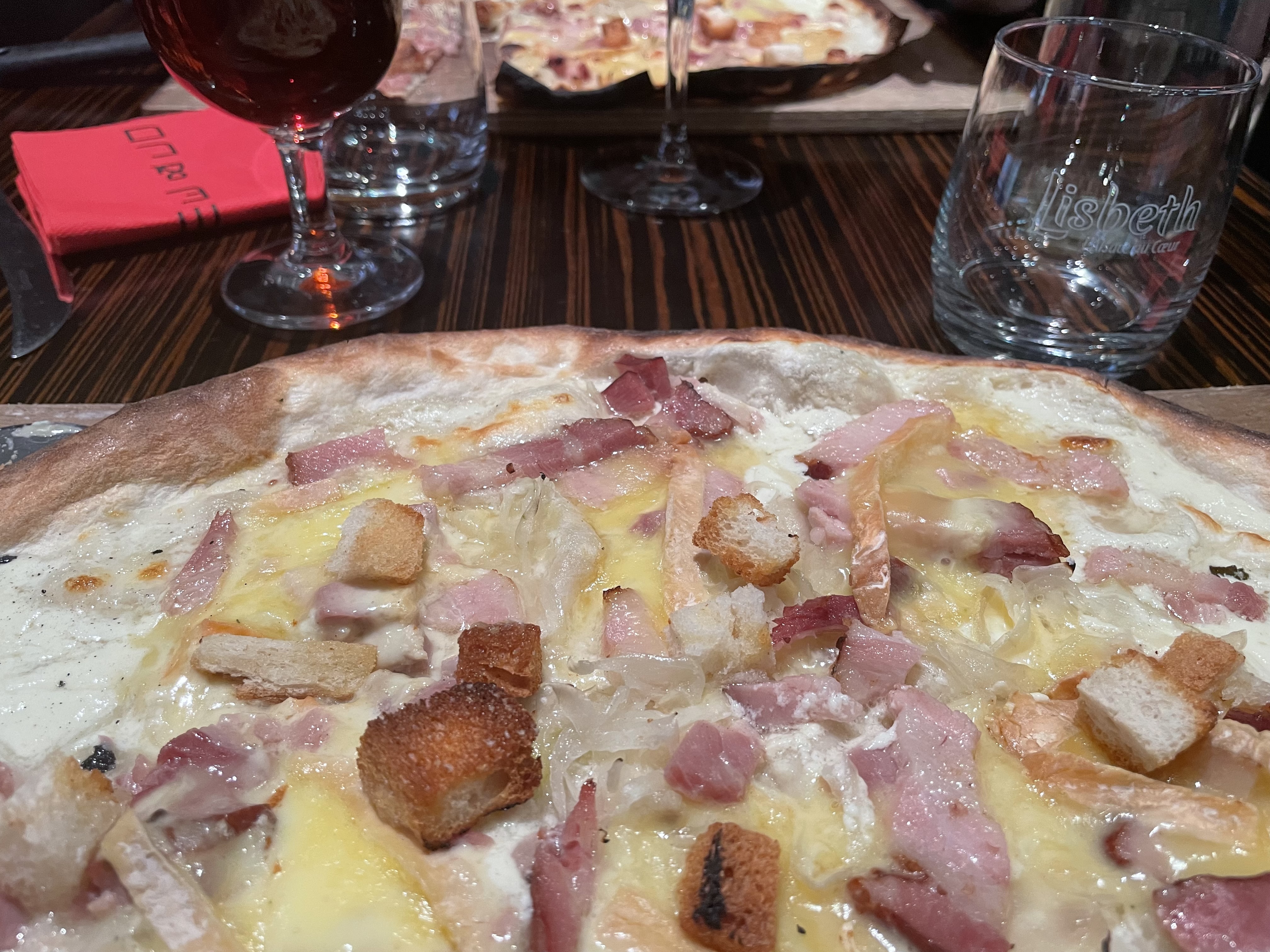 Les tartes flambées sont plutôt bonnes tout comme la bière de Noël. Néanmoins, attention lorsque l’on mentionne végétarienne et qu’il y a une émulsion au lard. Petit conseil : Privilégier la salle du haut si vous ne souhaitez pas sentir la flamme’ en sortant.