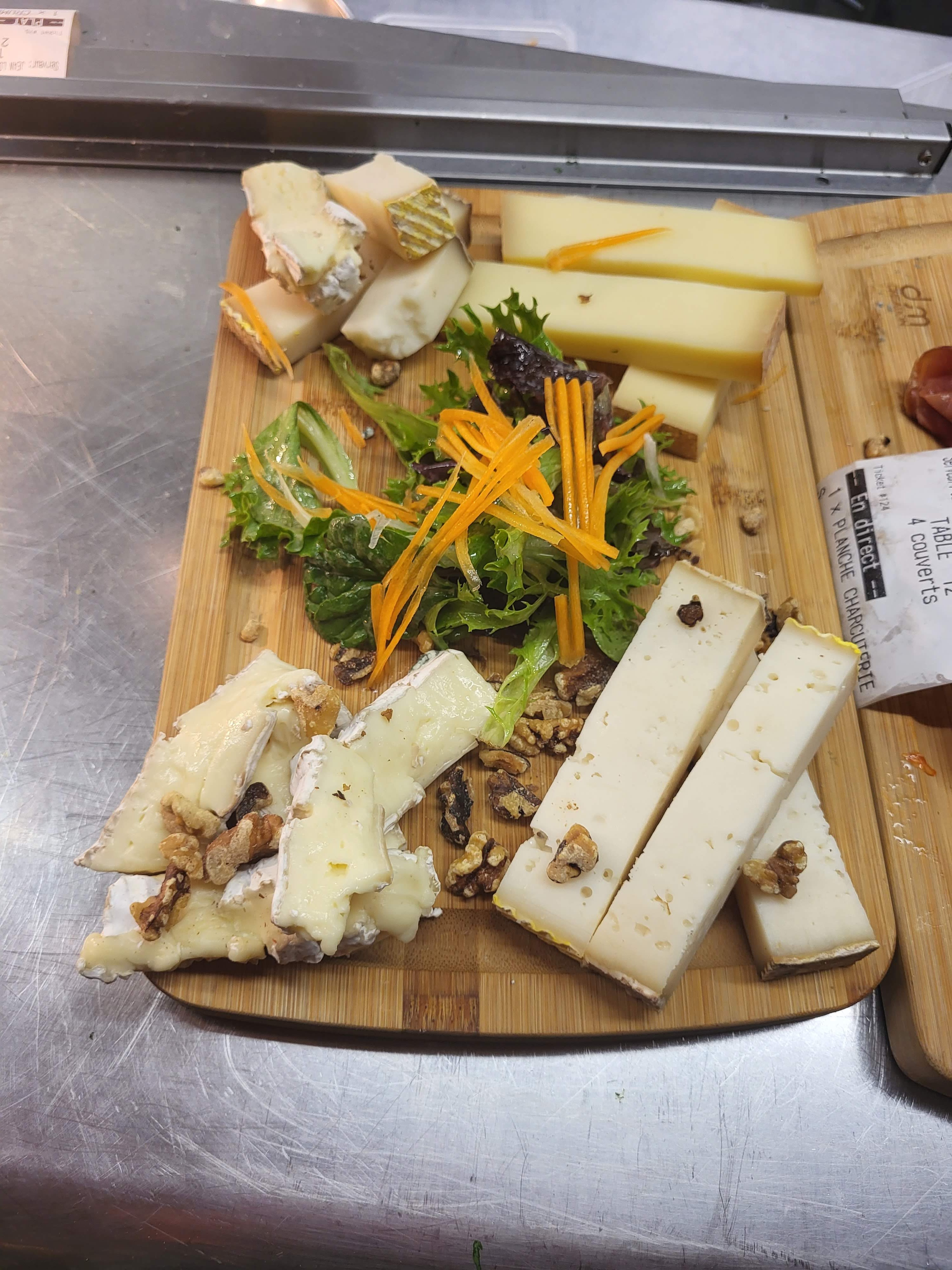 Cadre sympa, planche charcuterie-fromages copieuse et savoureuse.