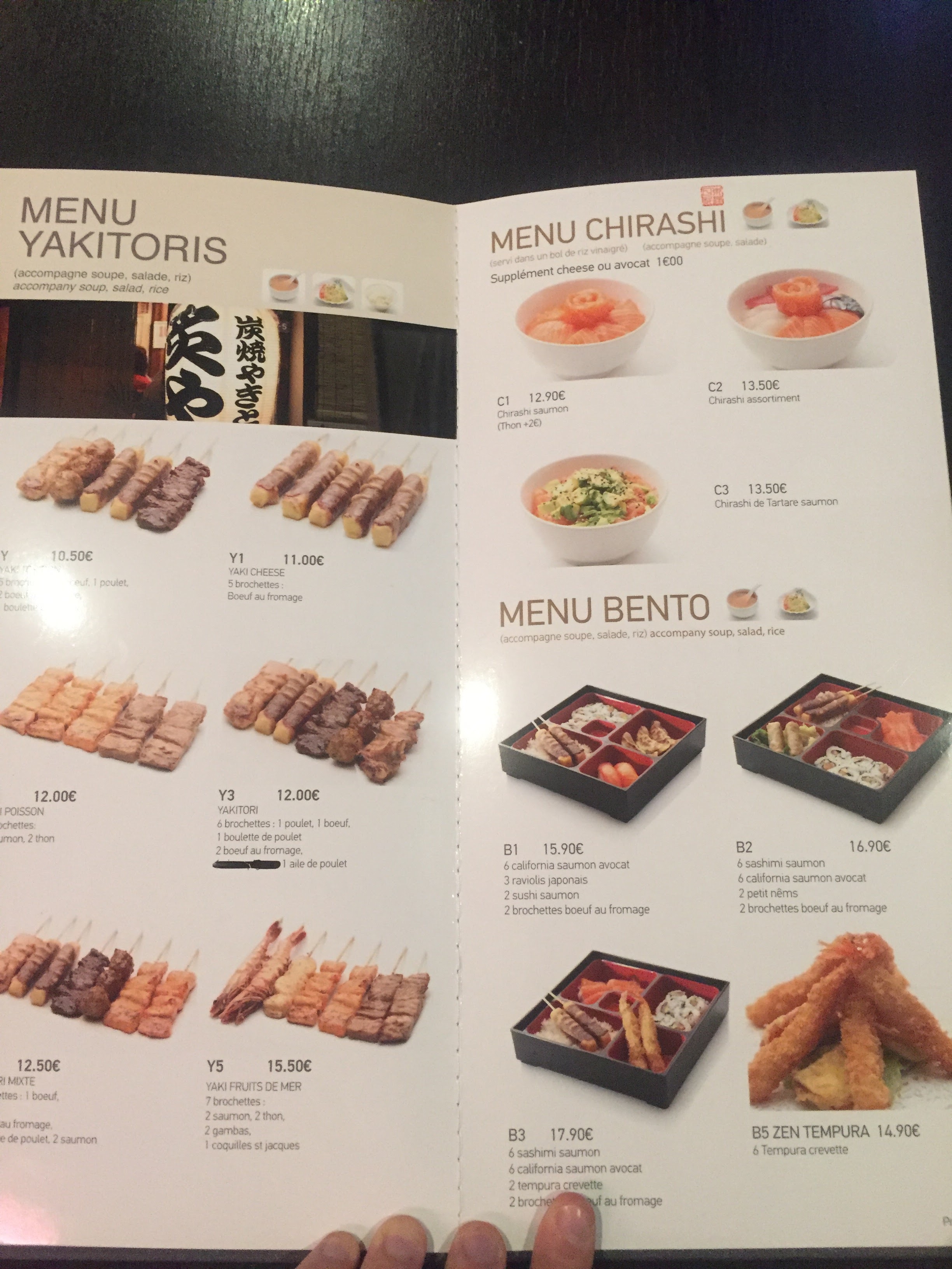 Mis a part les brochettes viande/fromage (trop de fromage et donc ecoeurant) tout etait tres bon. Salade, soupe, sushis, sashimis, makis... Un delice. Très bon cadre egalement (locaux, musique), ambiance parfaite pour se detendre et profiter d'un bon moment d'evasion.